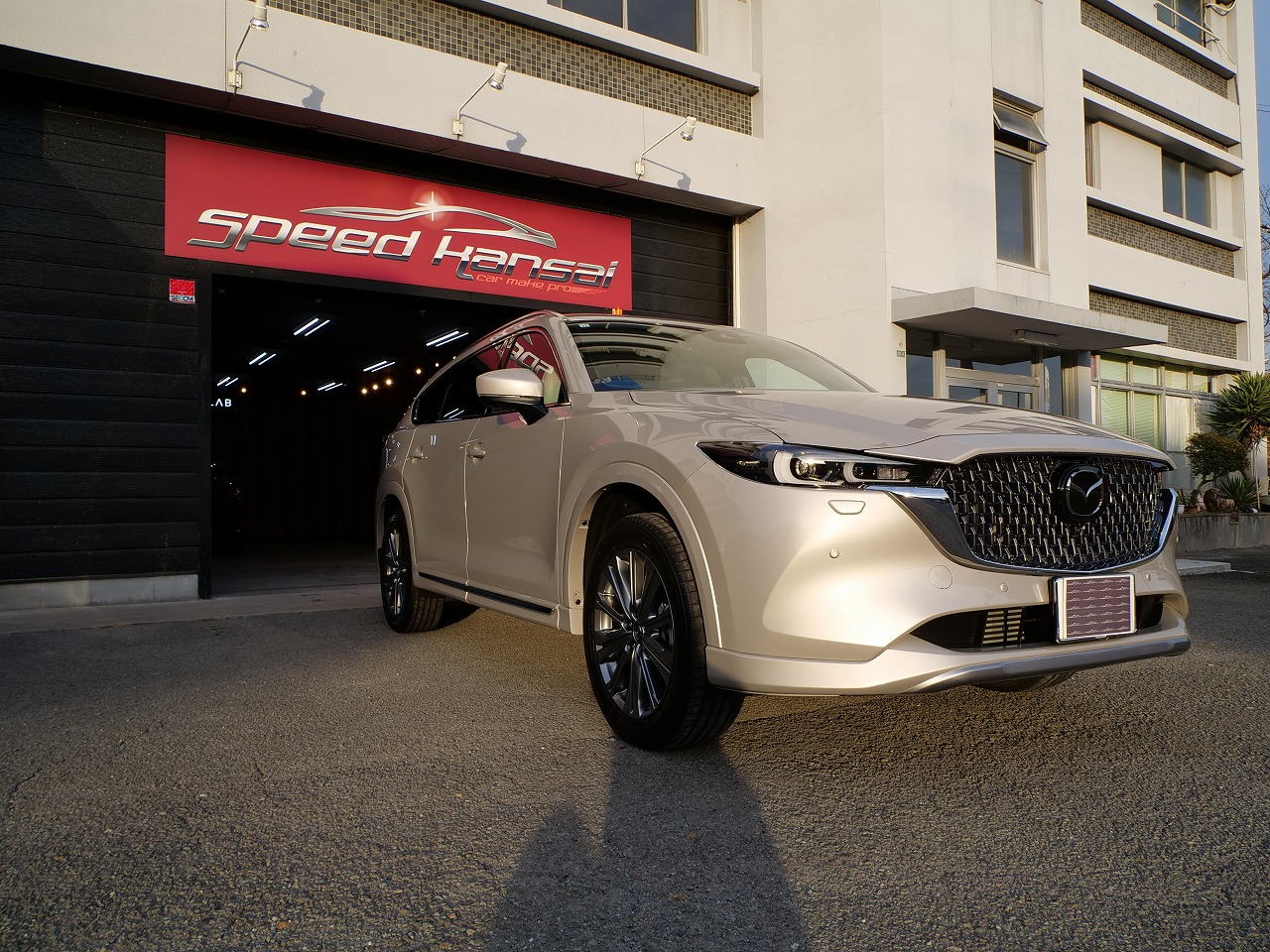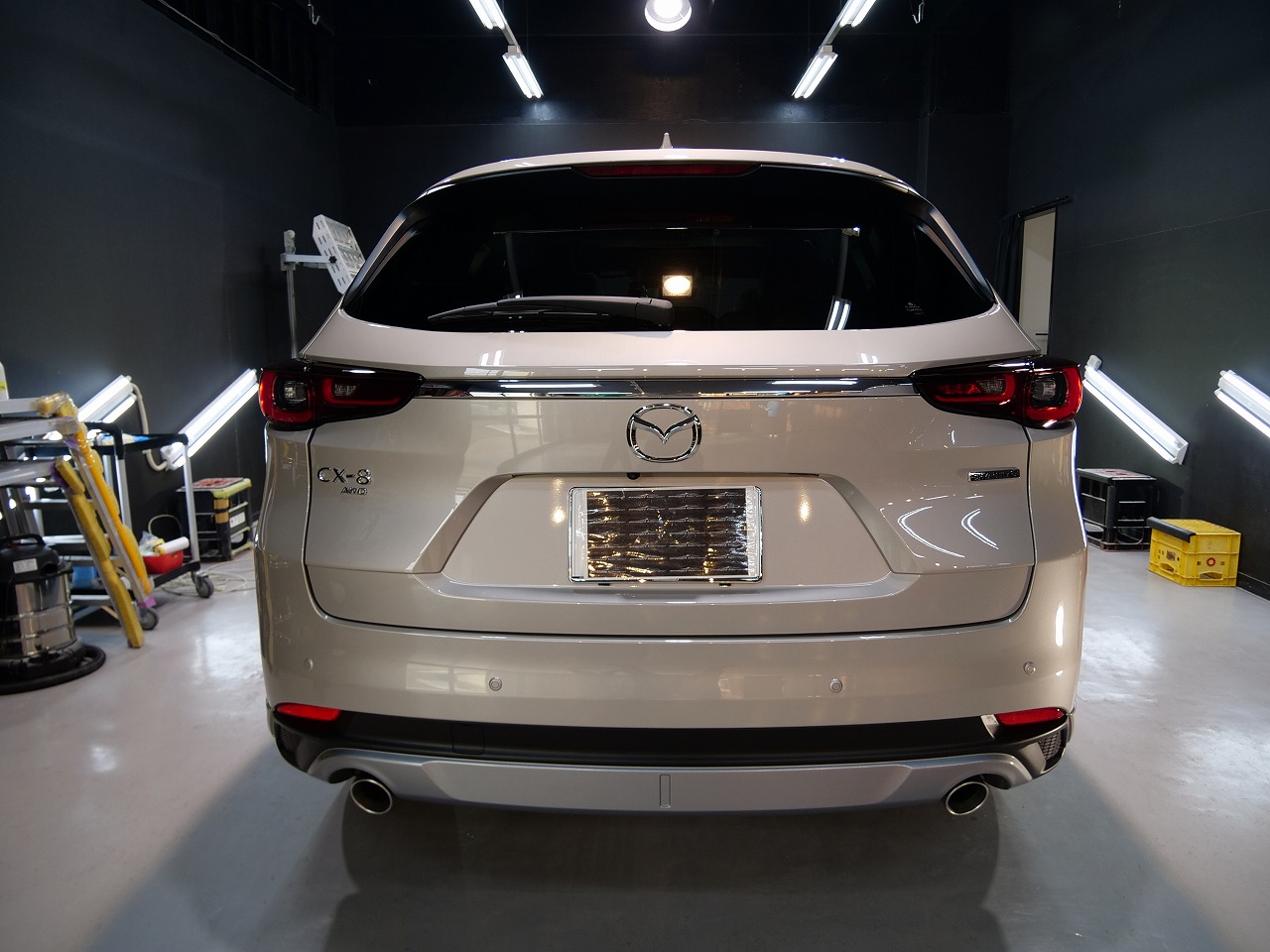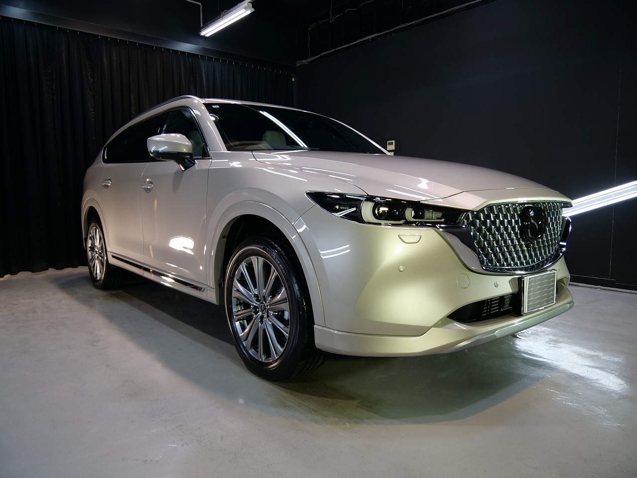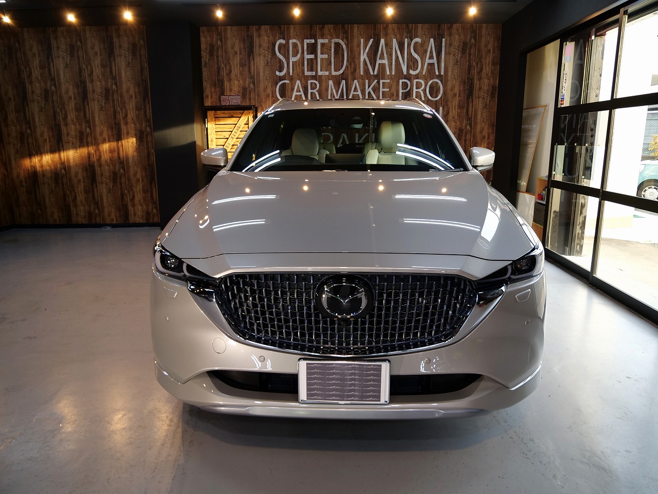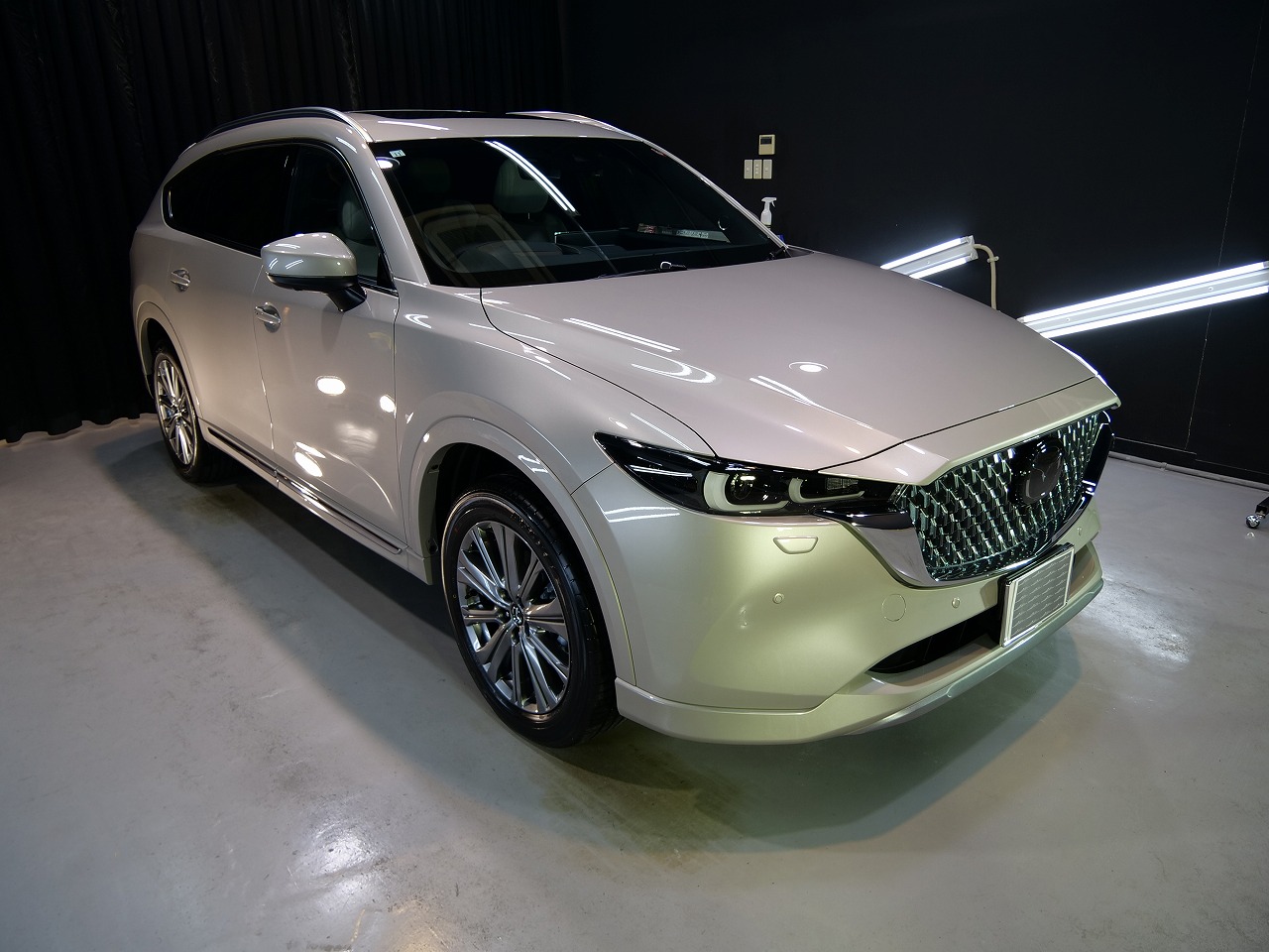 大阪府吹田市よりマツダCX-8のご入庫です!ボディカラーはプラチナクォーツ。施工はボディには