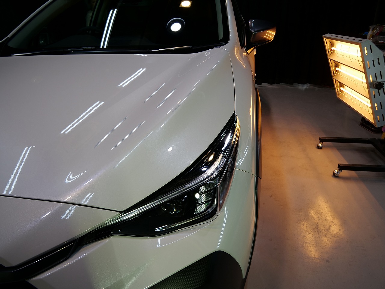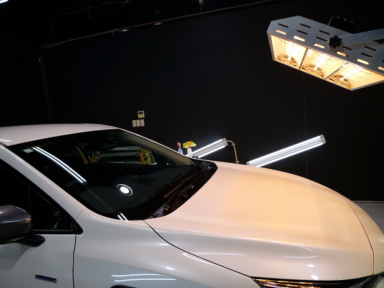パール。施工はボディにはクォーツガラスコーティング/ホイールコーティング/未塗装樹脂コーテ