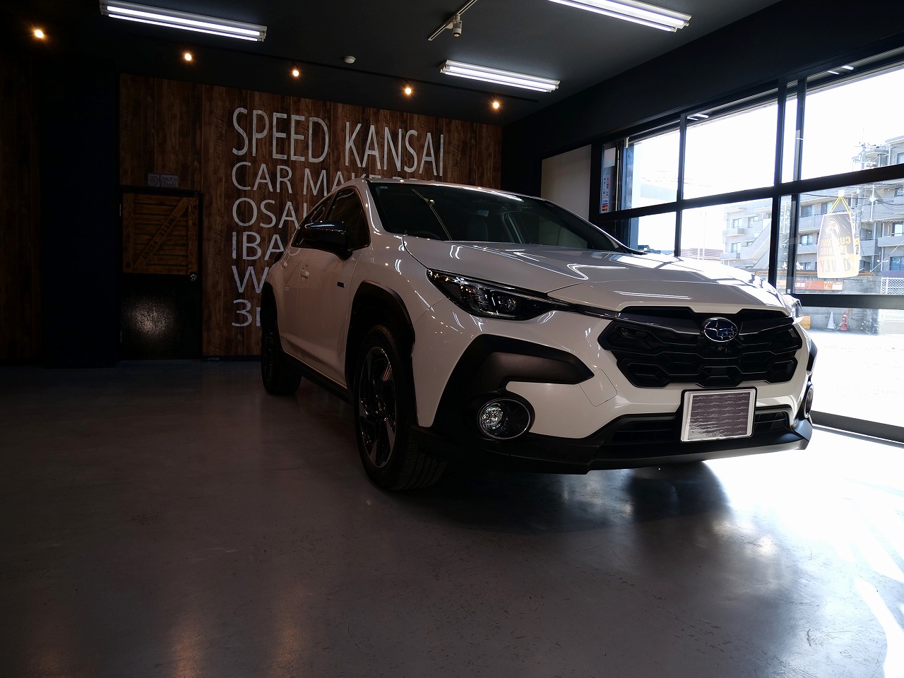大阪府豊能郡より新型のスバル クロストレックのご入庫です!ボディカラーはクリスタルホワイト