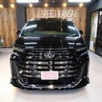 大阪府池田市より新型トヨタ ヴェルファイア40系のご入庫です!ボディカラーはブラック202 エアロは