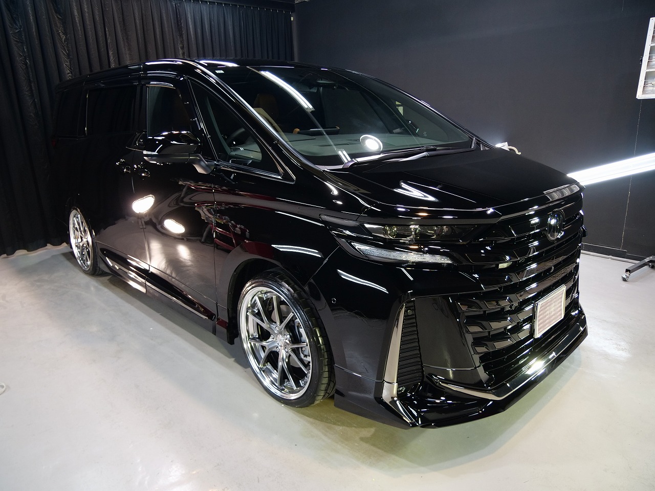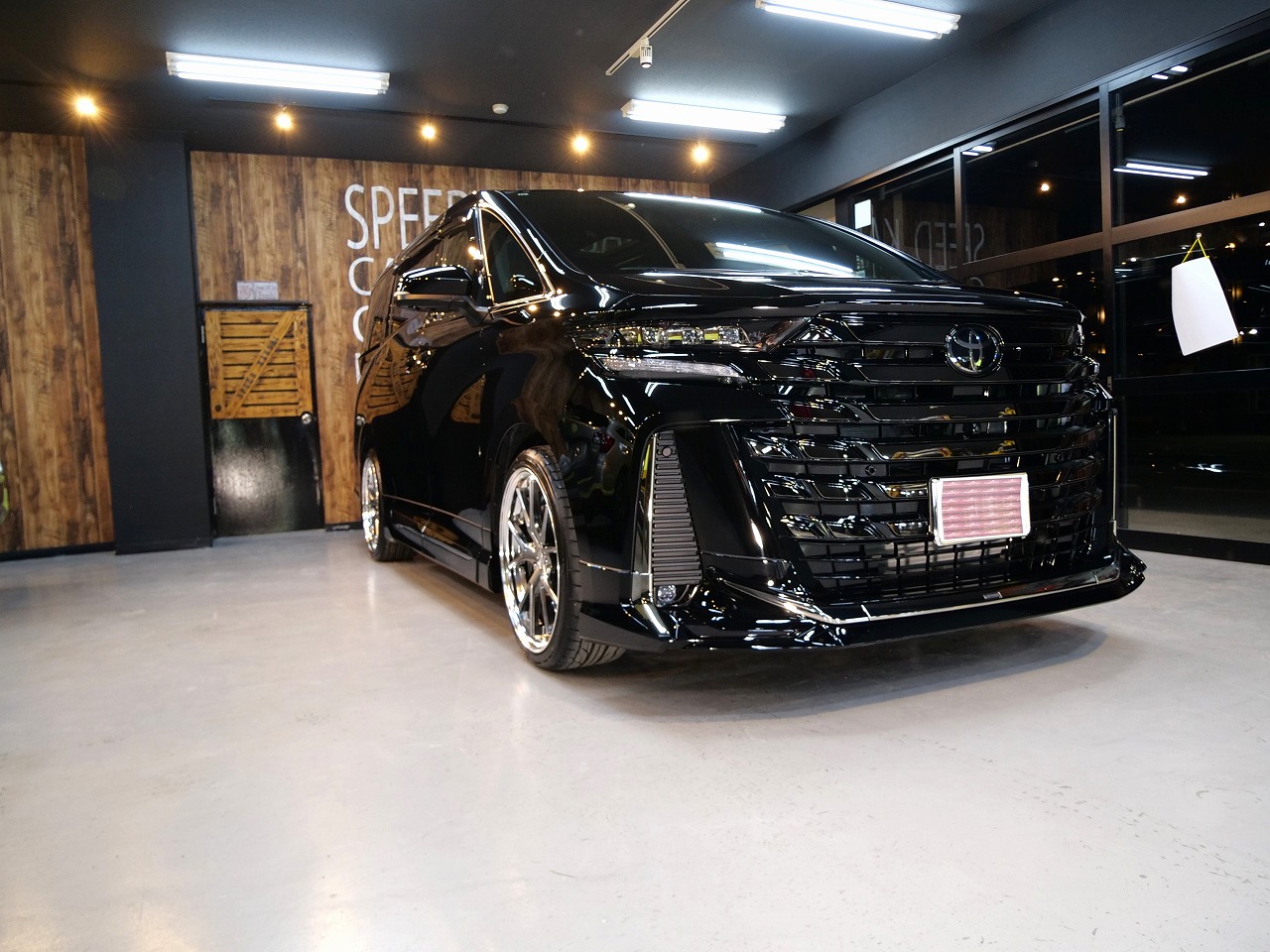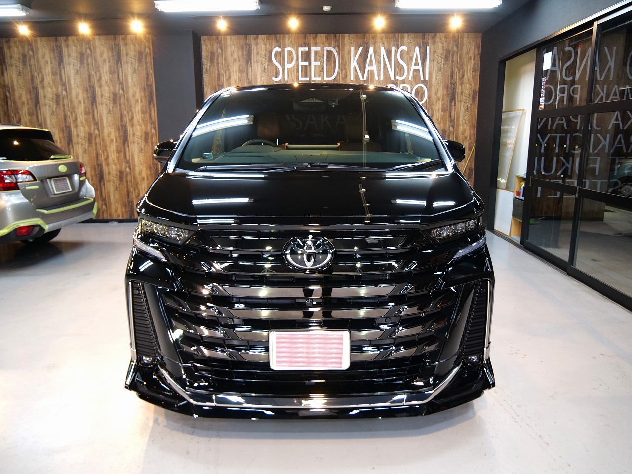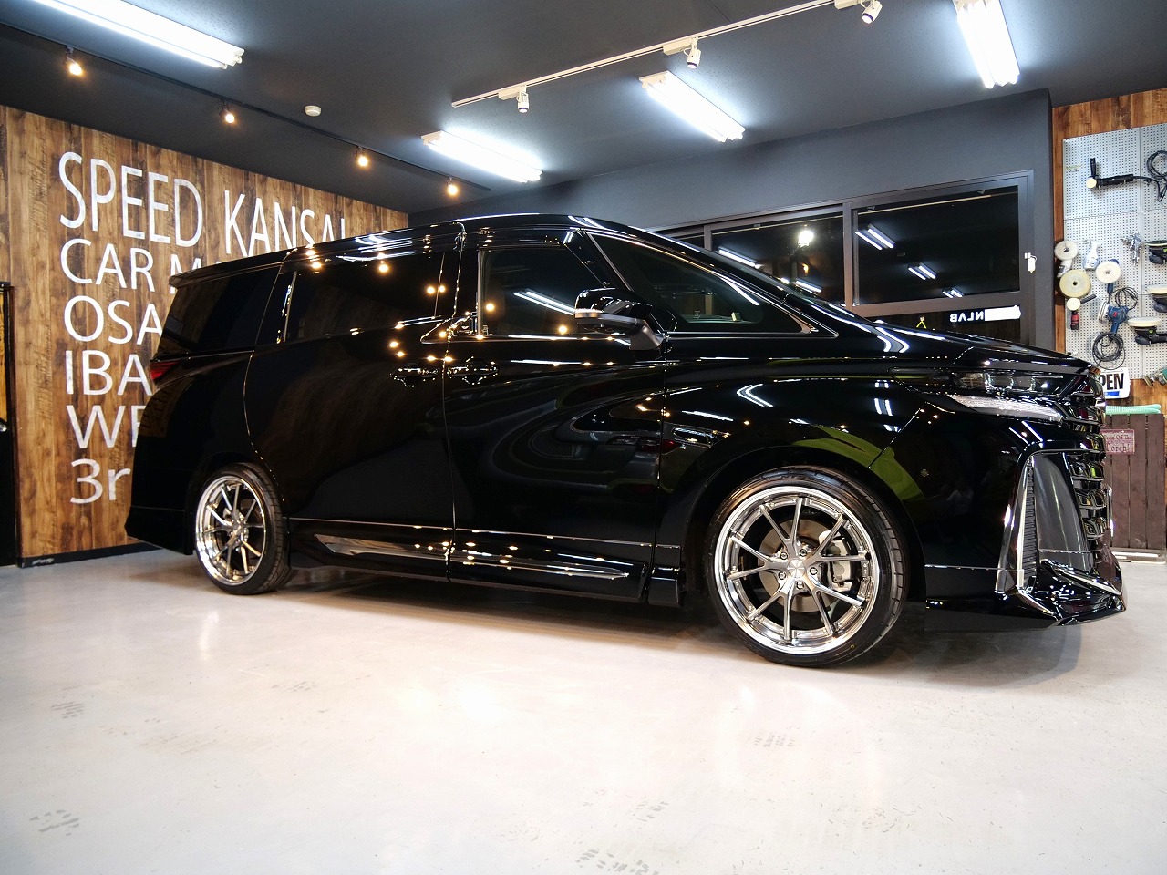 大阪府池田市より新型トヨタ ヴェルファイア40系のご入庫です!ボディカラーはブラック202 エアロは