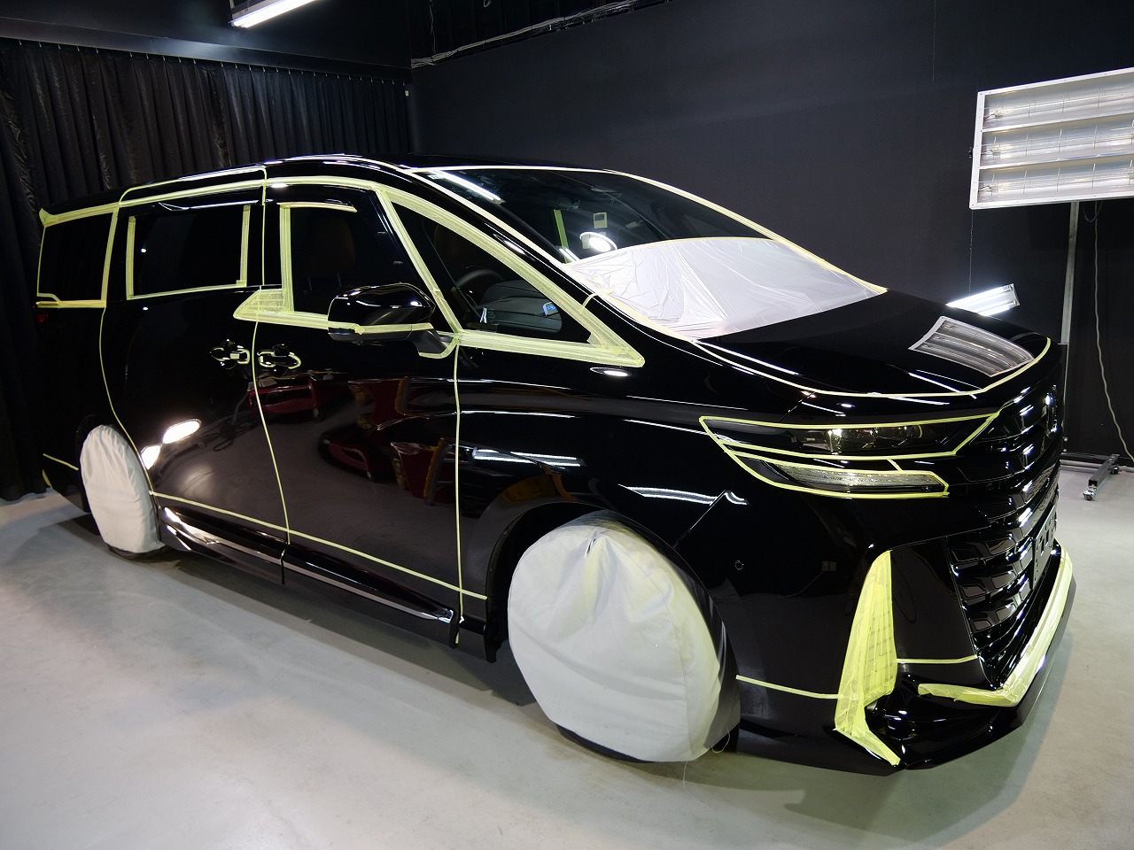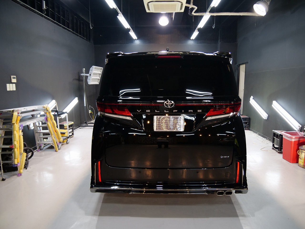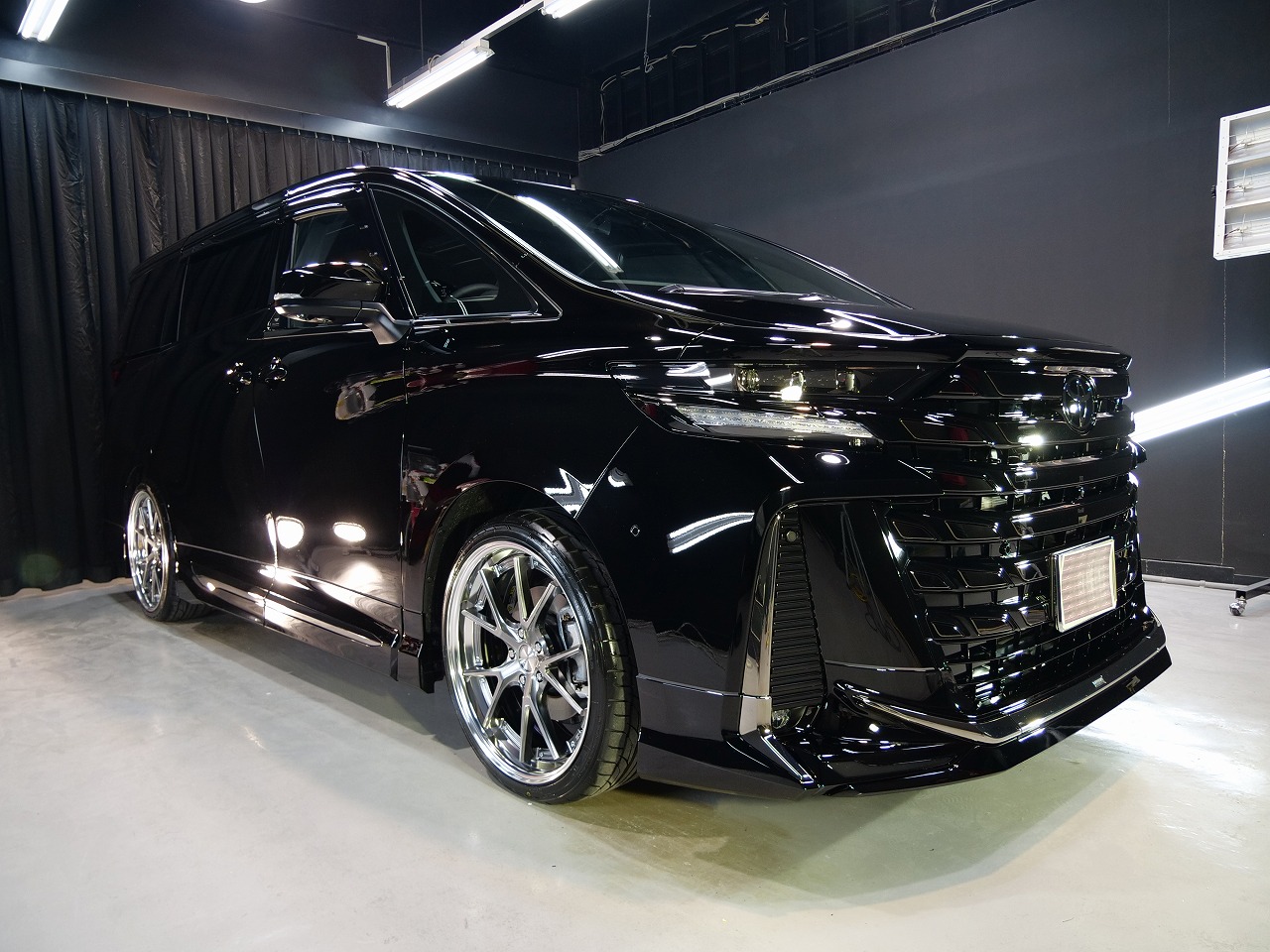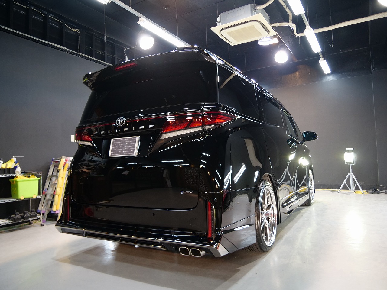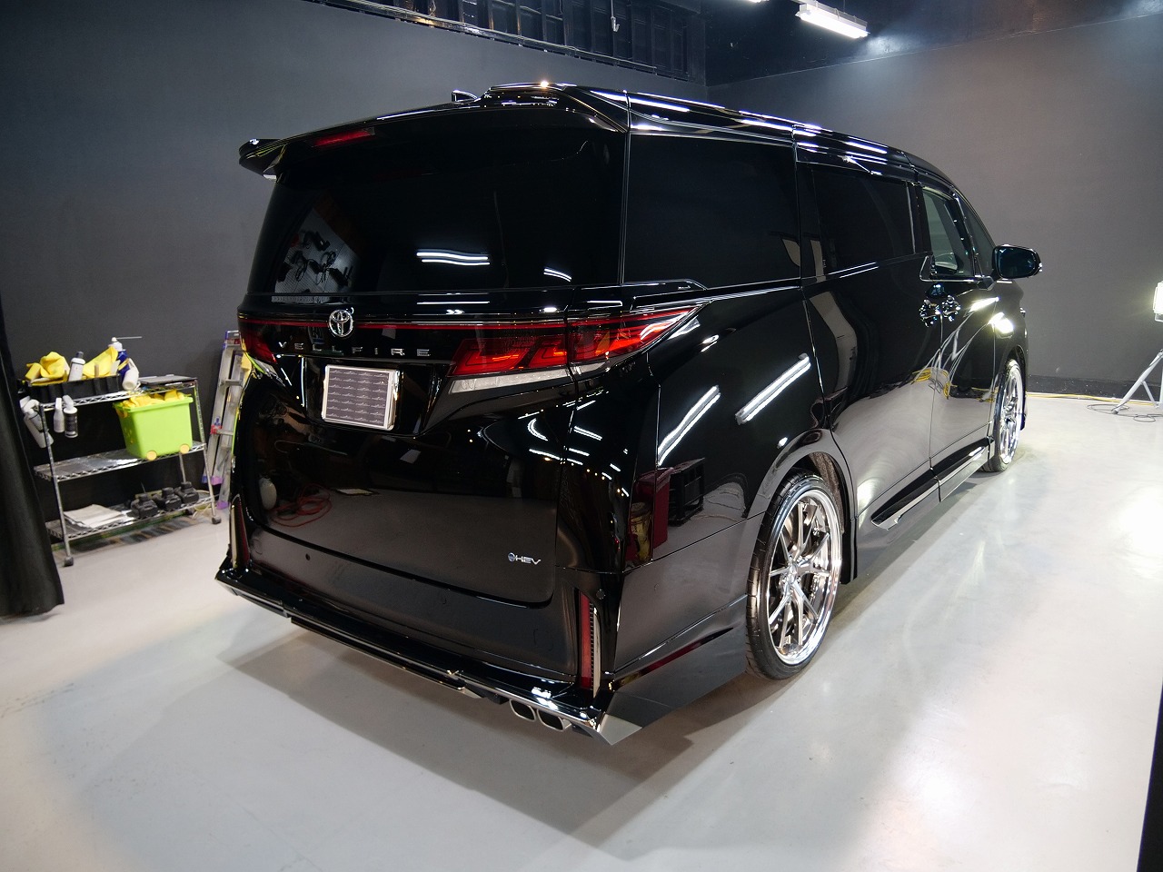 大阪府池田市より新型トヨタ ヴェルファイア40系のご入庫です!ボディカラーはブラック202 エアロは