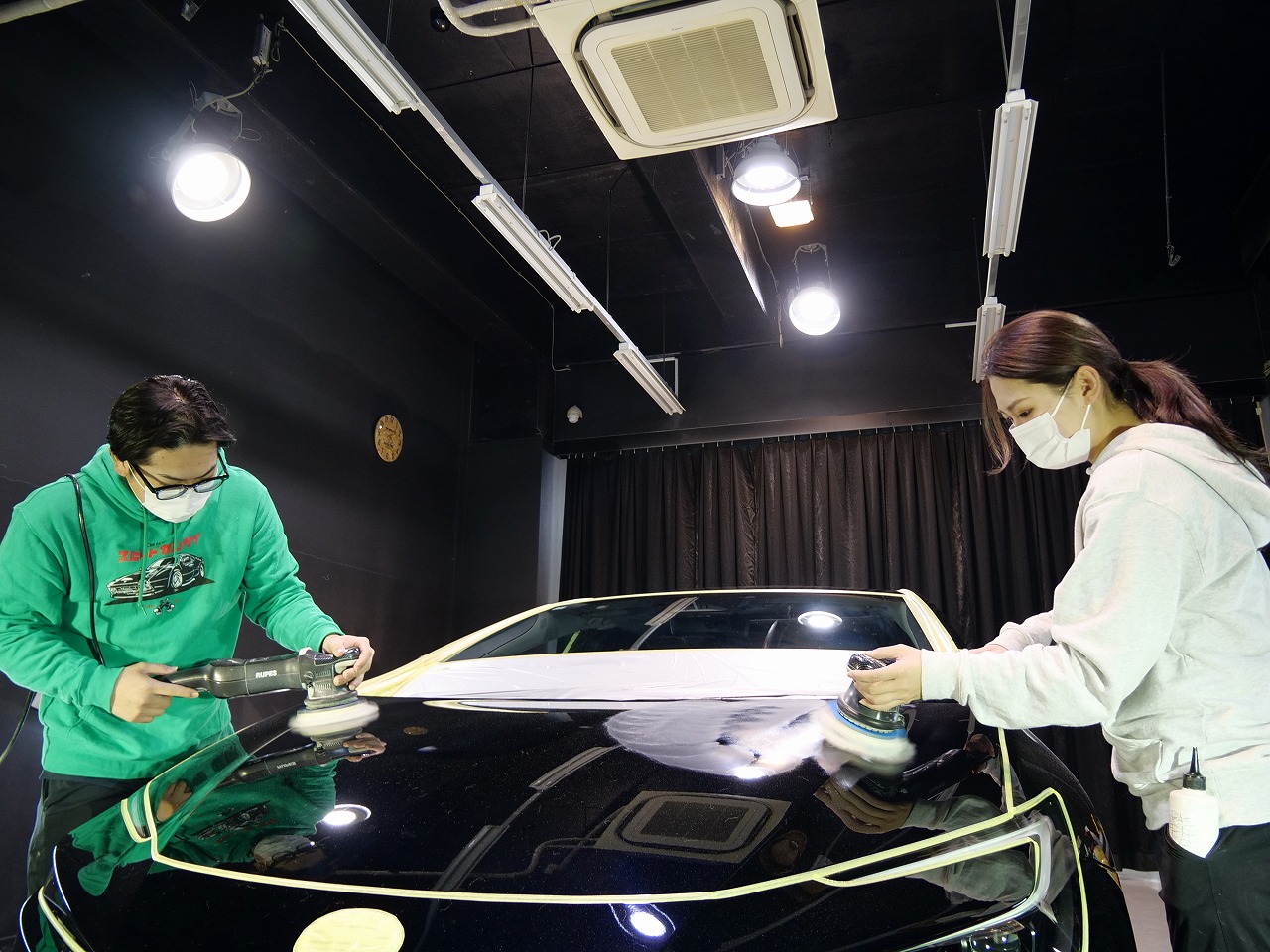 アティチュードブラック。施工はボディにはファインラボセラミックコーティング2層/ホイールセラミ