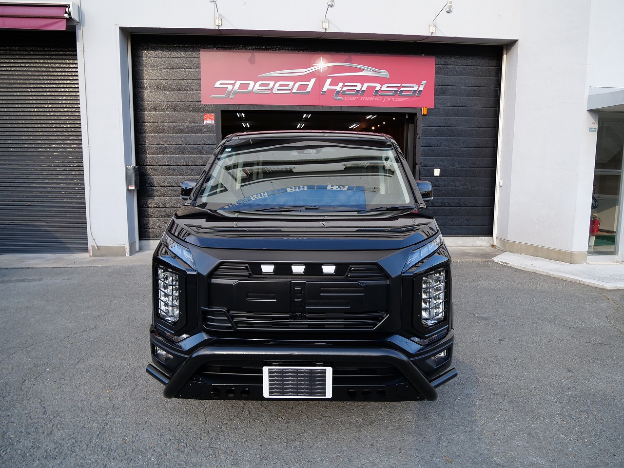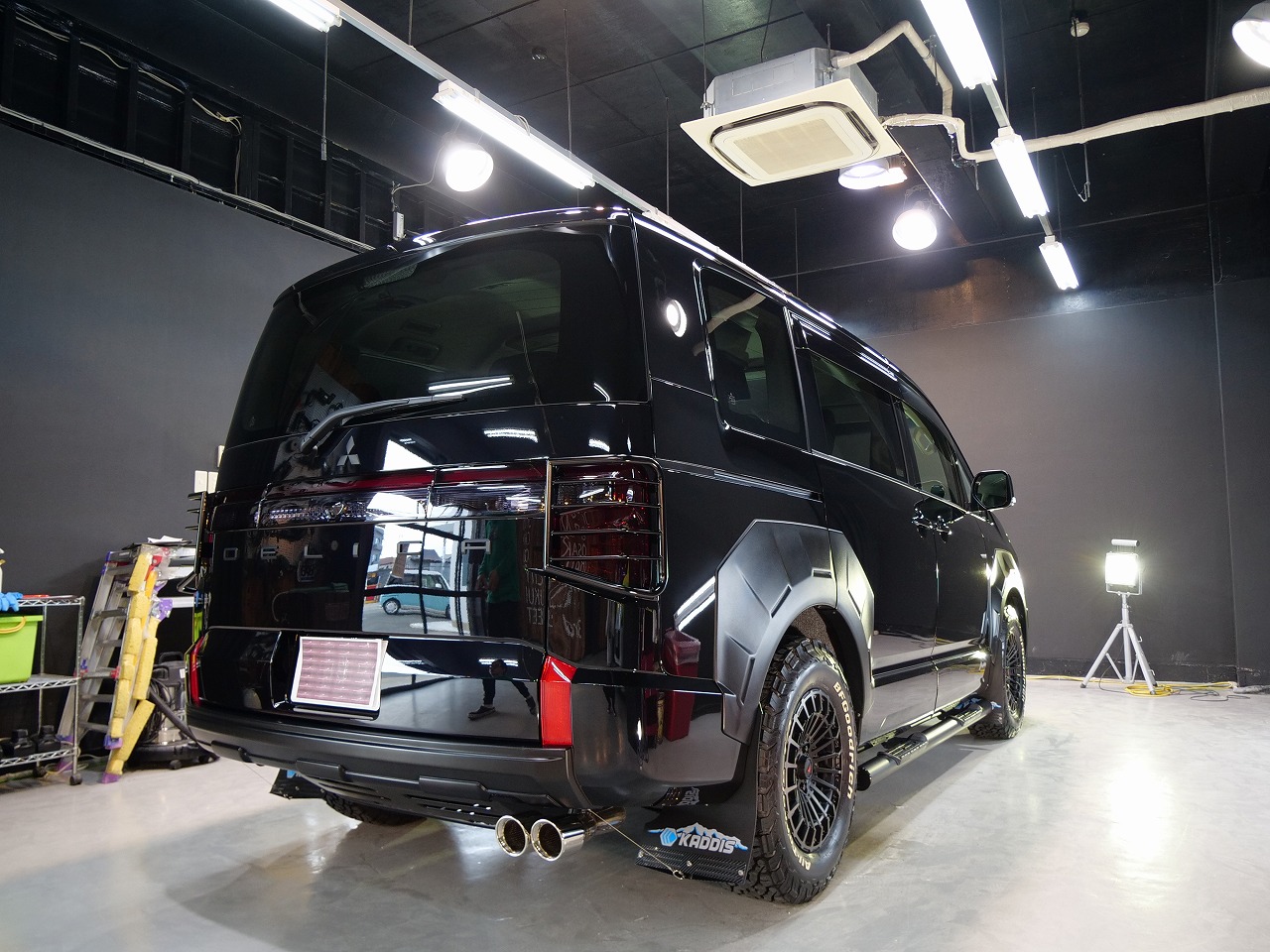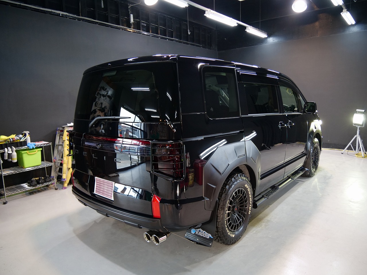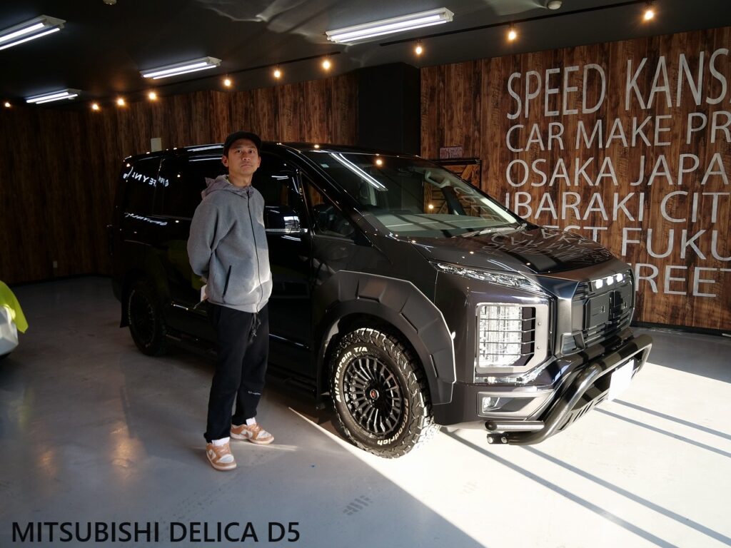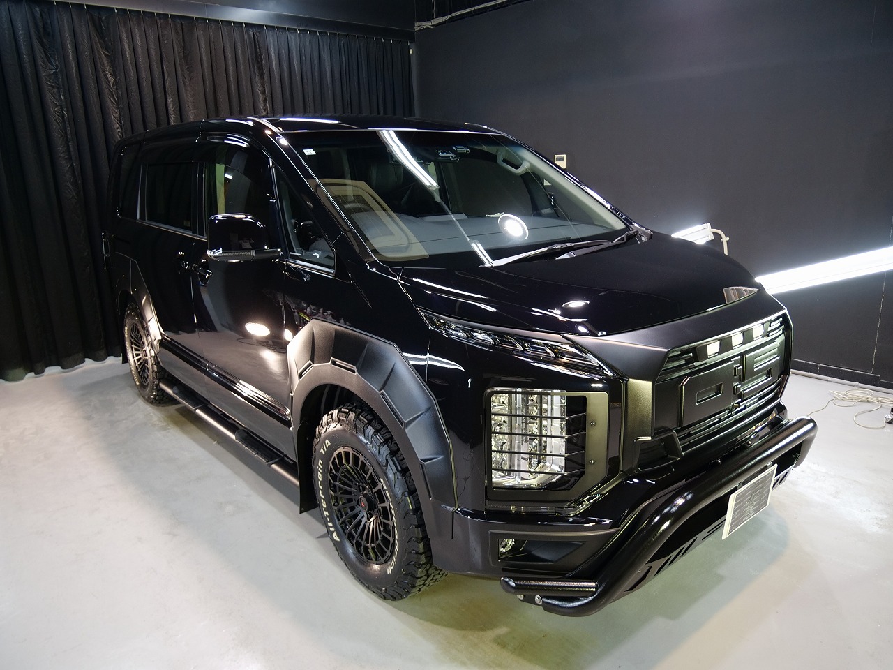 大阪府吹田市より三菱デリカD5のご入庫です!ボディカラーはアメジストブラック。施工はボディには