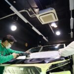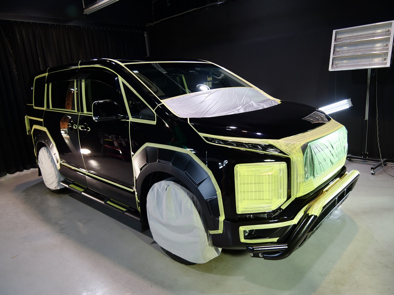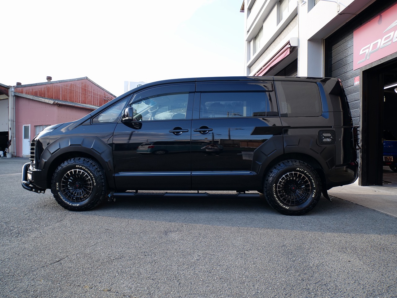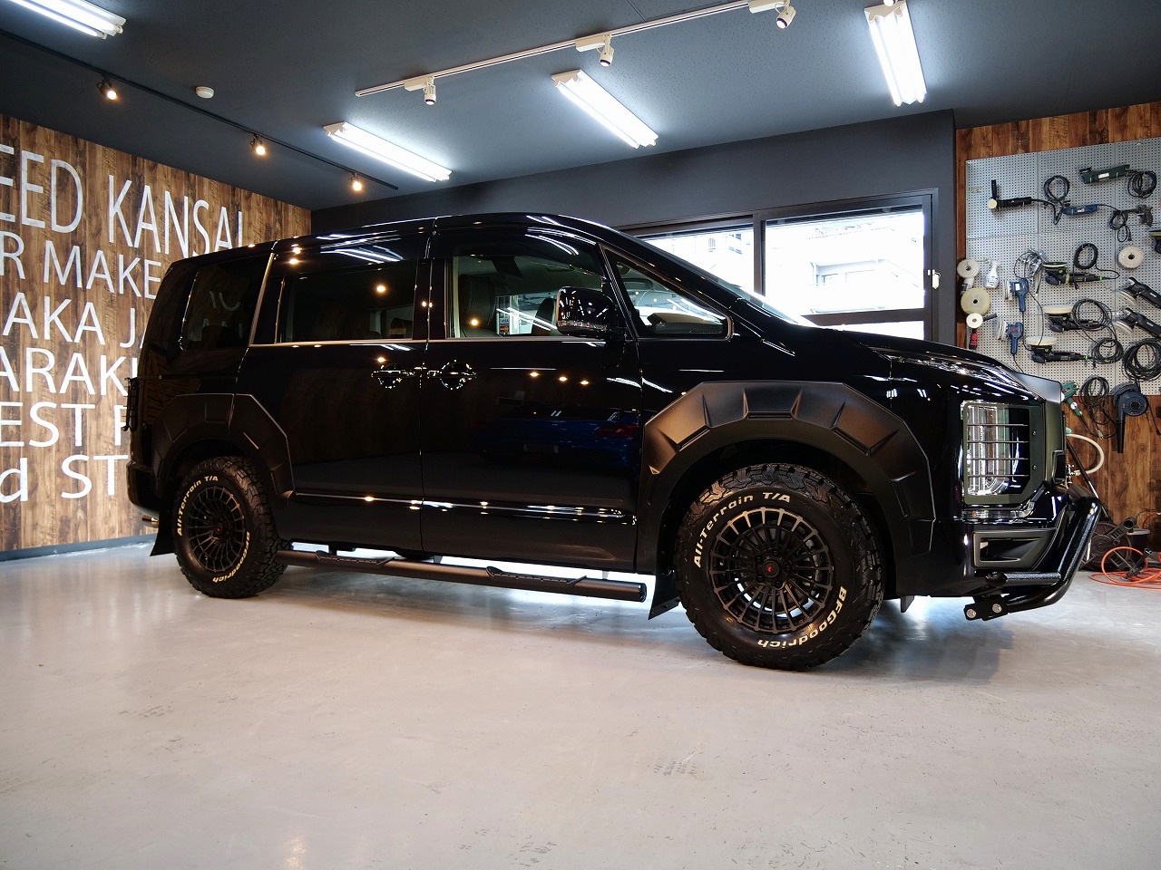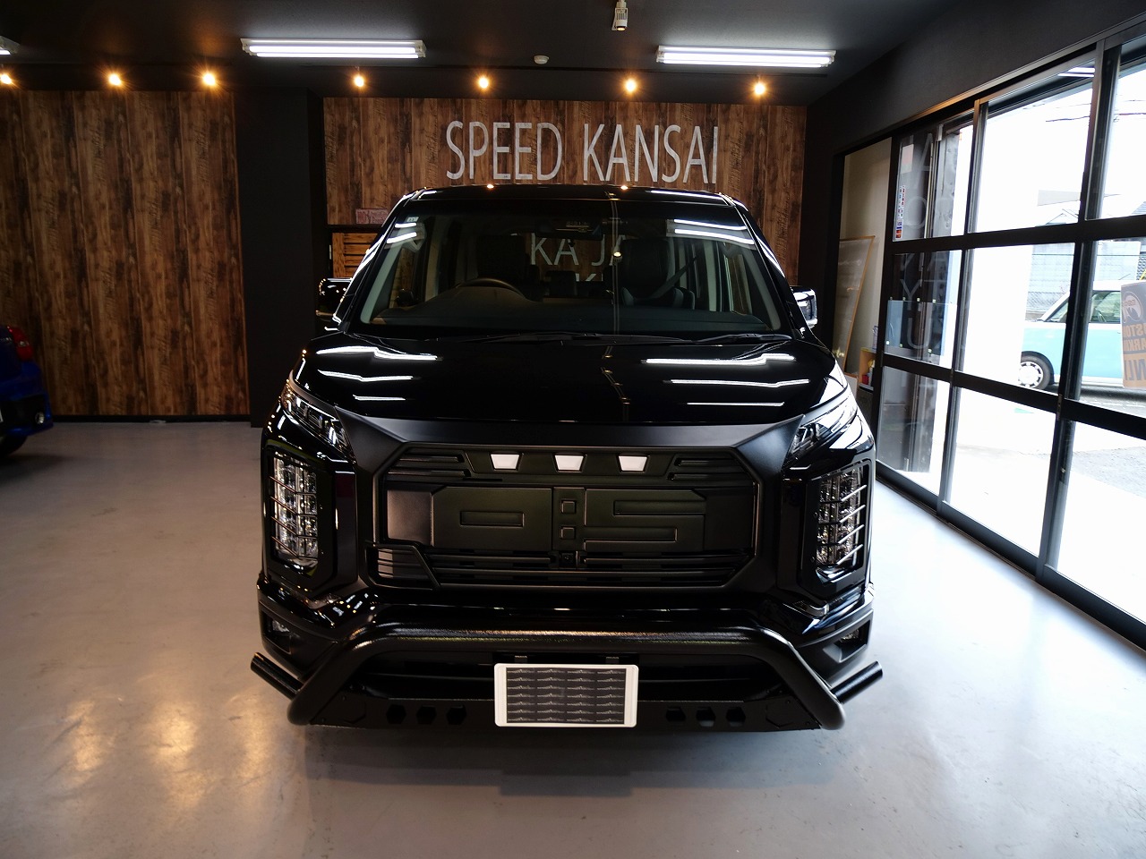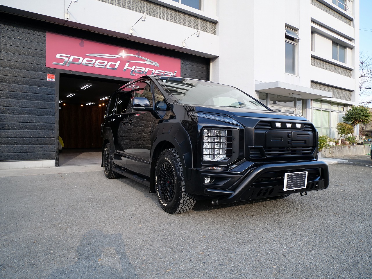 大阪府吹田市より三菱デリカD5のご入庫です!ボディカラーはアメジストブラック。施工はボディには