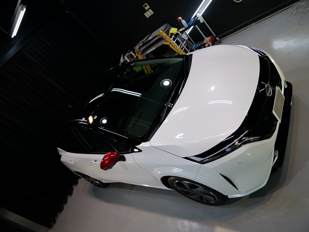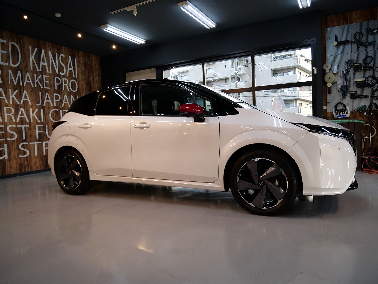 ブラック2トーンです。施工はボディにはファインラボセラミックコーティング2層/ホイールコーテ
