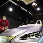 大阪府三島郡よりレクサスESのご入庫です!ボディカラーはシルバー。施工はボディにはファインラボ