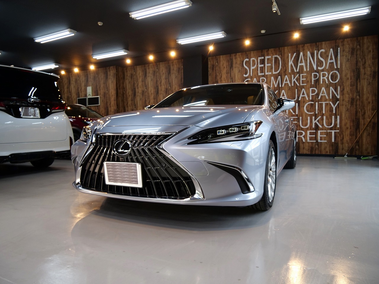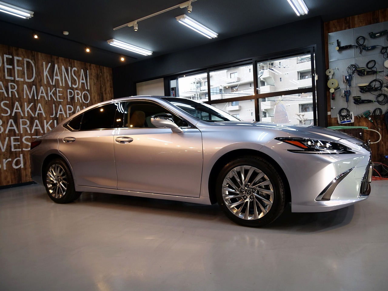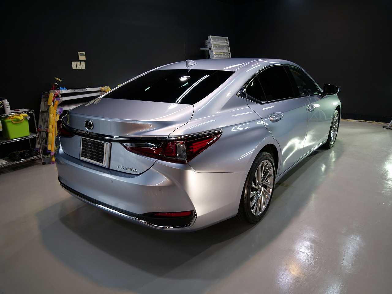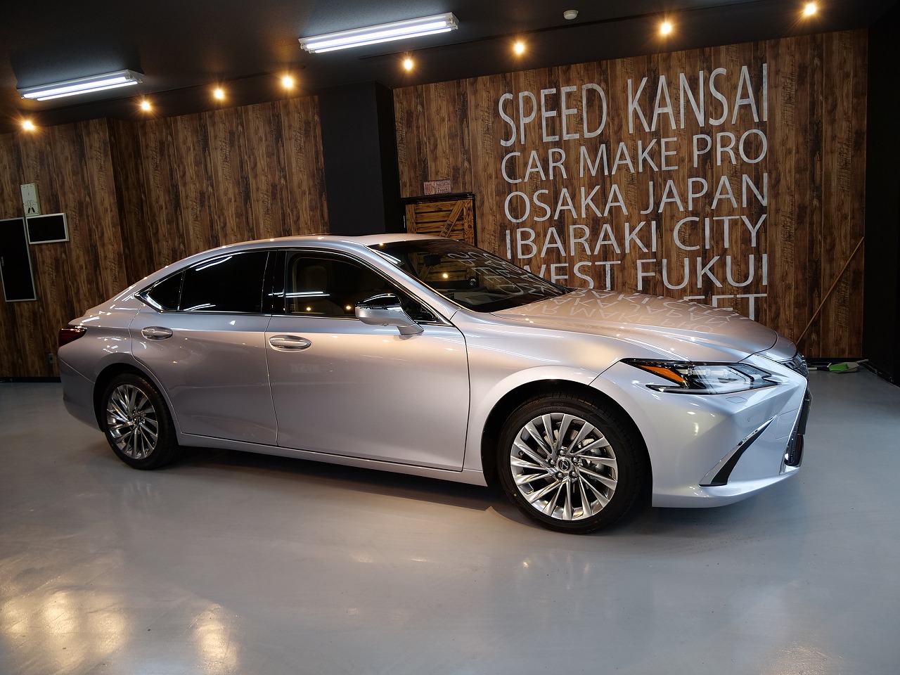 大阪府三島郡よりレクサスESのご入庫です!ボディカラーはシルバー。施工はボディにはファインラボ
