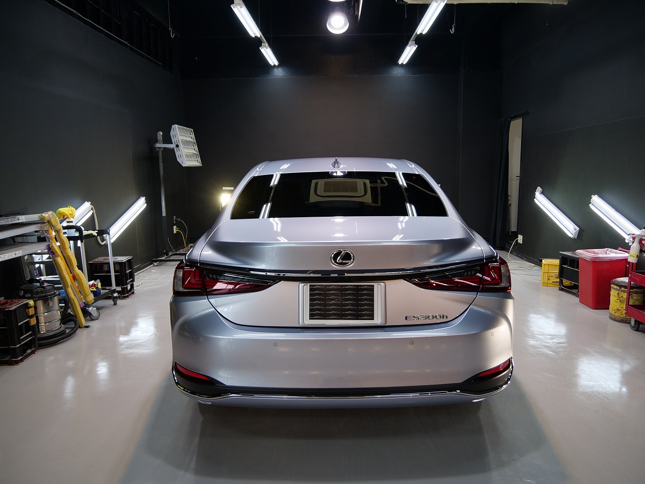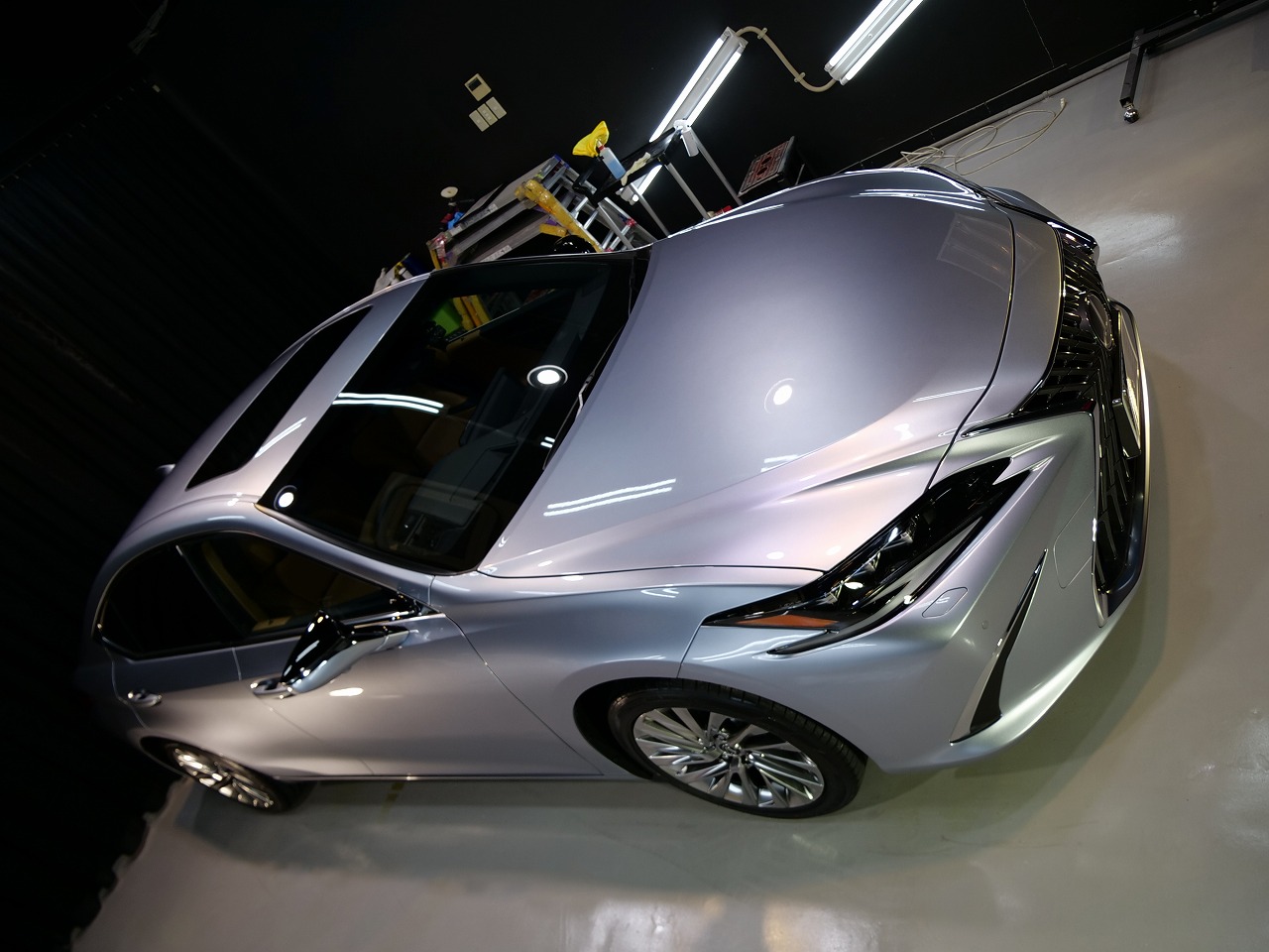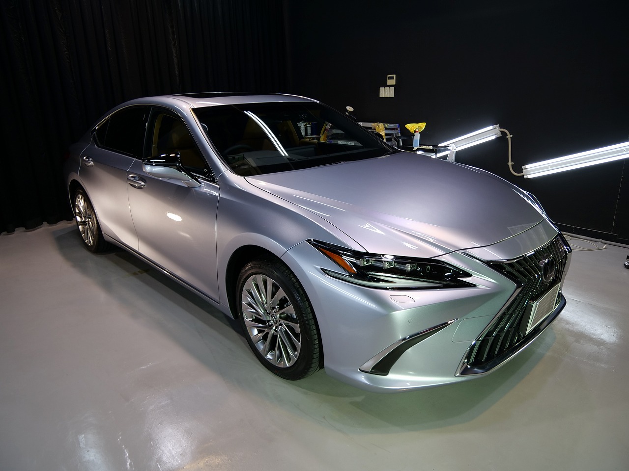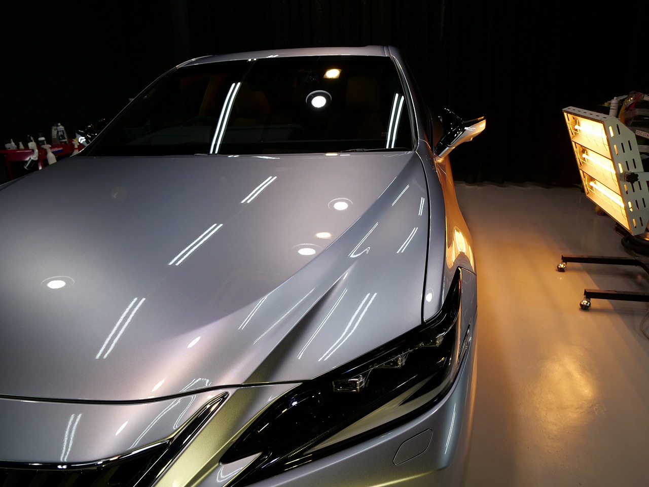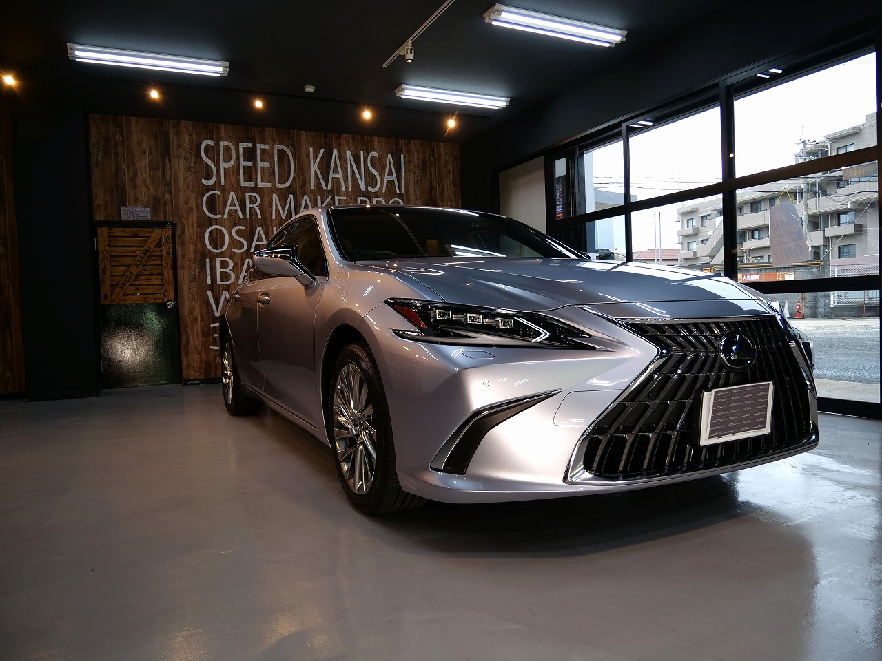大阪府三島郡よりレクサスESのご入庫です!ボディカラーはシルバー。施工はボディにはファインラボ