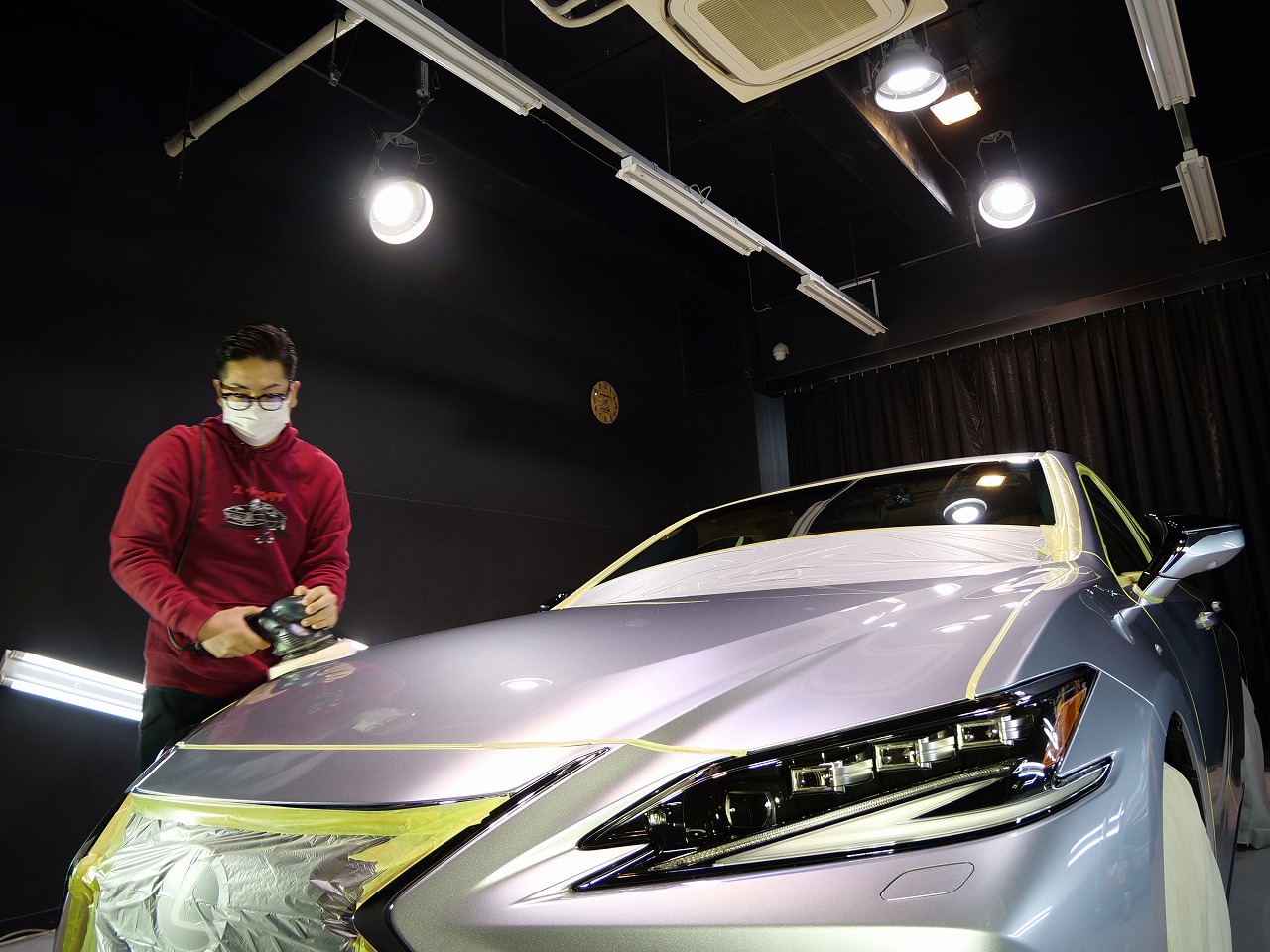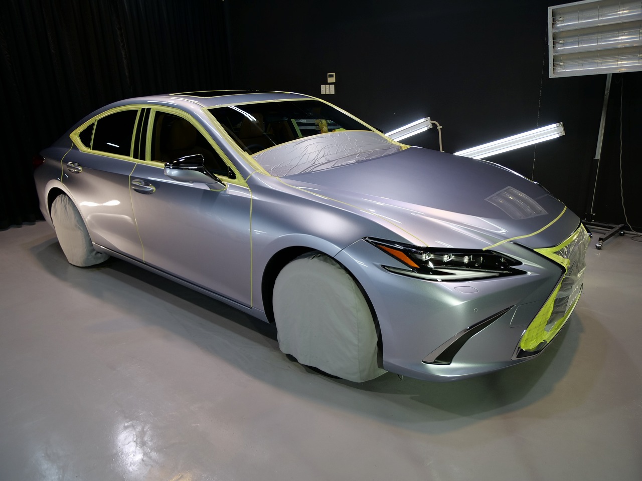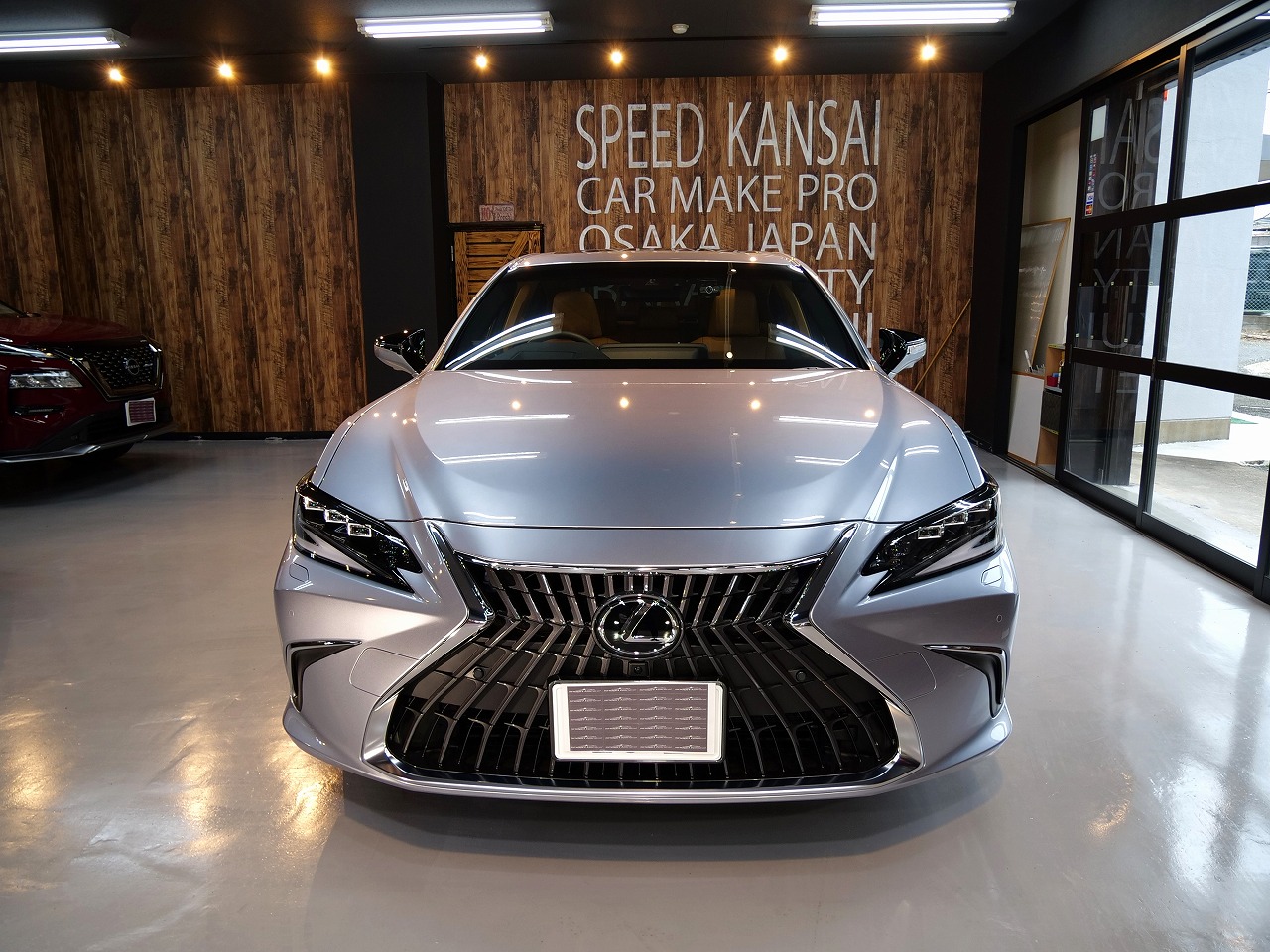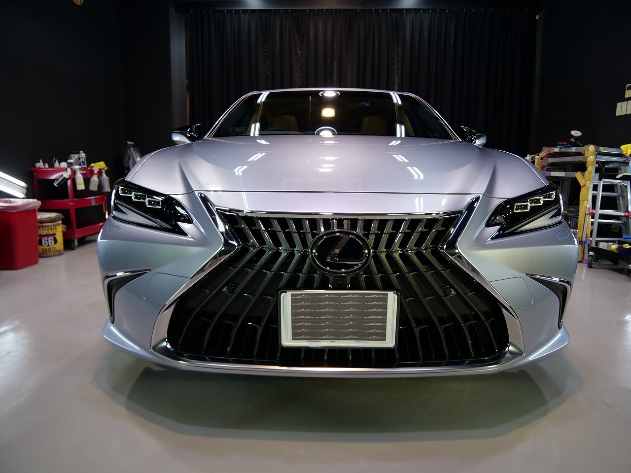 大阪府三島郡よりレクサスESのご入庫です!ボディカラーはシルバー。施工はボディにはファインラボ