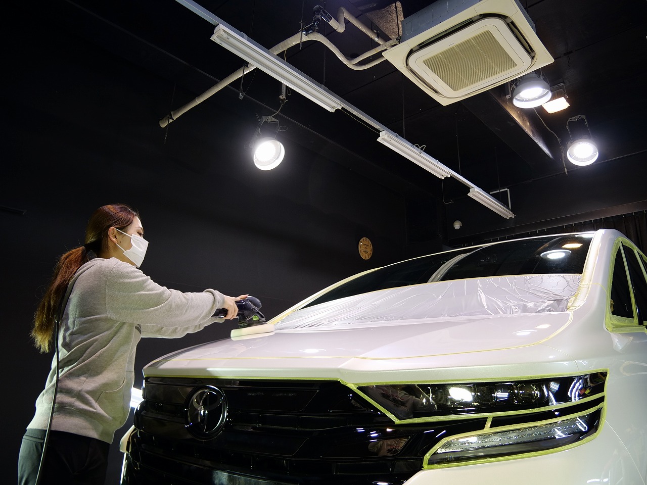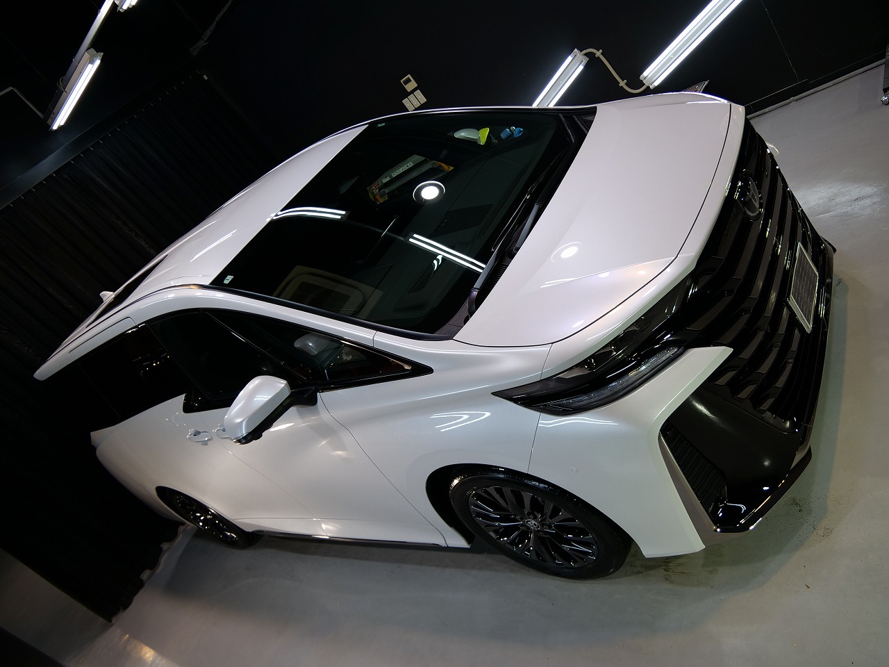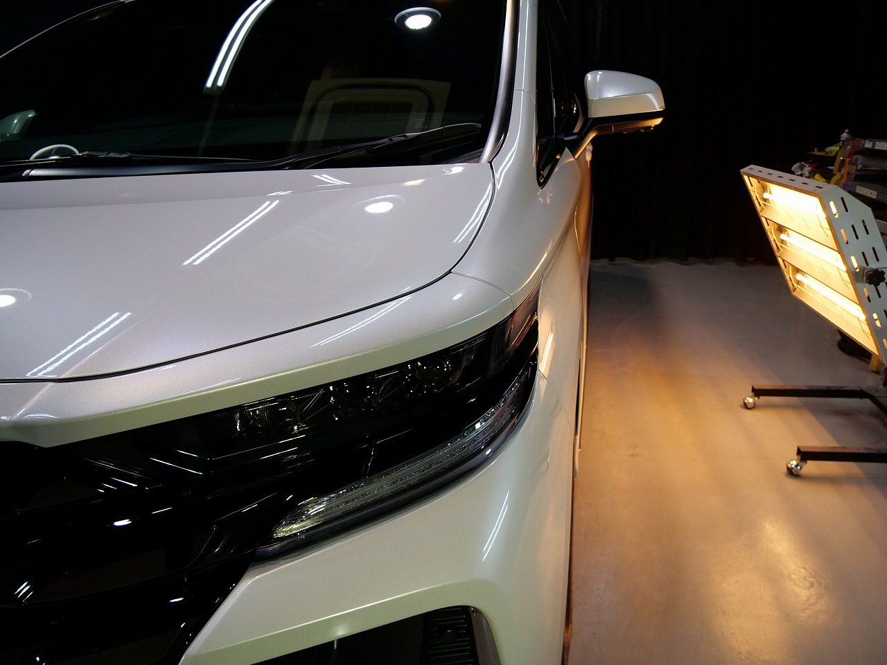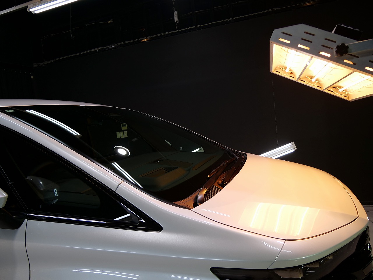 カラーはプラチナホワイトパールマイカ。施工はボディにはファインラボセラミックコーティング2層/