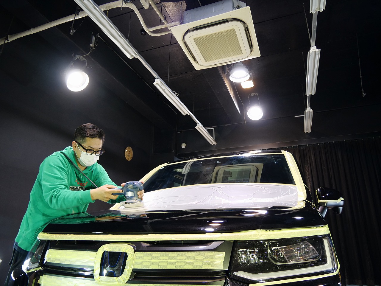 ホンダの塗装はデリケートですが綺麗に磨いて最高に輝くように施工させて頂きました!黒の塗装は