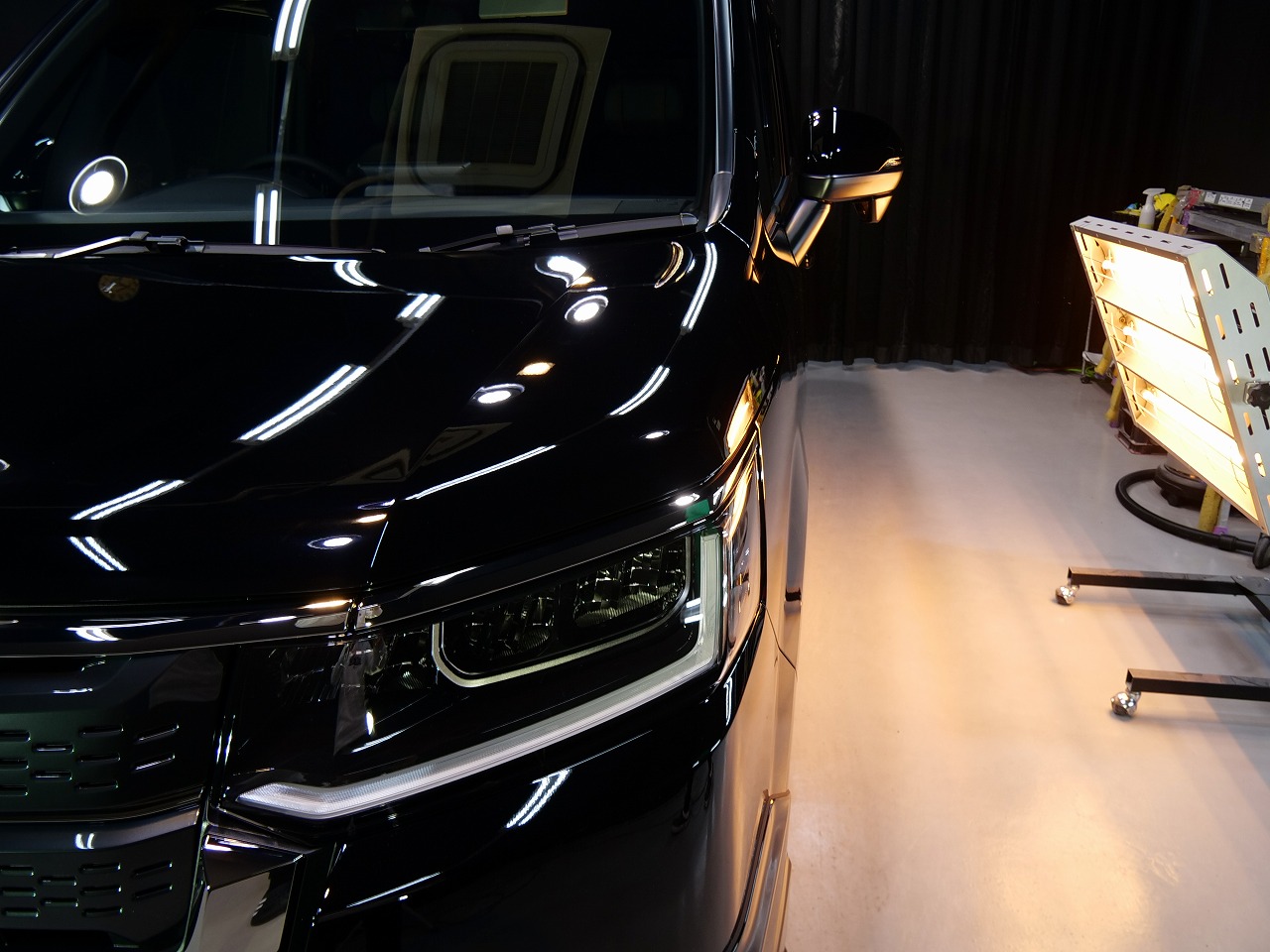 パール。施工はボディにはクォーツガラスコーティング/ホイールコーティング/フロントG撥水、プラ
