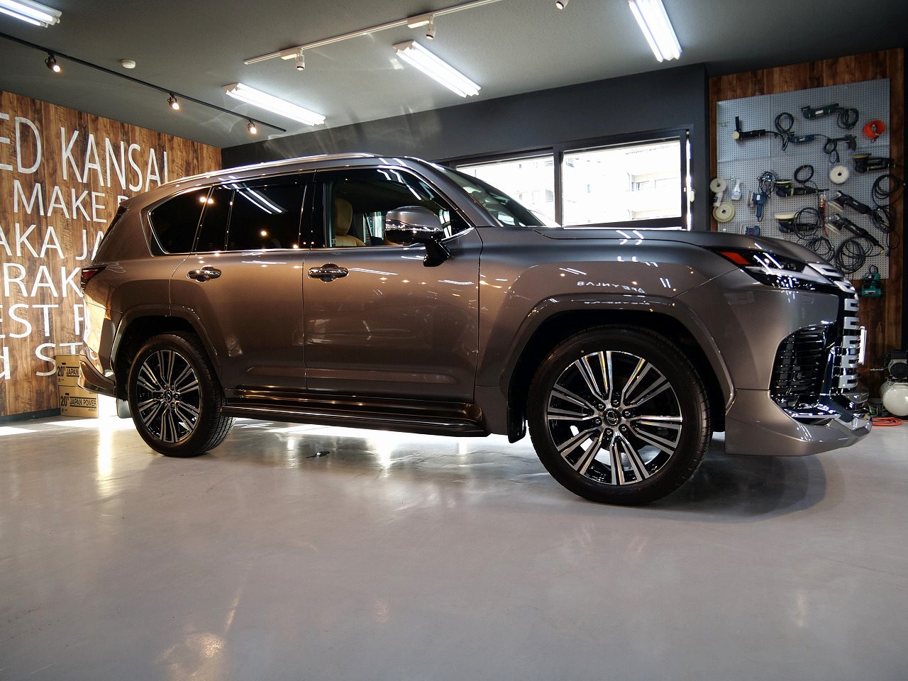 大阪府東大阪市よりレクサスLX600のご入庫です!ボディカラーはマンガンラスター。施工はボディには