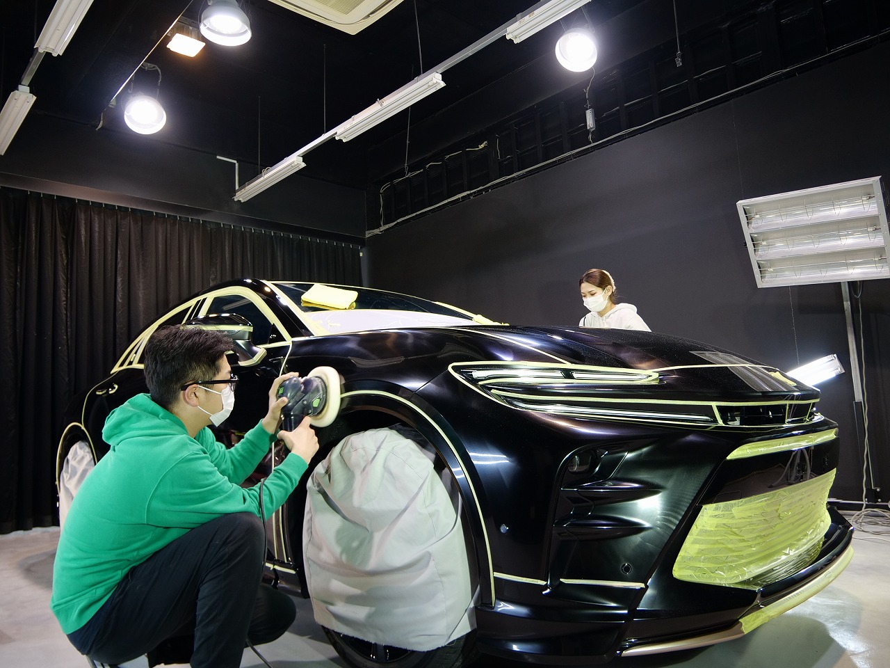 ブラック202 施工はボディにはファインラボセラミックコーティング2層/ホイールコーティング/フロント