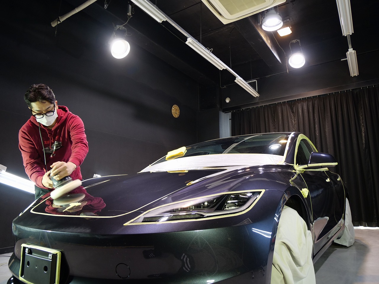 大阪府茨木市よりテスラ モデル3のご入庫です!ボディカラーはステルスグレー 施工はボディには