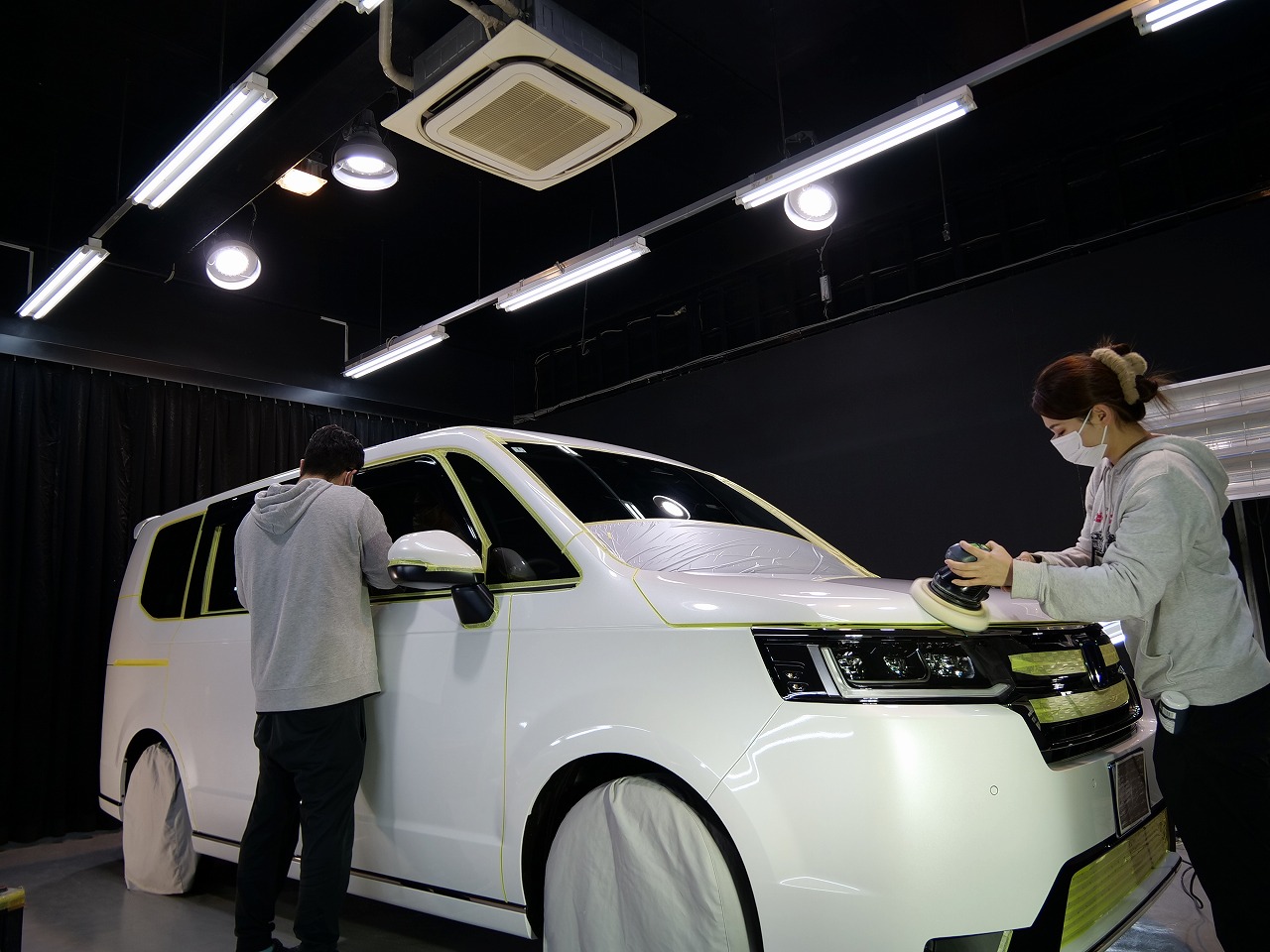 パール!施工はボディにはファインラボセラミックコーティング2層/ホイールコーティングの2点