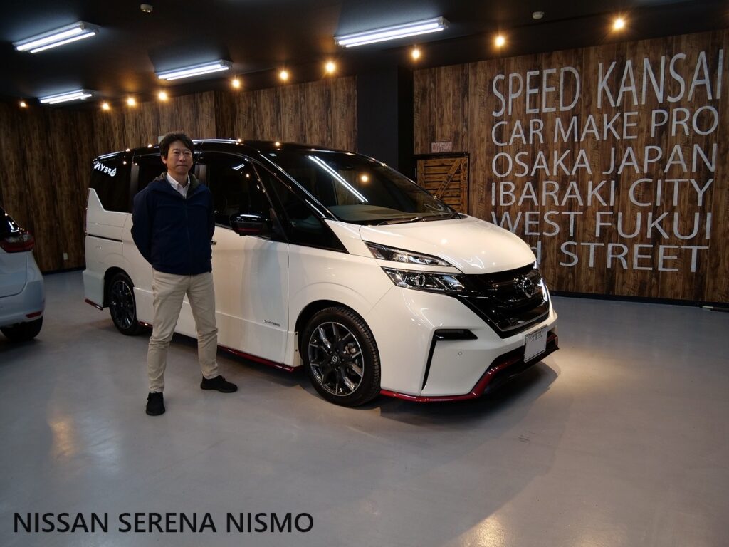 大阪府箕面市より当店のリピーター様が日産セレナ ニスモをお持ち下さいました!ボディカラーは