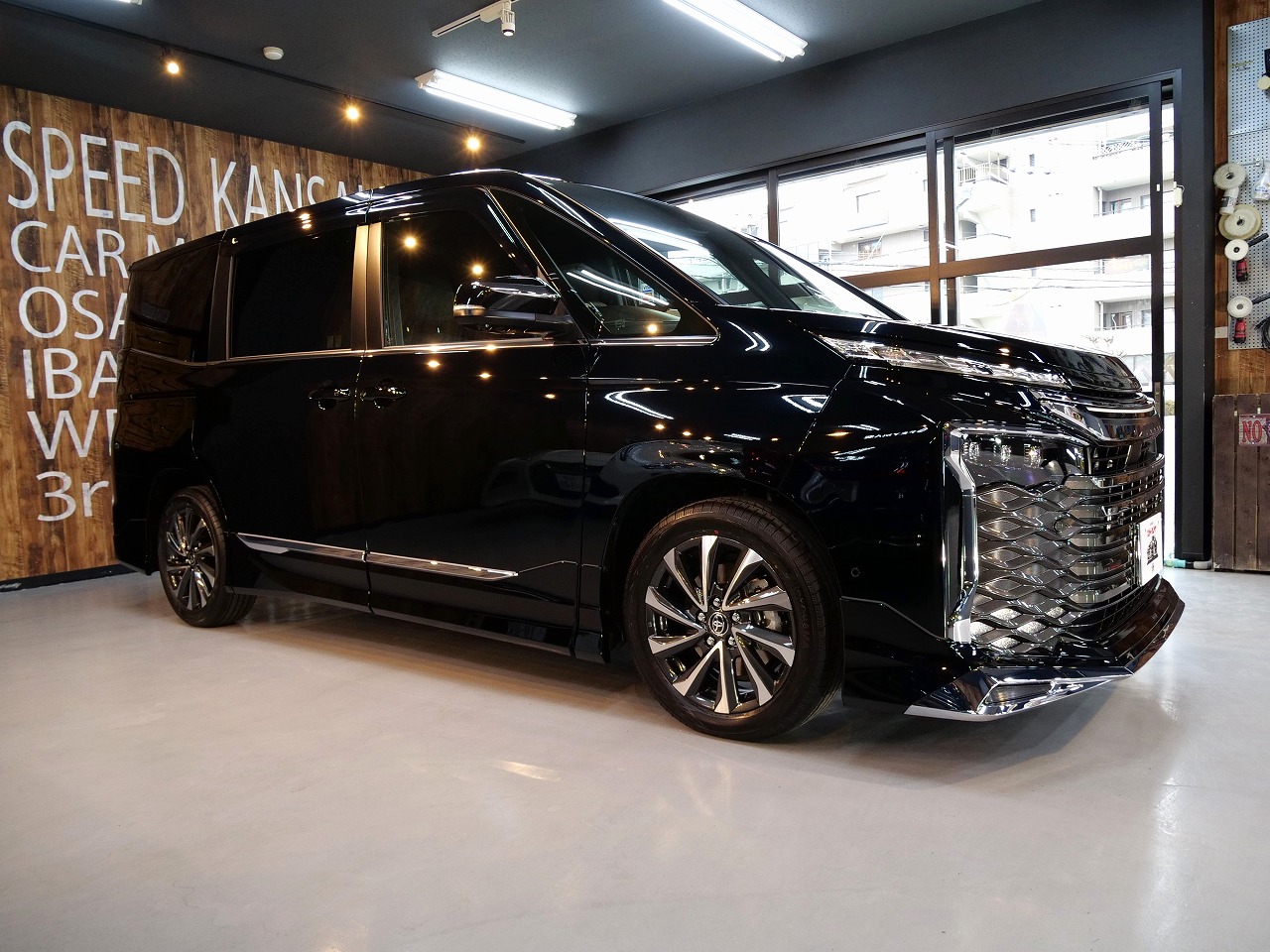 大阪府枚方市よりトヨタ ヴォクシー90系のご入庫です!ボディカラーはアティチュードブラックマイカ。