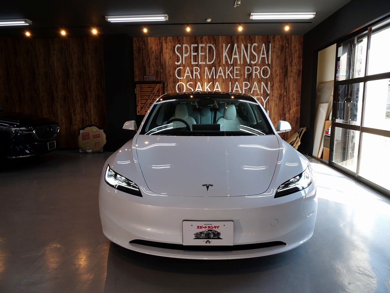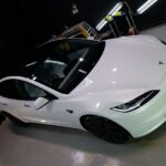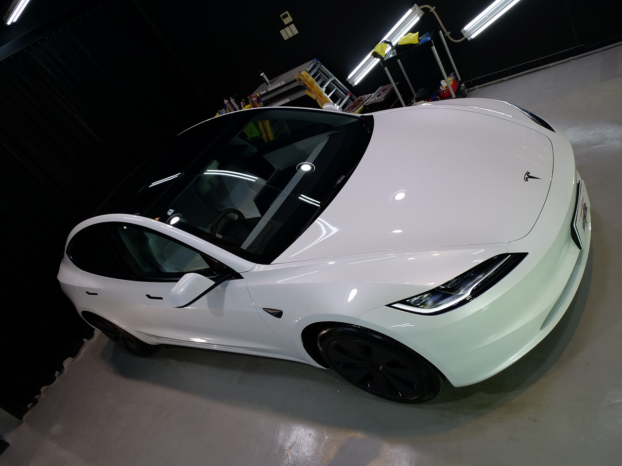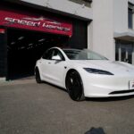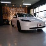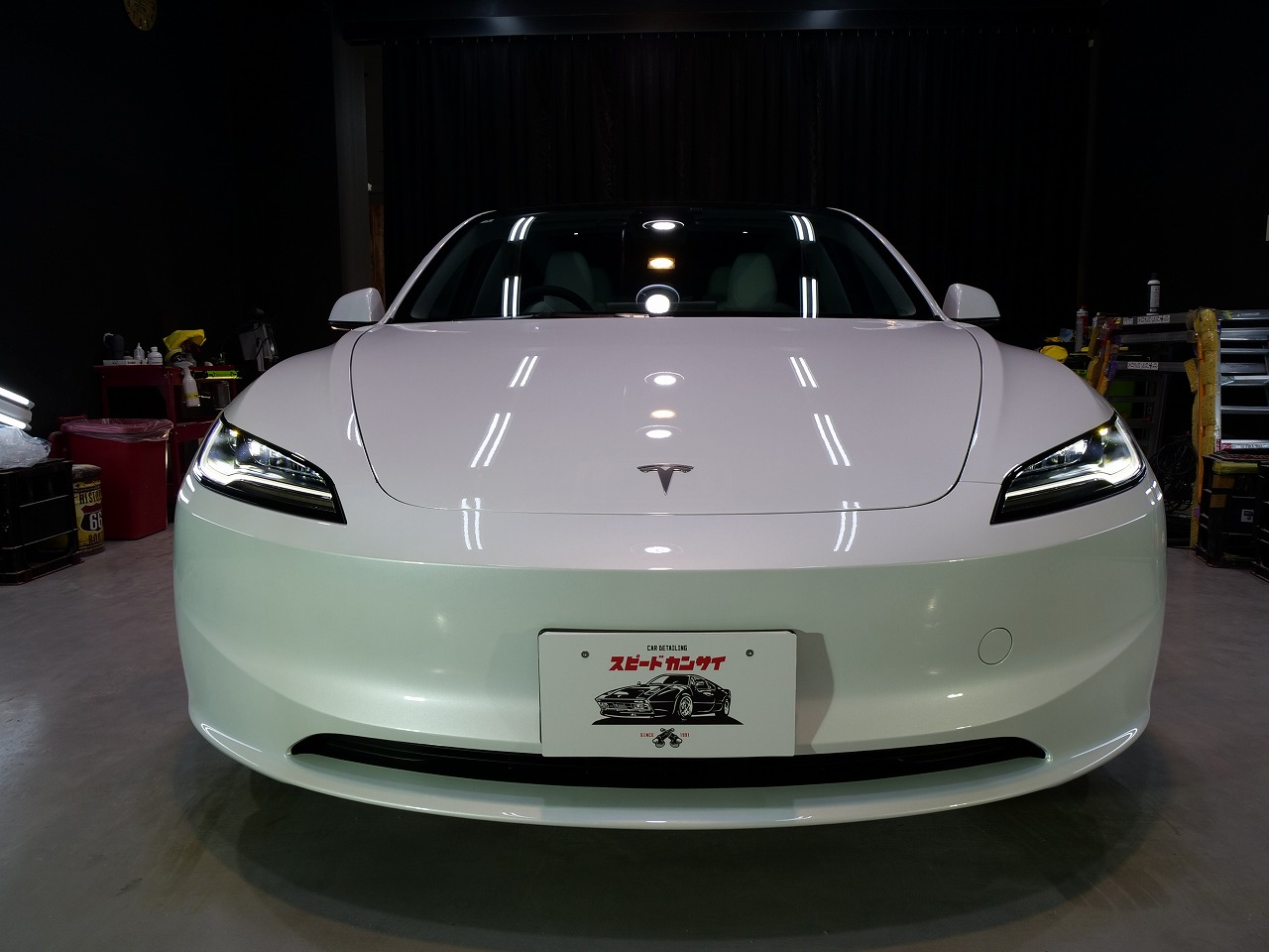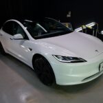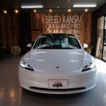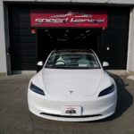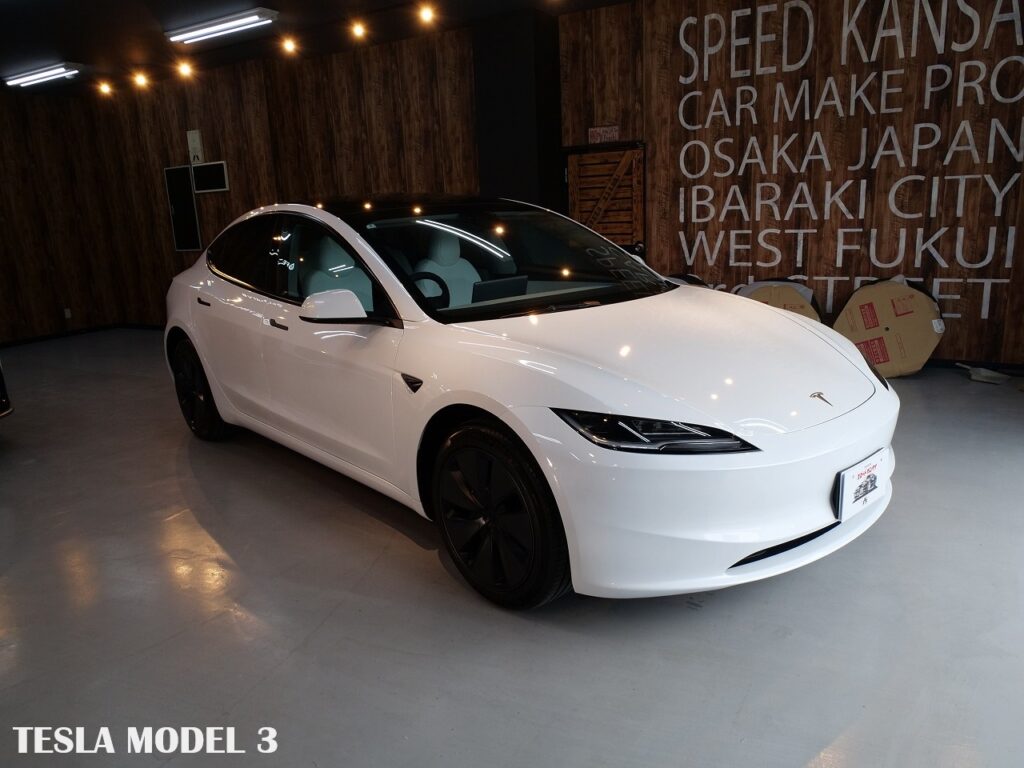 大阪府箕面市よりテスラ モデル3のご入庫です!ボディカラーはパールホワイトマルチコート。施工は