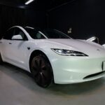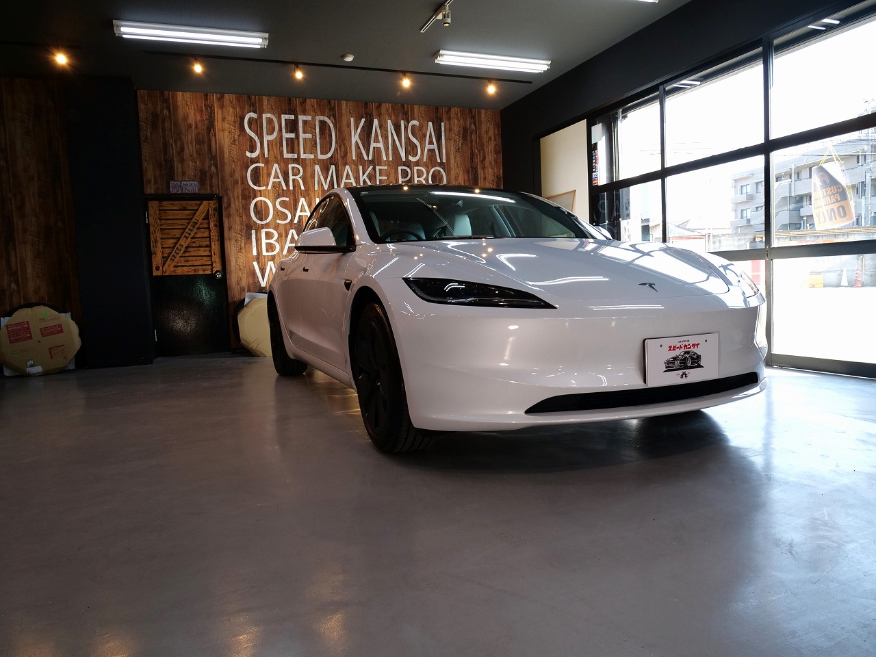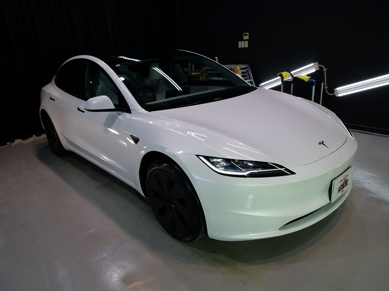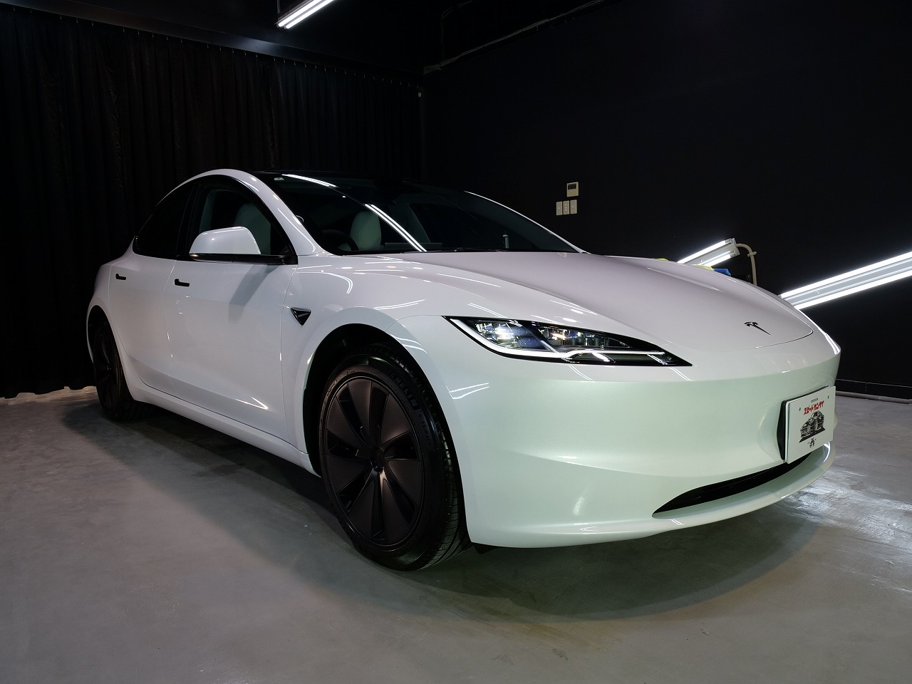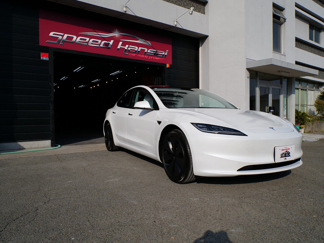 大阪府箕面市よりテスラ モデル3のご入庫です!ボディカラーはパールホワイトマルチコート。施工は