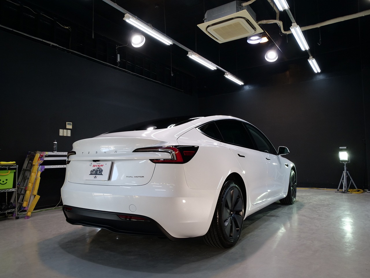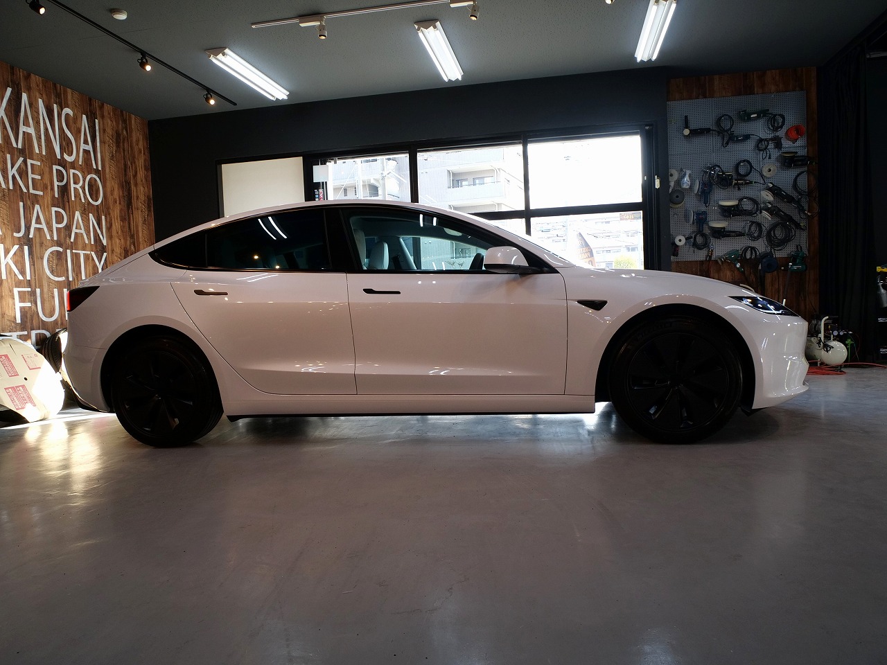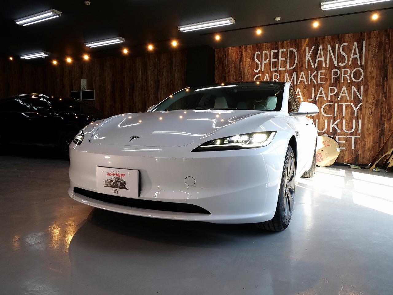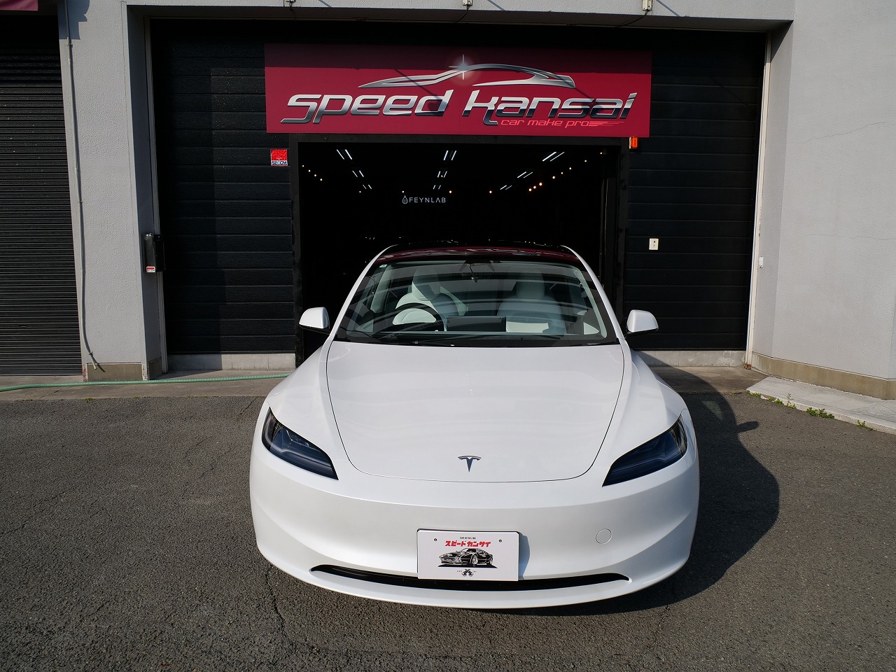 大阪府箕面市よりテスラ モデル3のご入庫です!ボディカラーはパールホワイトマルチコート。施工は