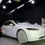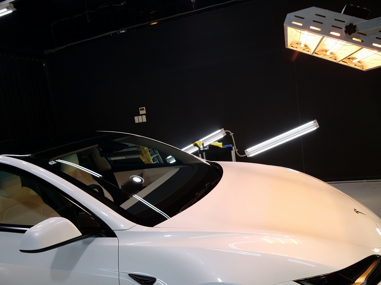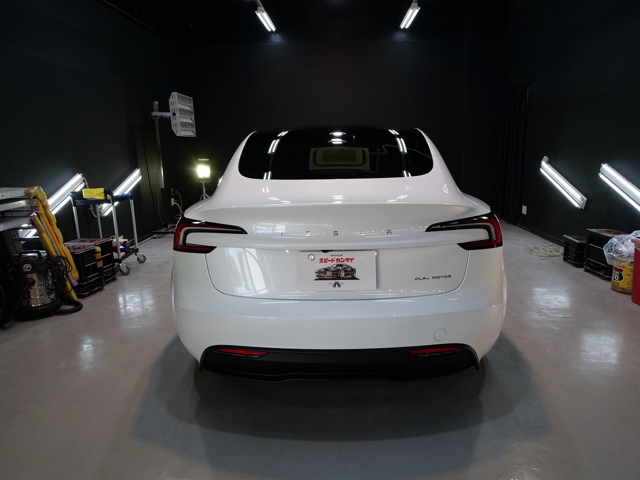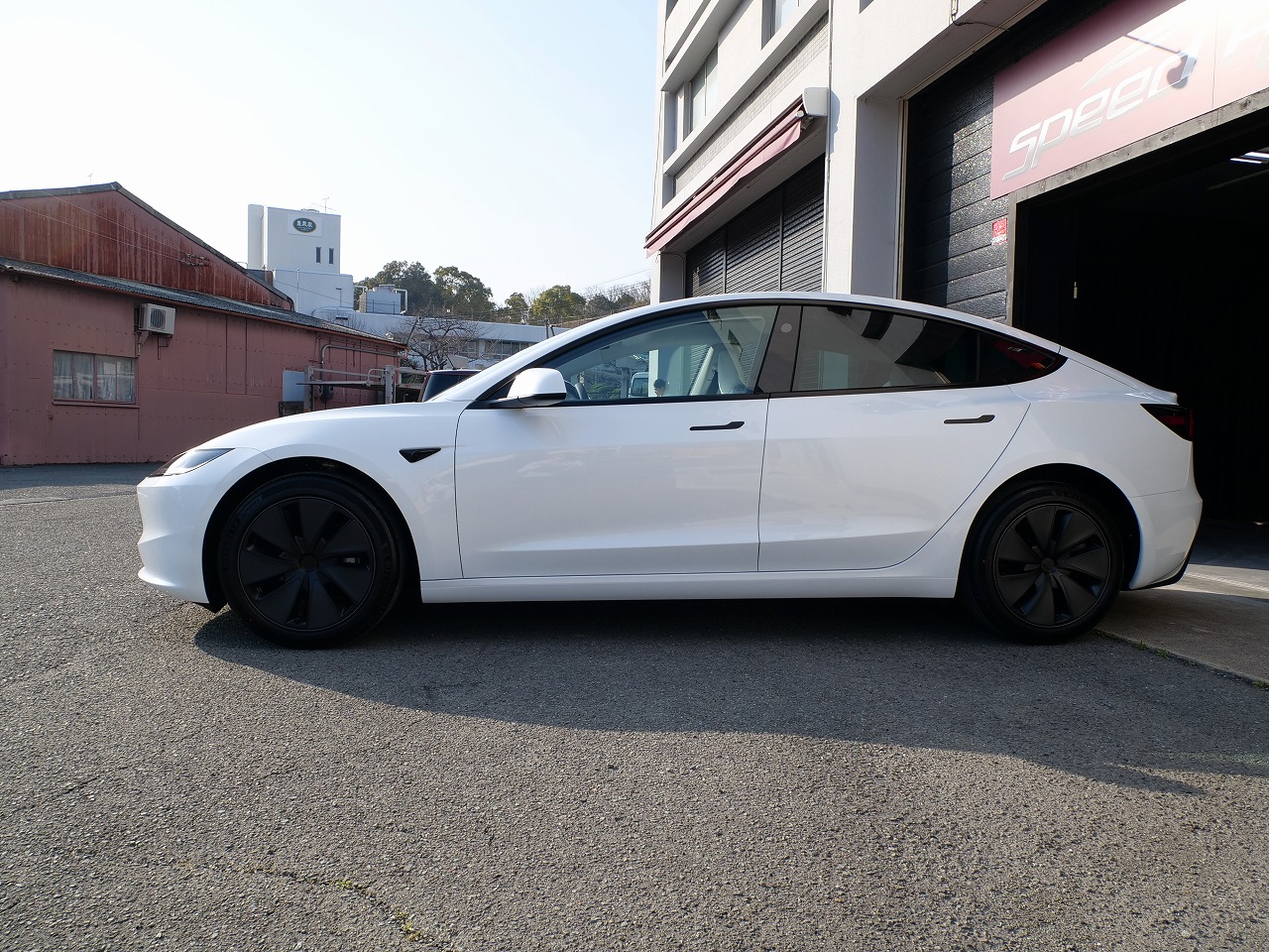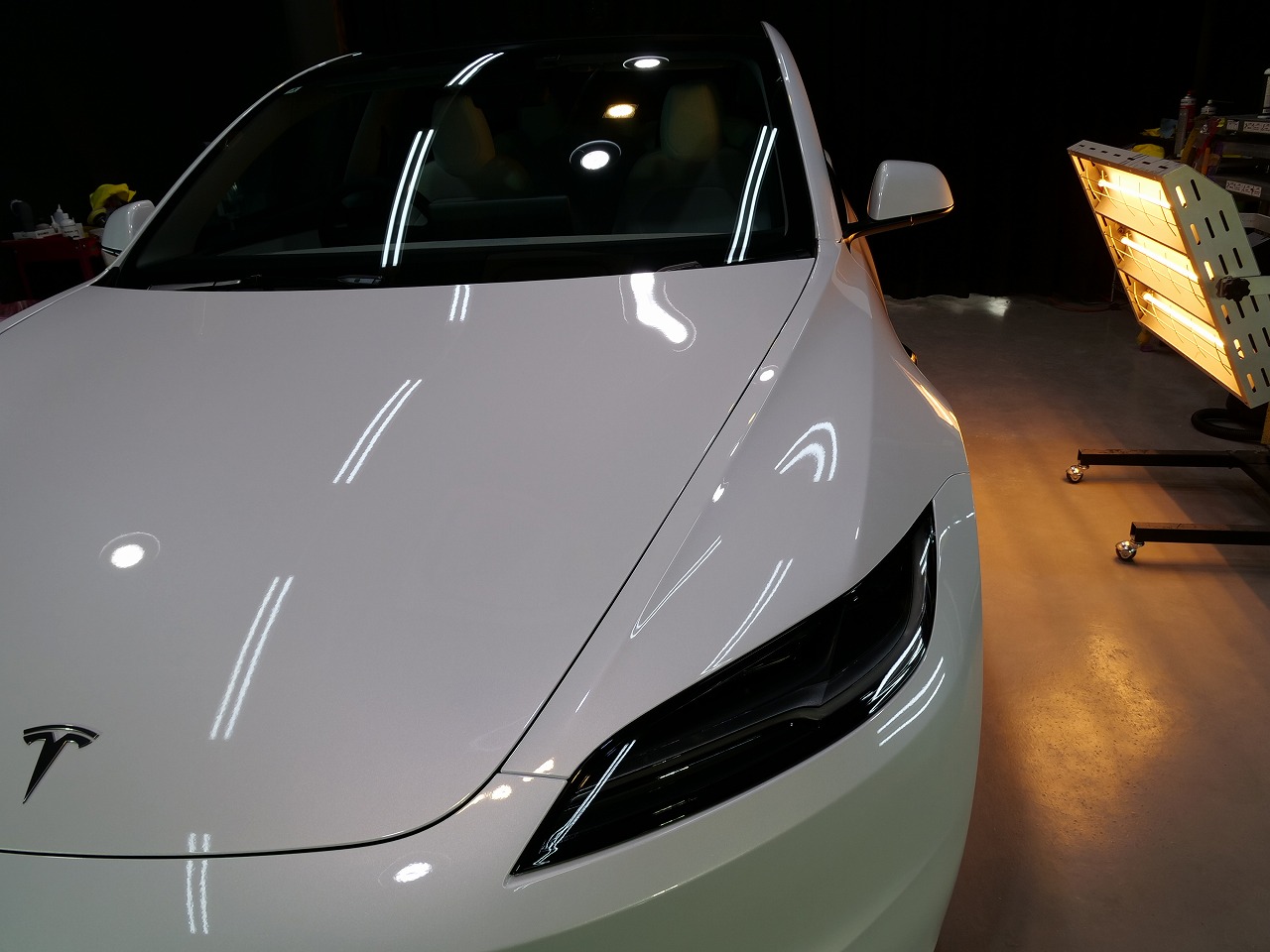大阪府箕面市よりテスラ モデル3のご入庫です!ボディカラーはパールホワイトマルチコート。施工は