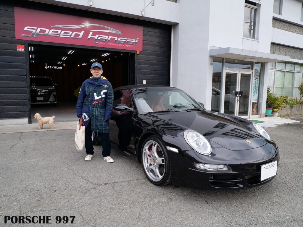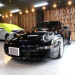 大阪府大阪市よりポルシェ997カレラSのご入庫です!ボディカラーはバサルトブラック。施工はボディ