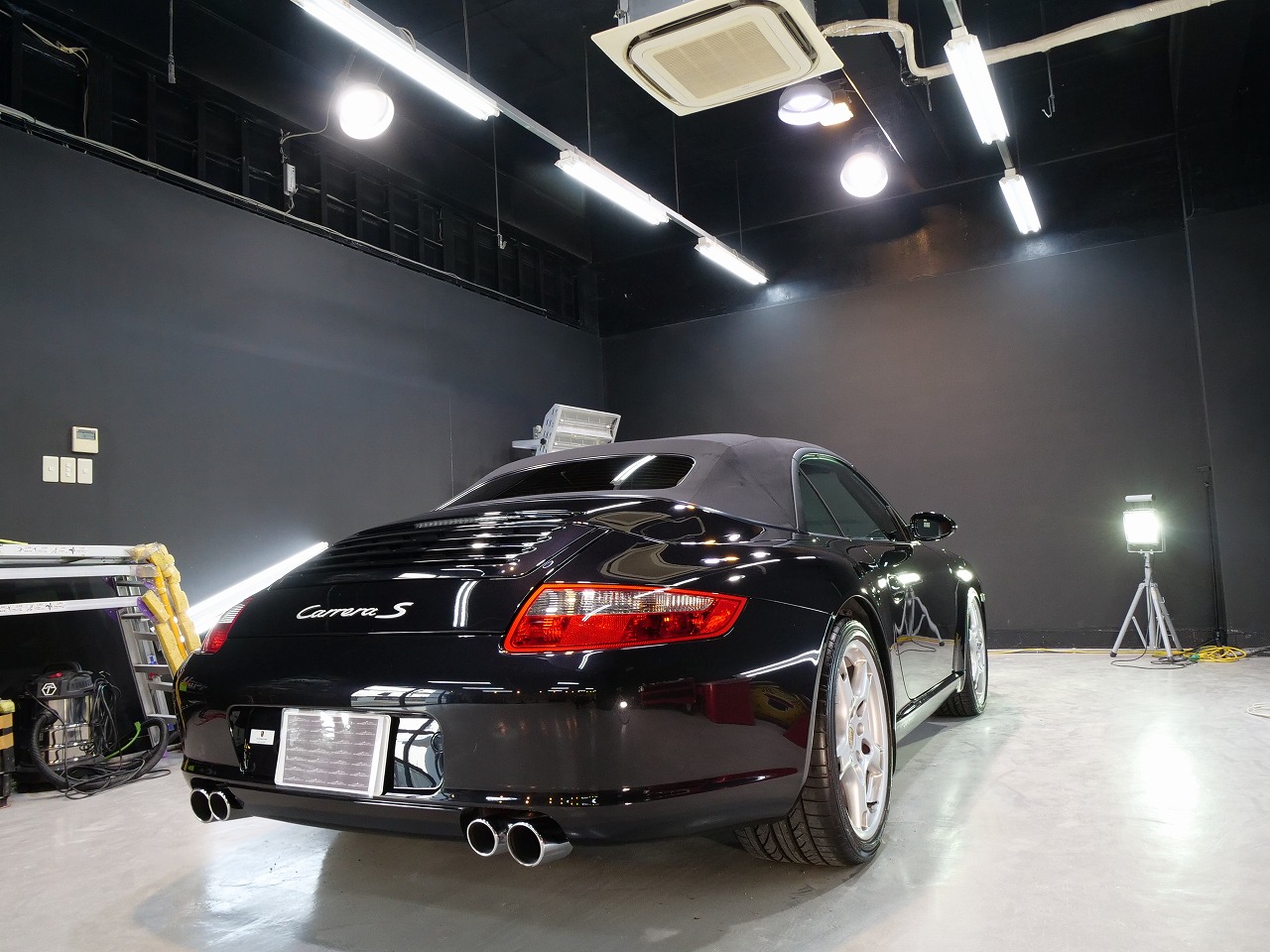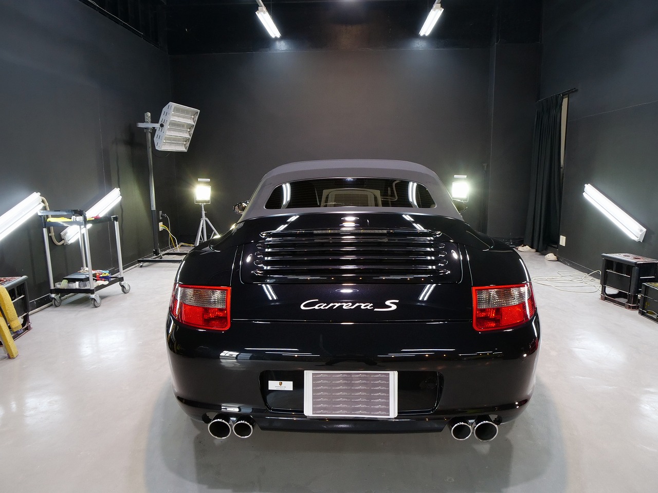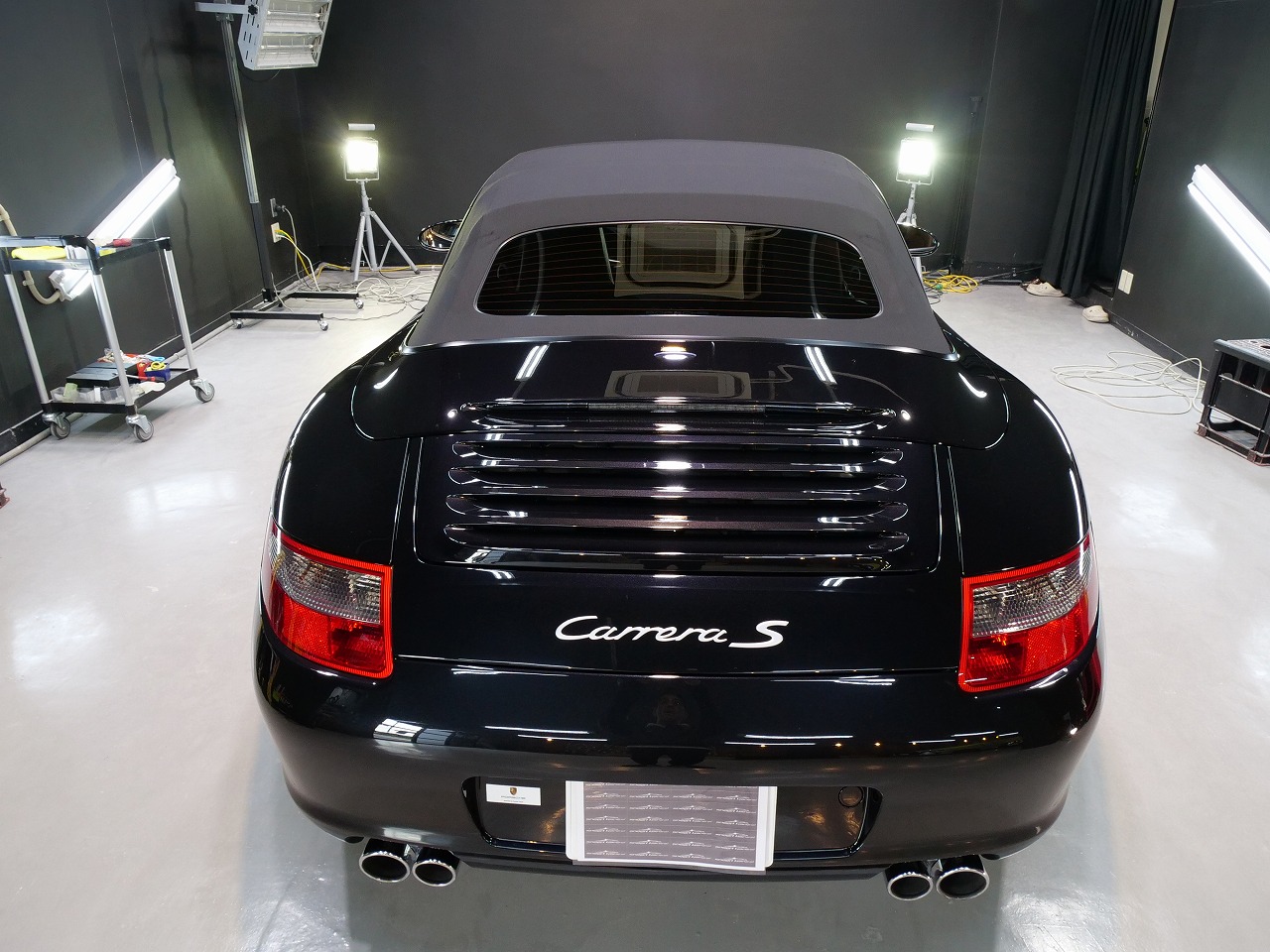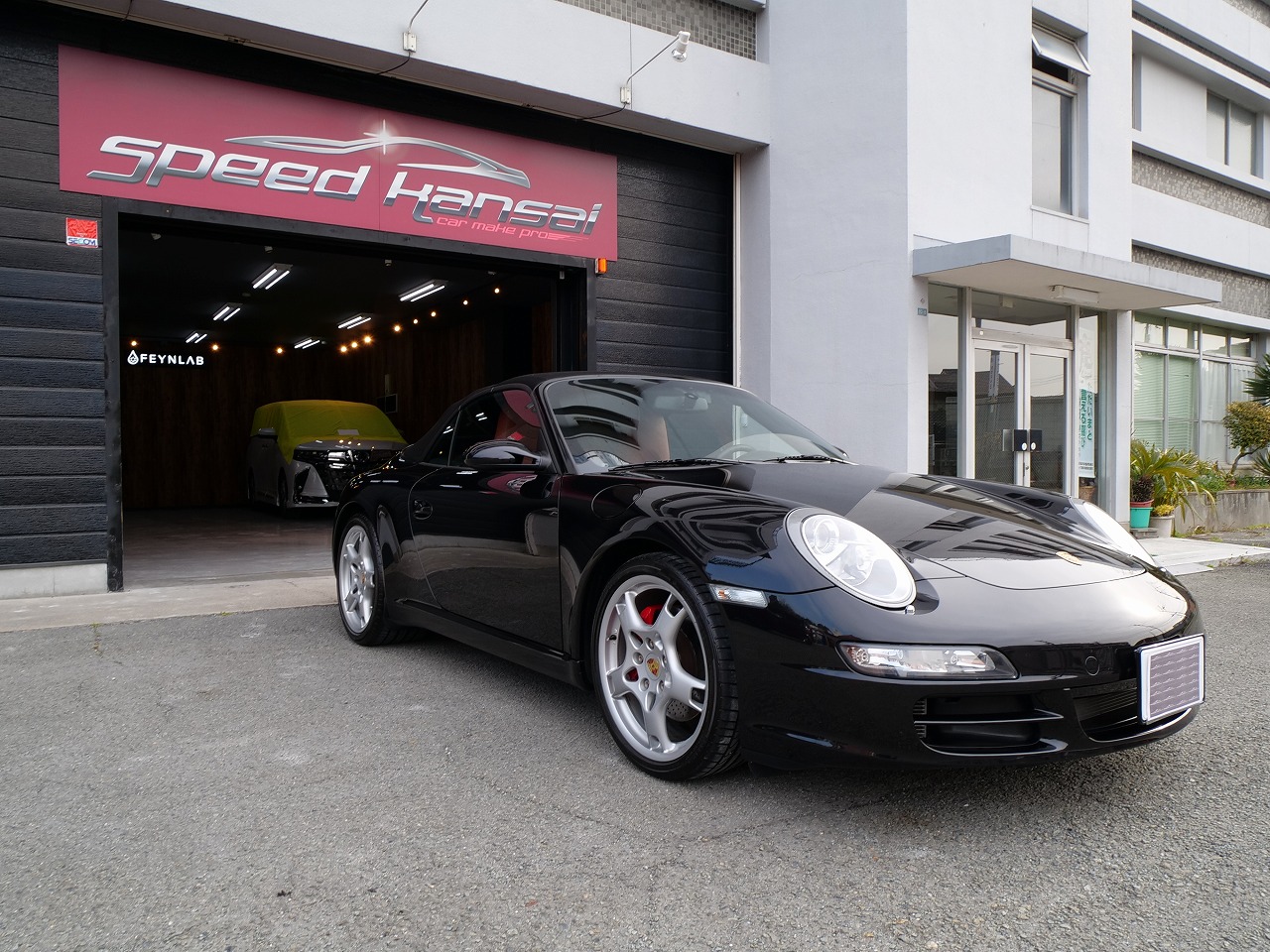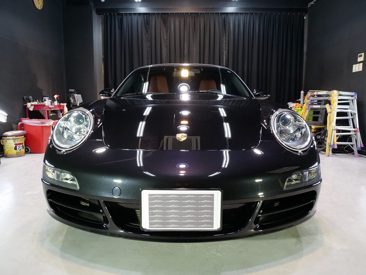 大阪府大阪市よりポルシェ997カレラSのご入庫です!ボディカラーはバサルトブラック。施工はボディ
