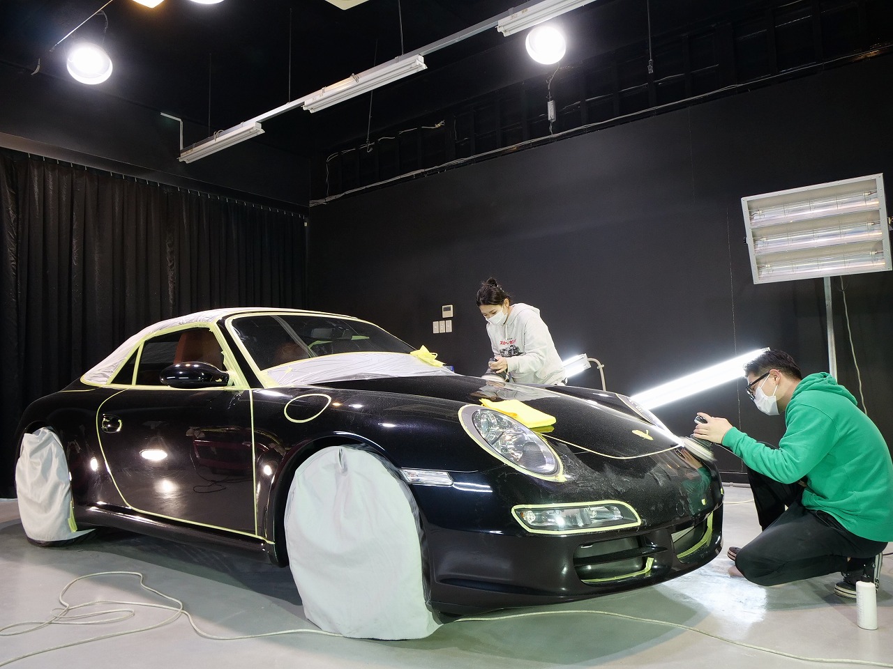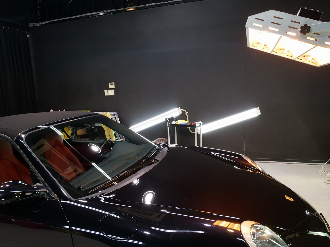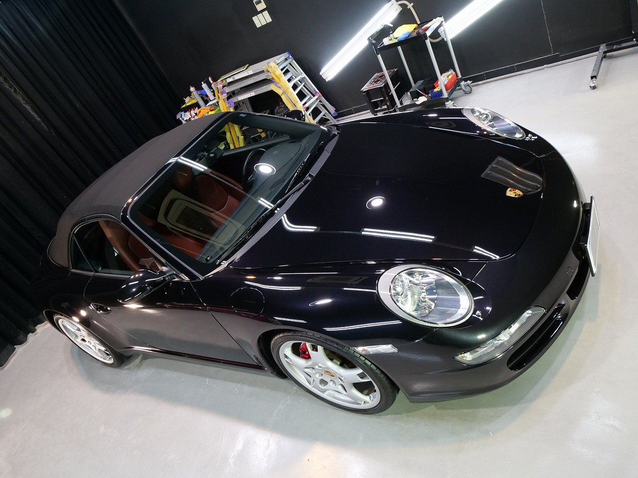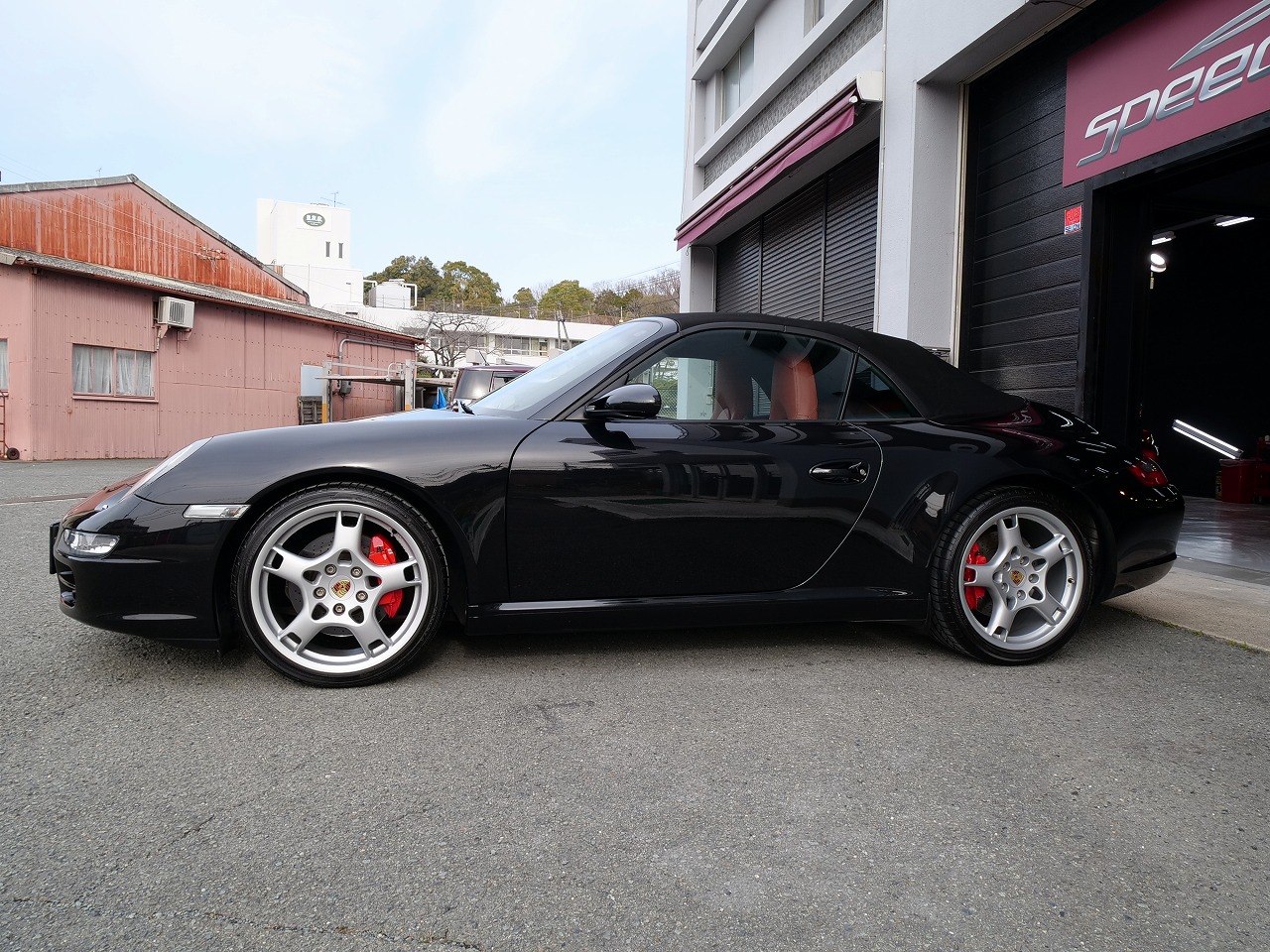 大阪府大阪市よりポルシェ997カレラSのご入庫です!ボディカラーはバサルトブラック。施工はボディ