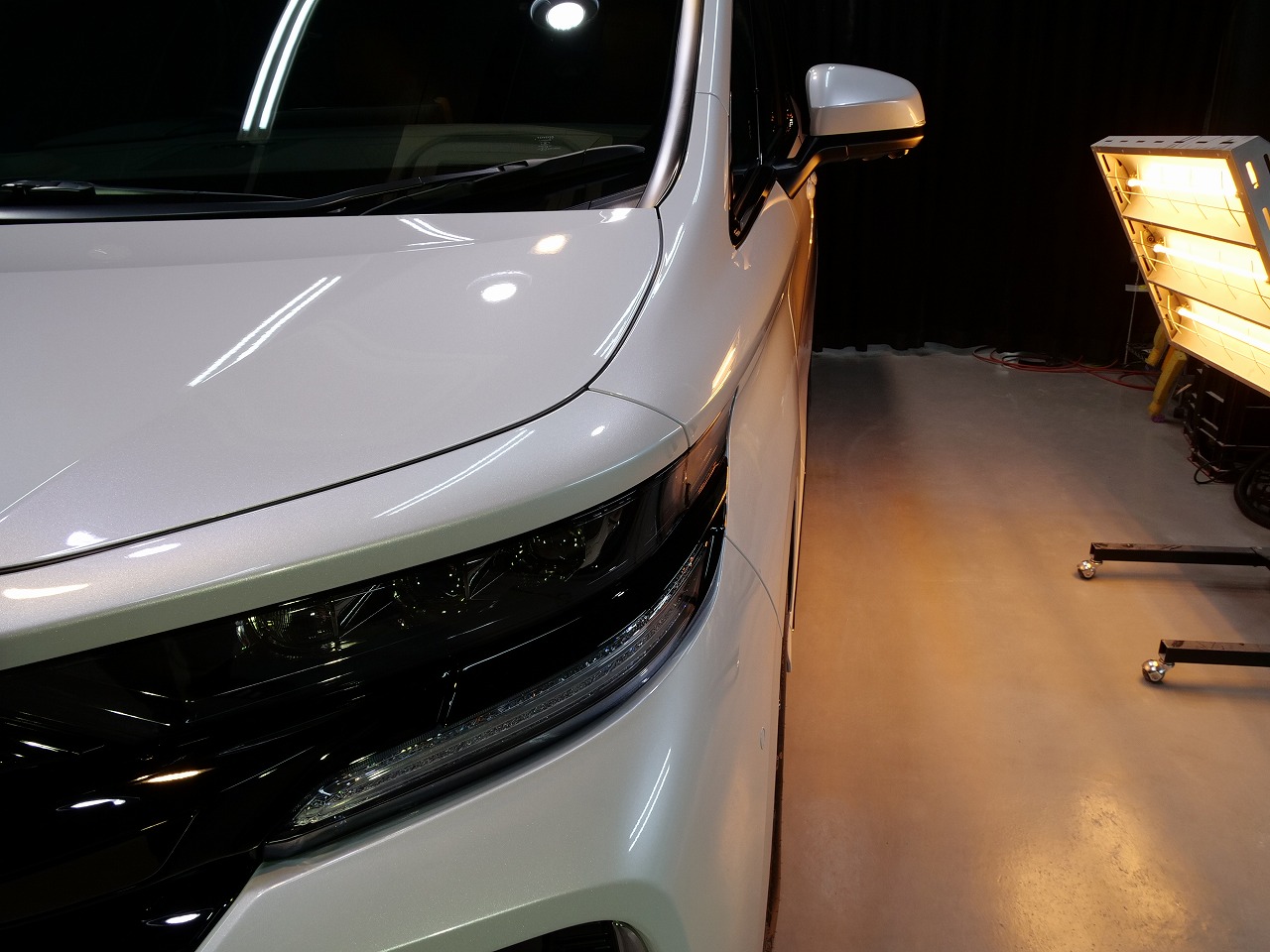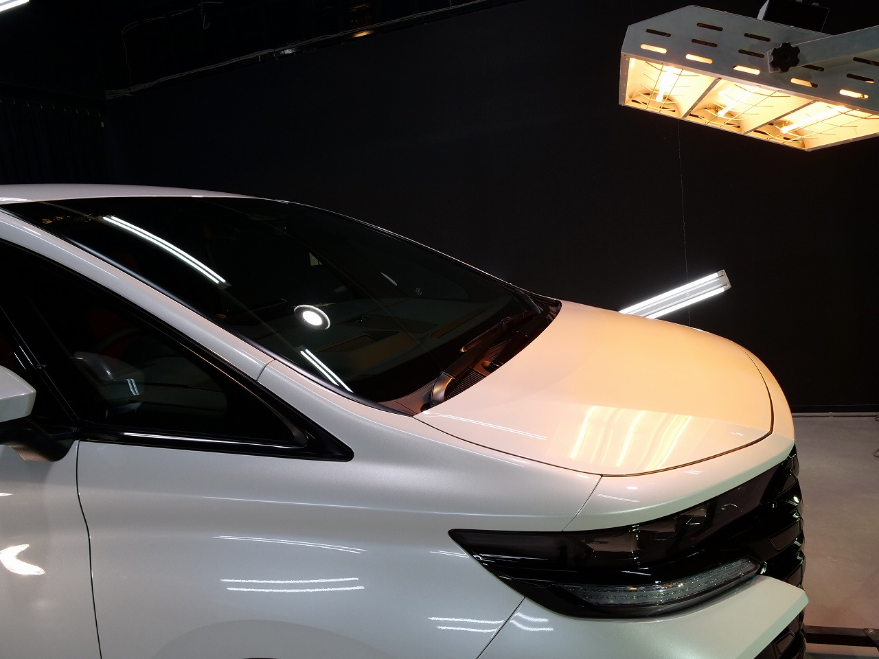 カラーはプラチナホワイトパールマイカ!施工はボディにはファインラボセラミックコーティング