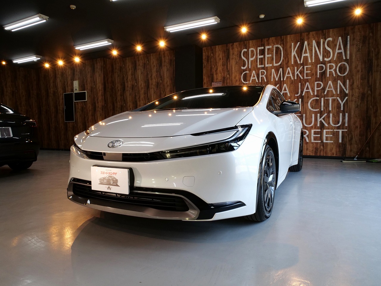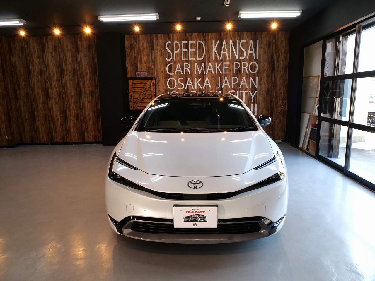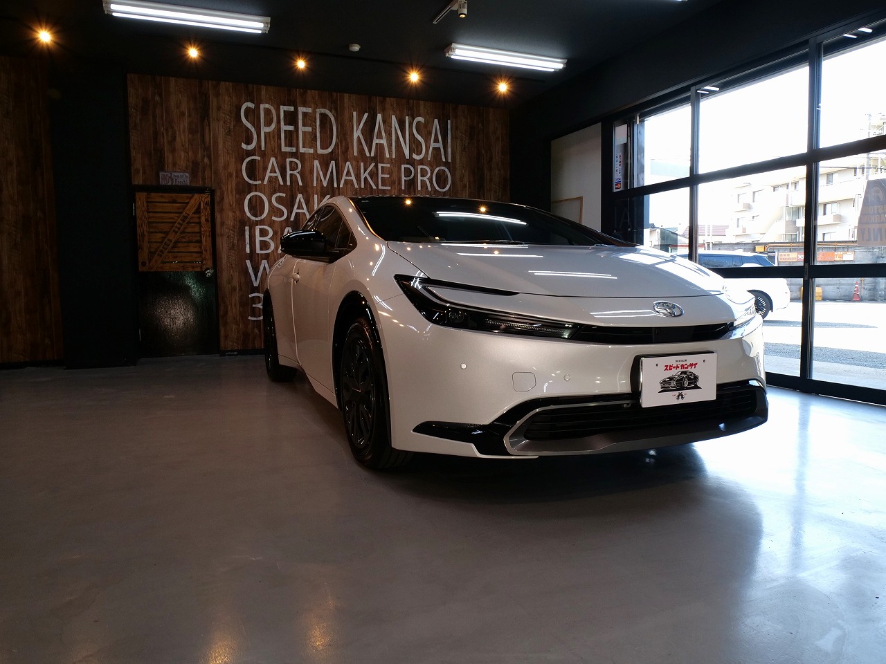 大阪府豊中市よりトヨタ プリウスのご入庫です!ボディカラーはプラチナホワイトパール。施工は
