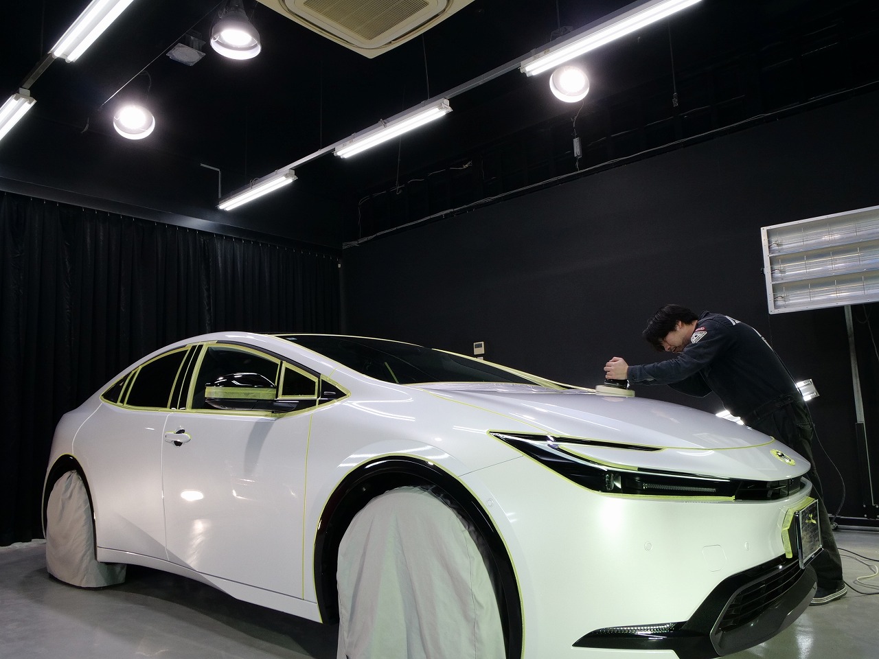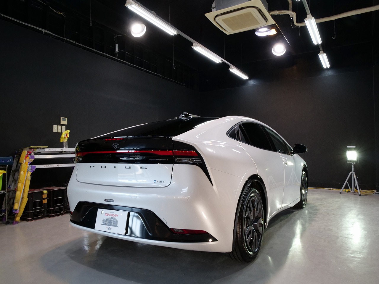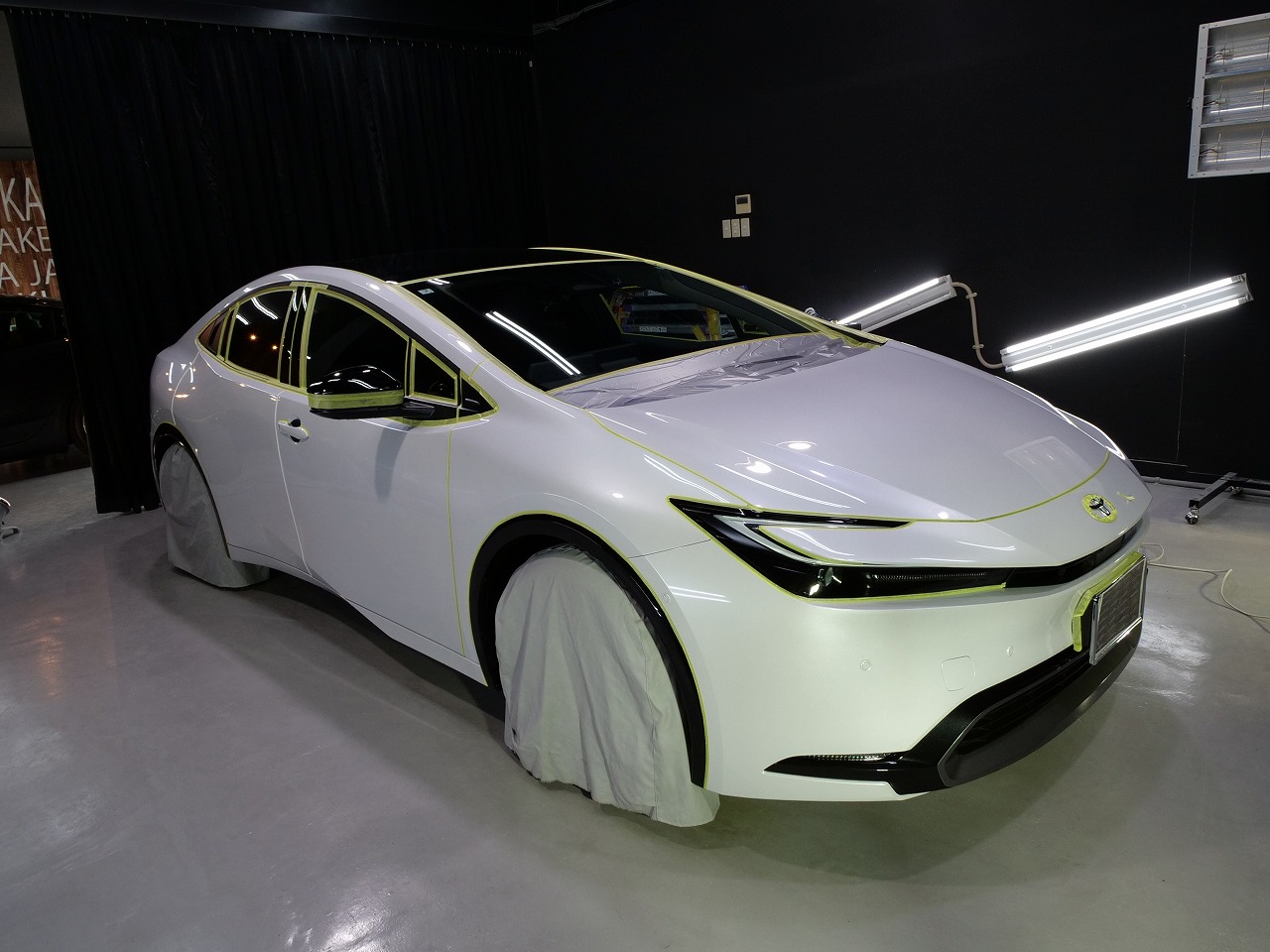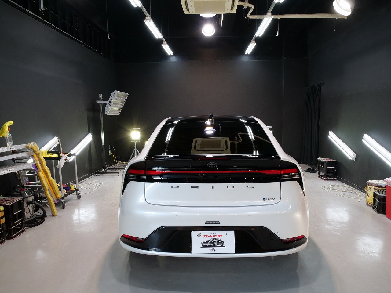 大阪府豊中市よりトヨタ プリウスのご入庫です!ボディカラーはプラチナホワイトパール。施工は
