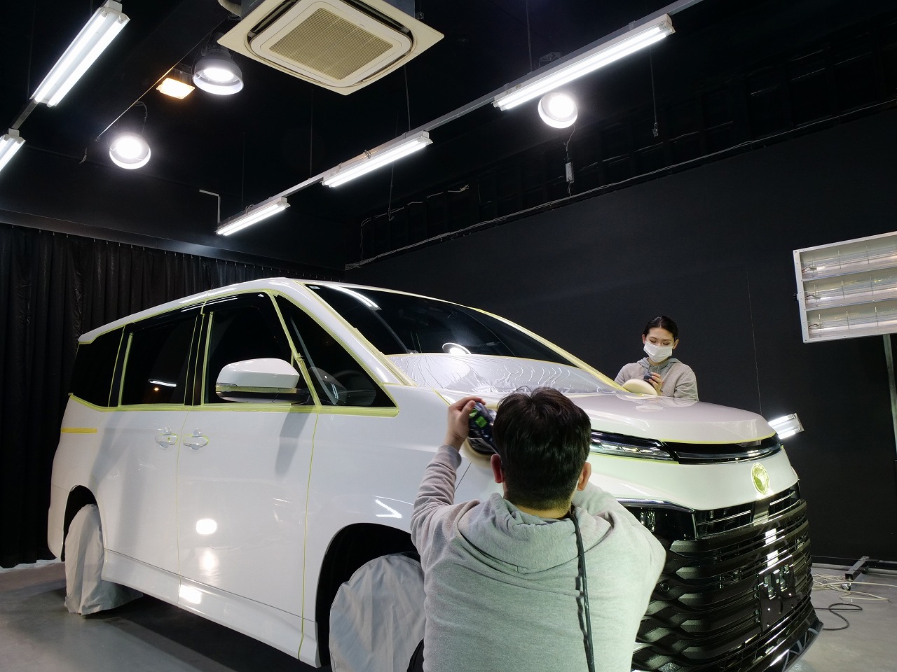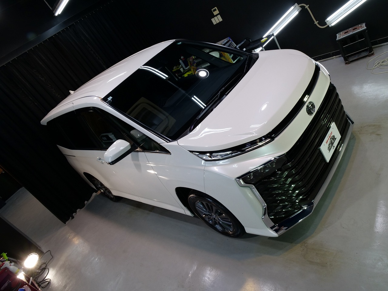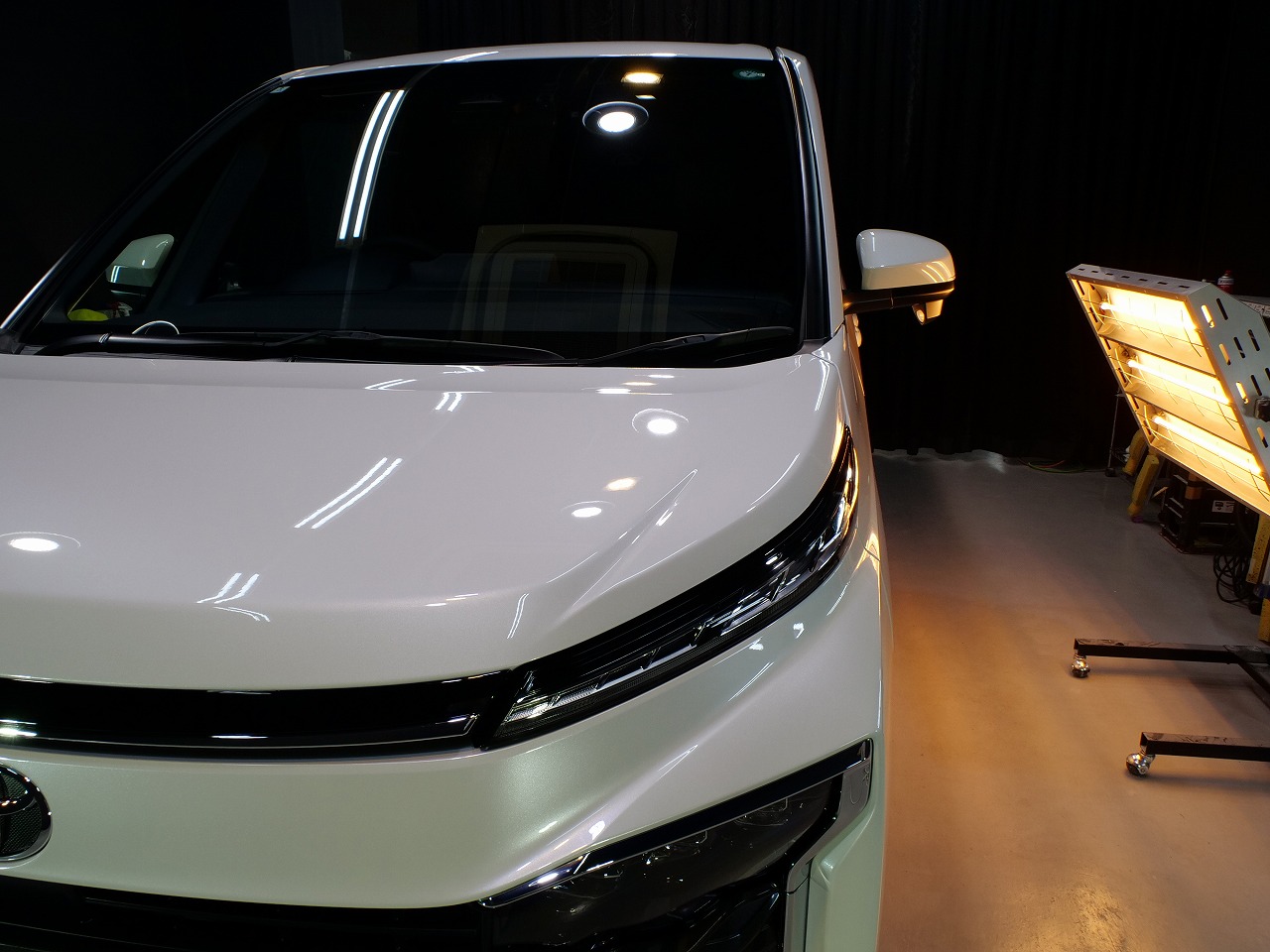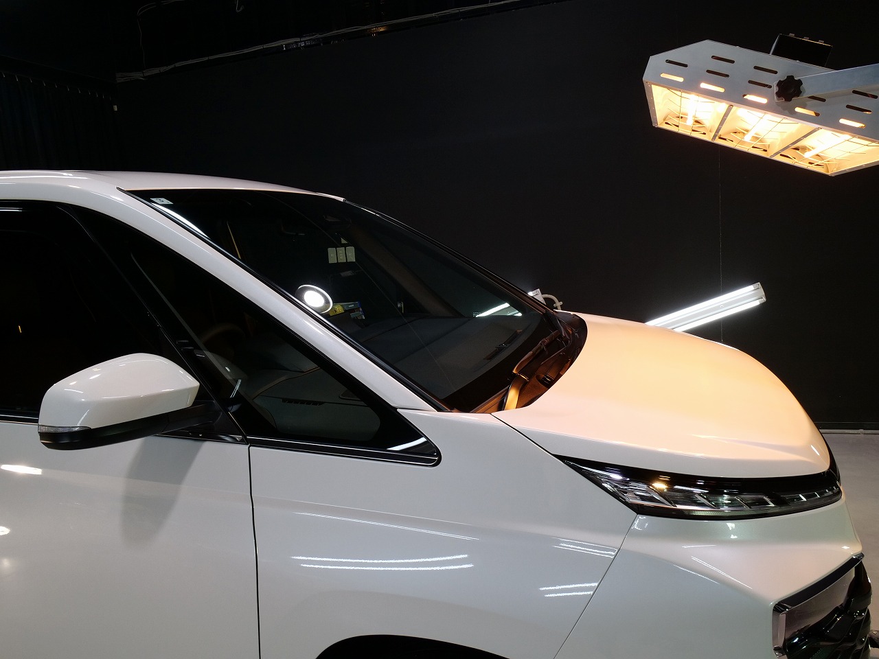 カラーはホワイトパールクリスタルシャイン。施工はボディにはG’ZOXリアルガラスコートクラスM/