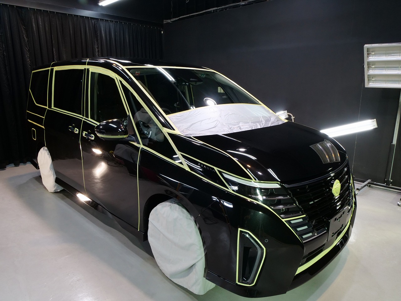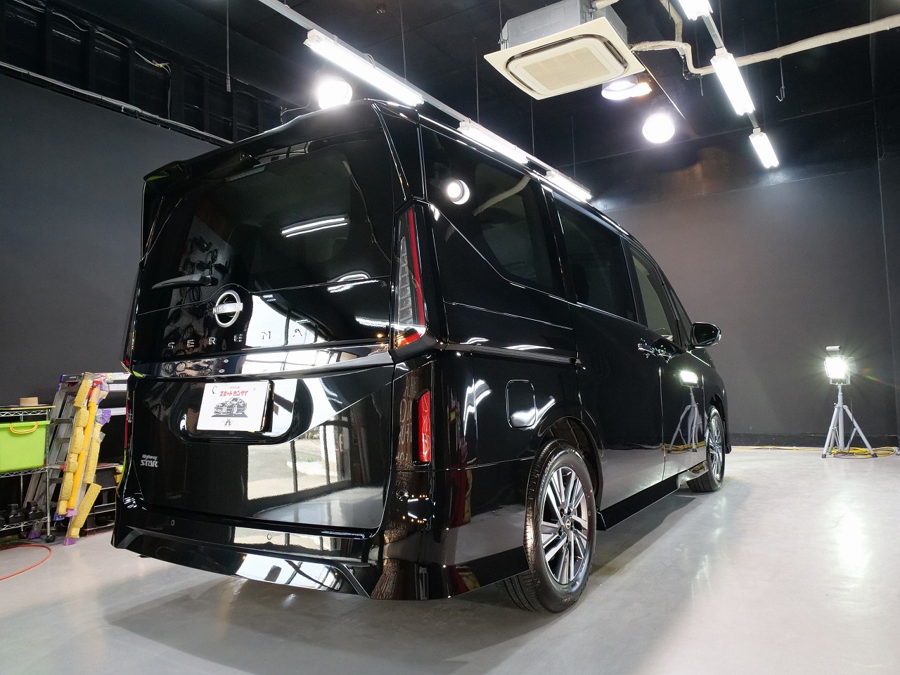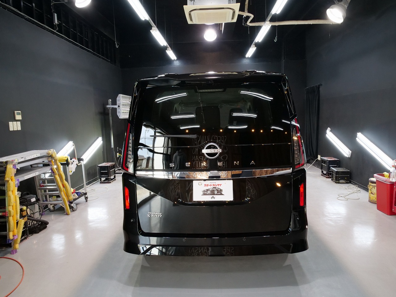 京都府京都市より日産セレナのご入庫です!ボディカラーはダイヤモンドブラック。施工はボディ
