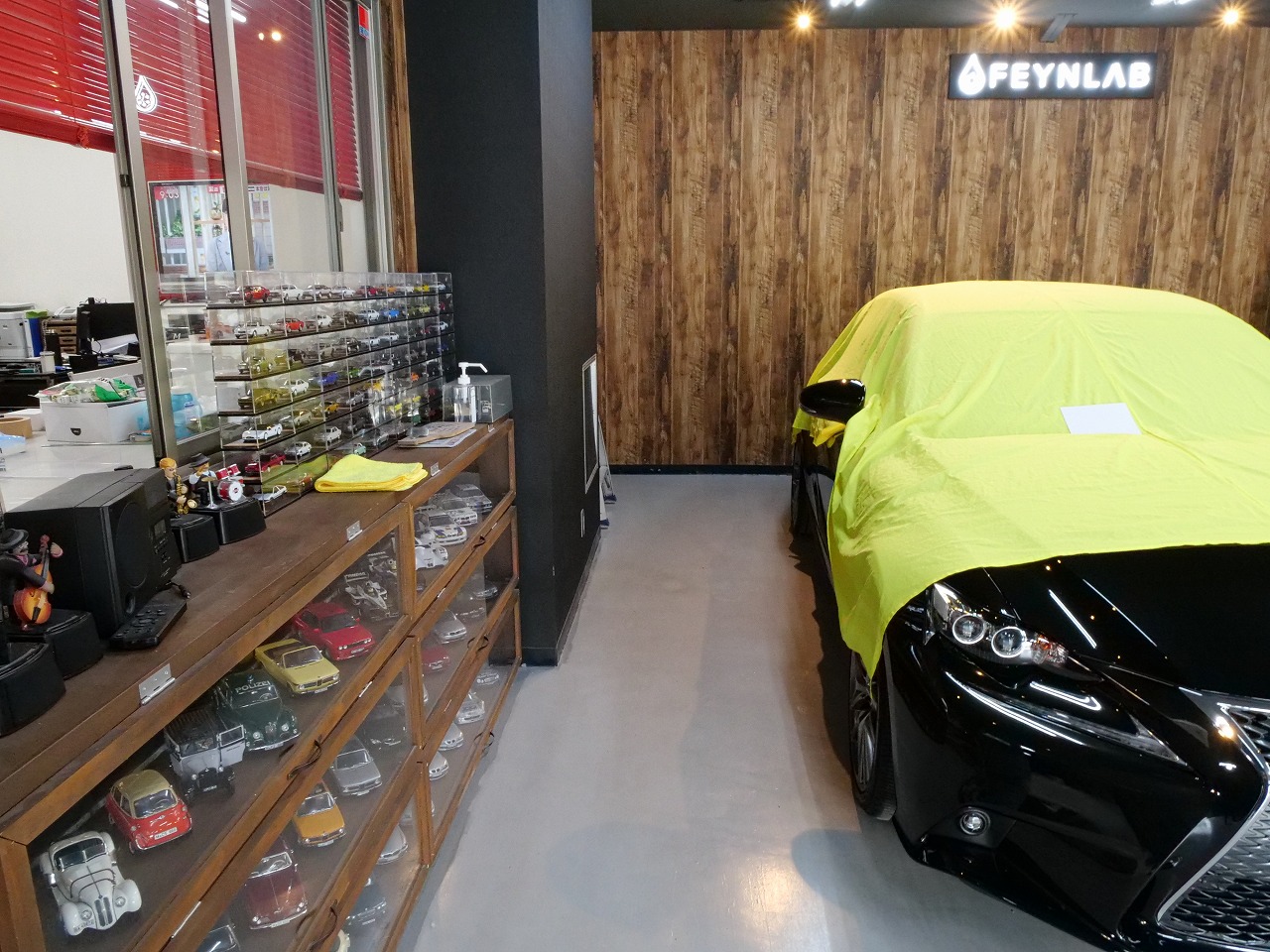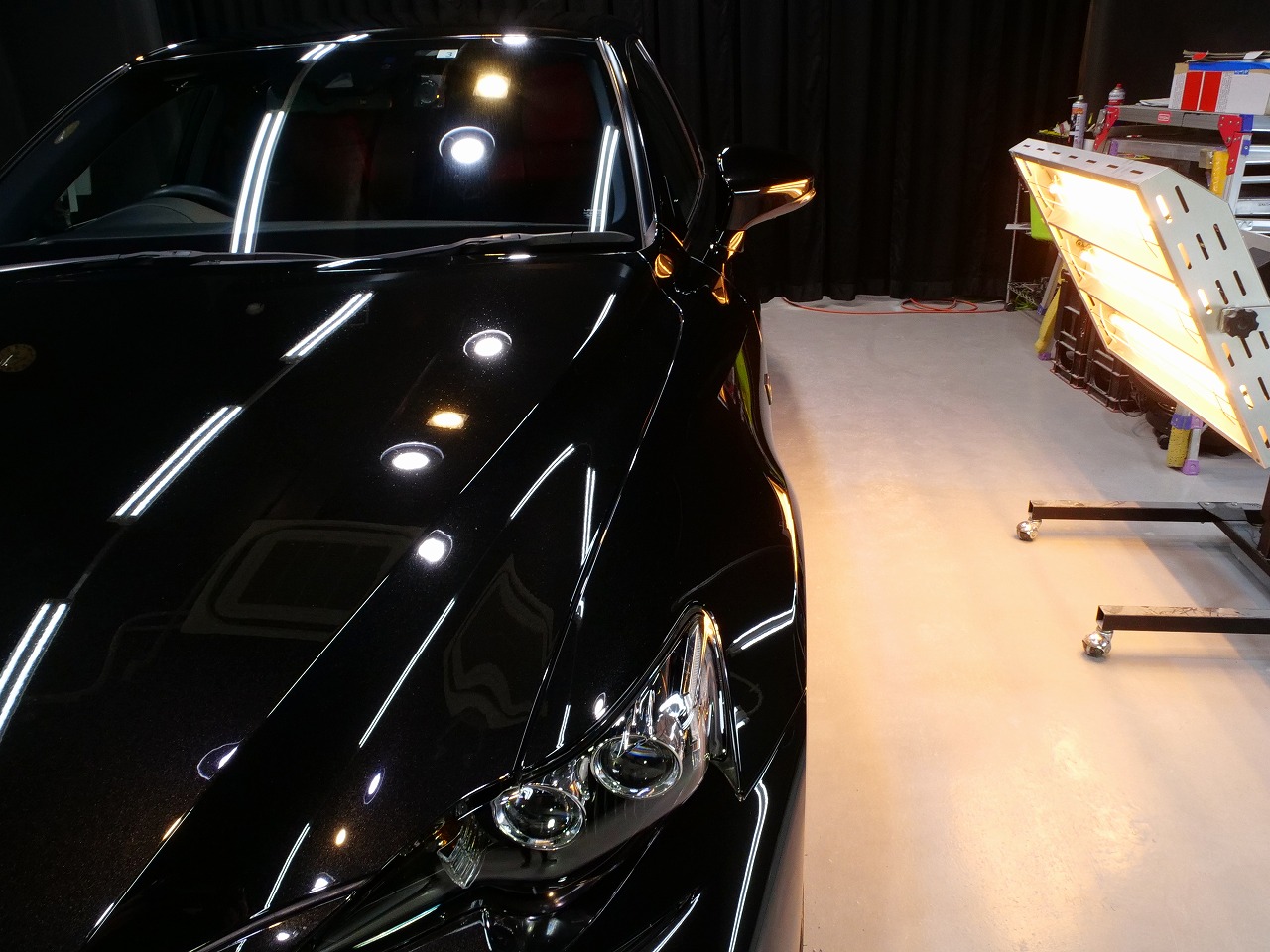 スターライトブラックガラスフレーク。施工はボディにはファインラボセラミックコーティング2層/
