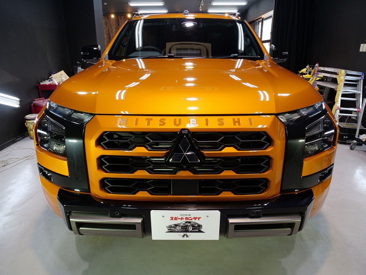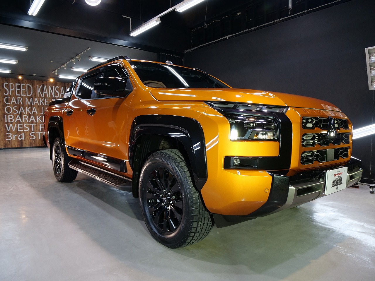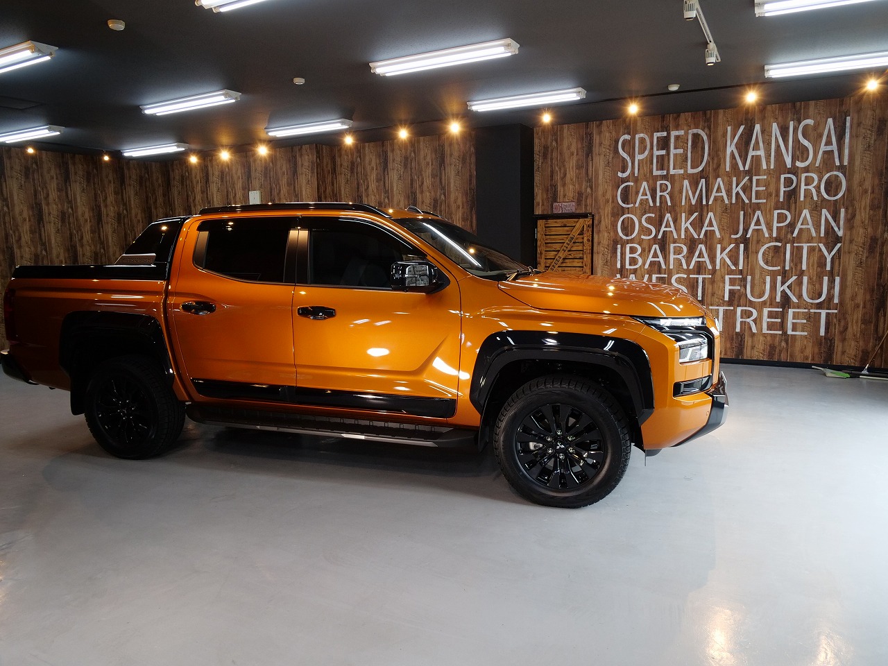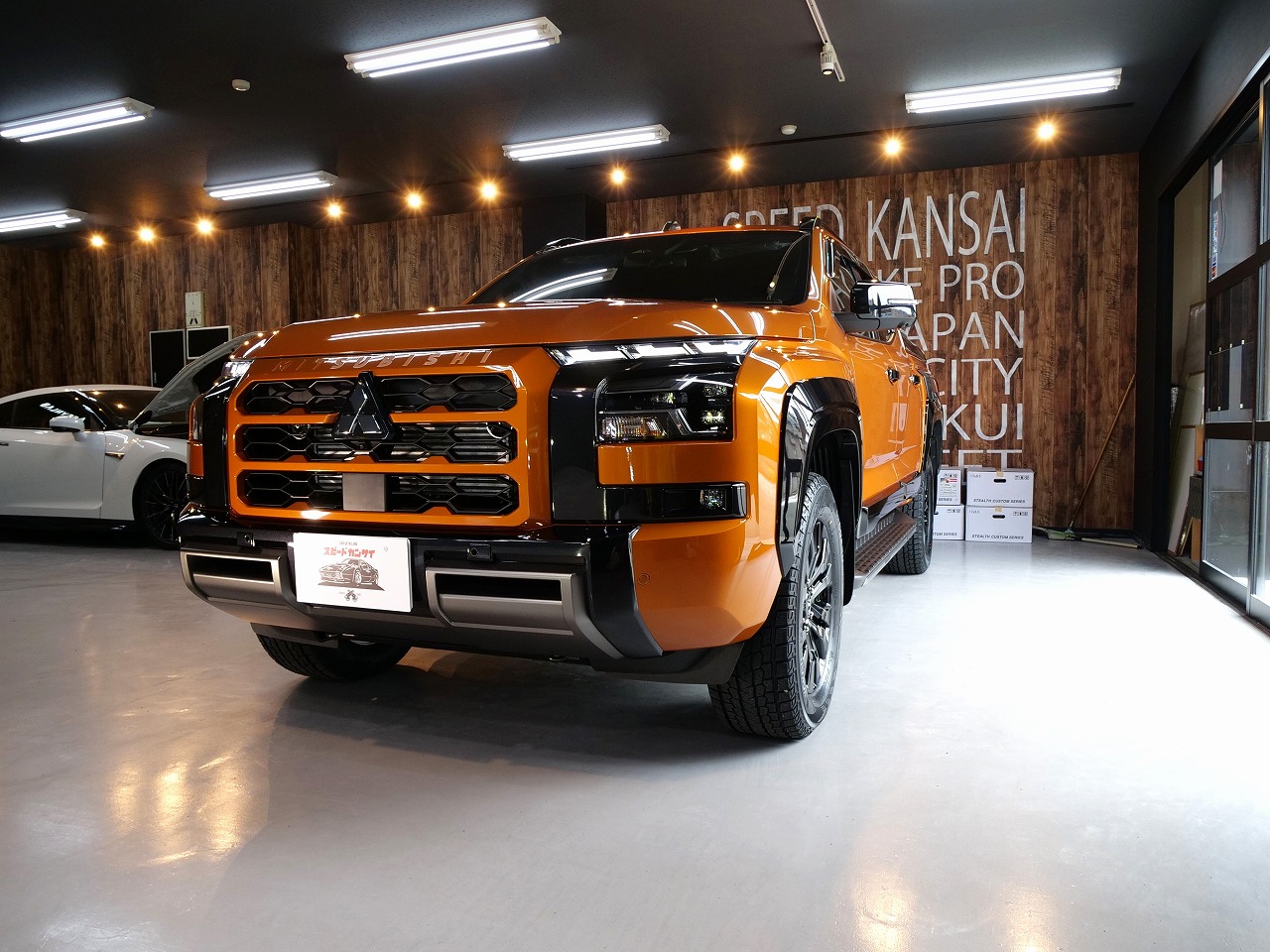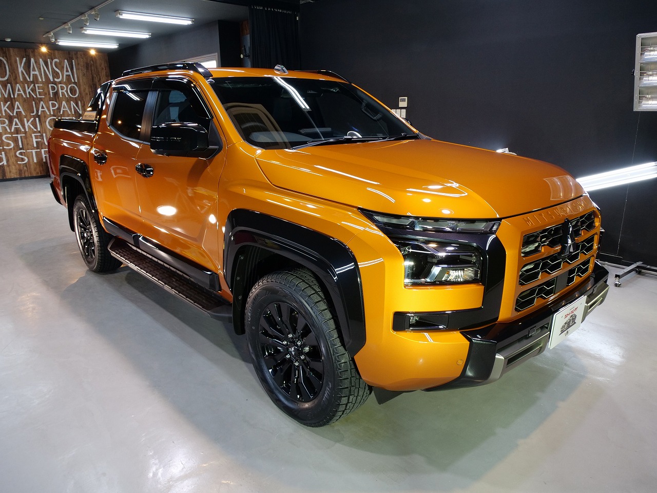 大阪府茨木市より三菱トライトンのご入庫です!ボディカラーはヤマブキオレンジメタリック!施工は