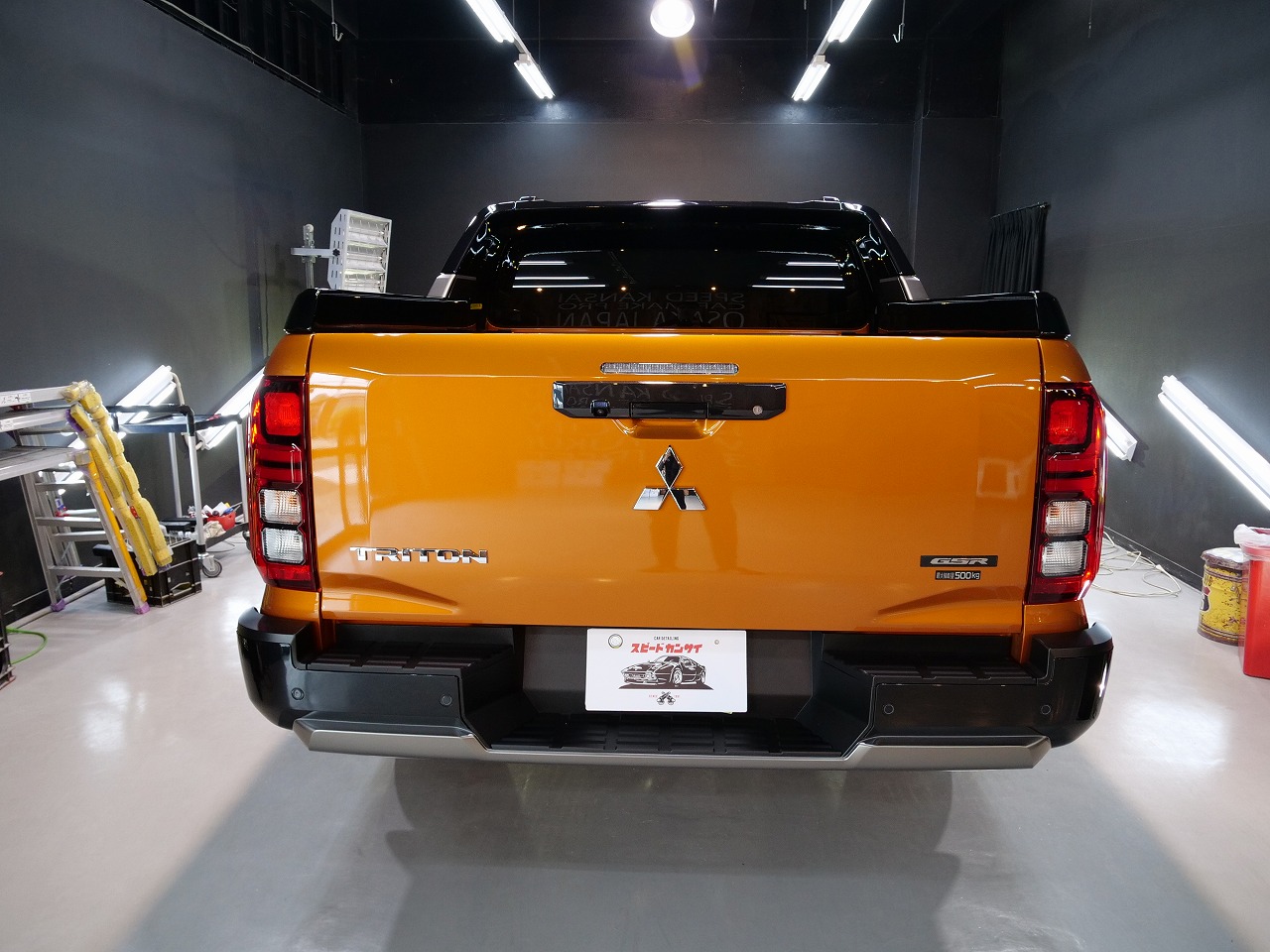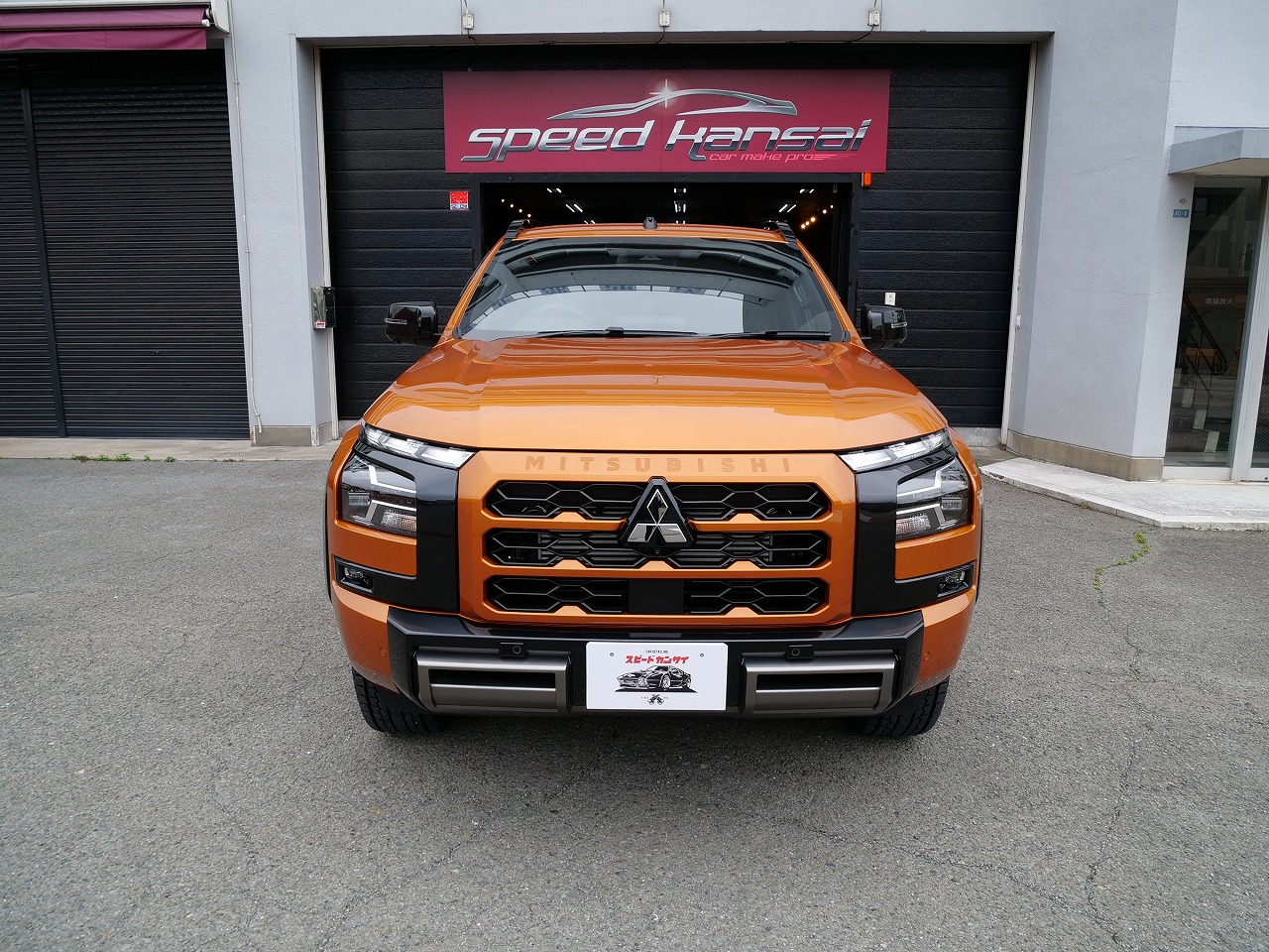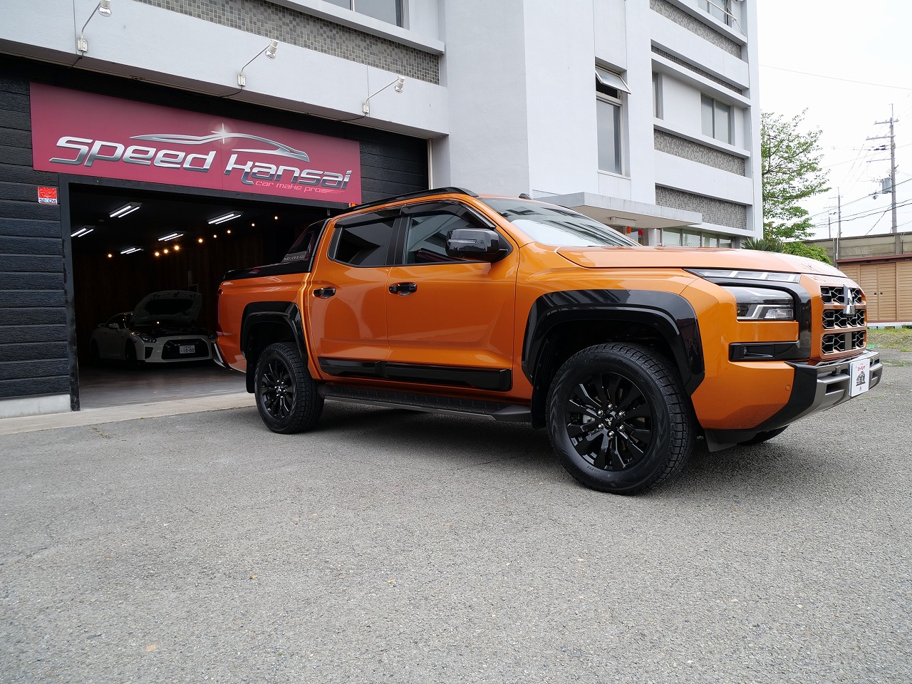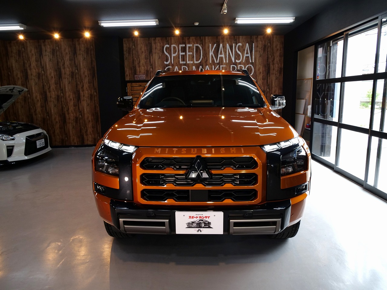 大阪府茨木市より三菱トライトンのご入庫です!ボディカラーはヤマブキオレンジメタリック!施工は