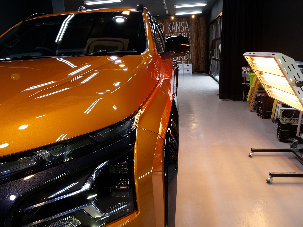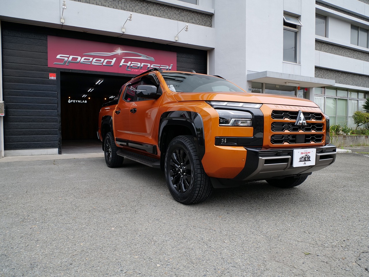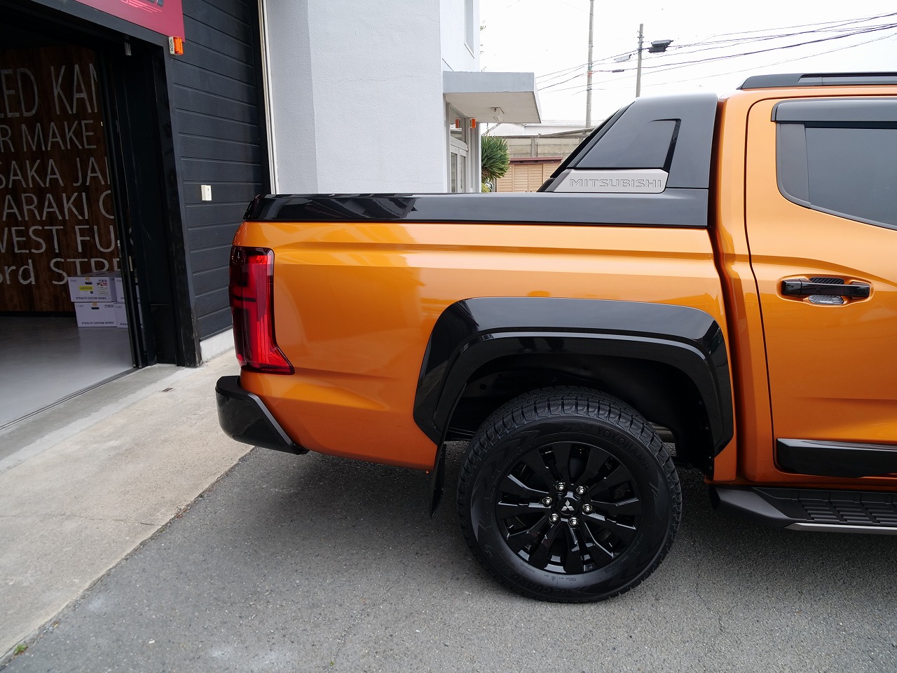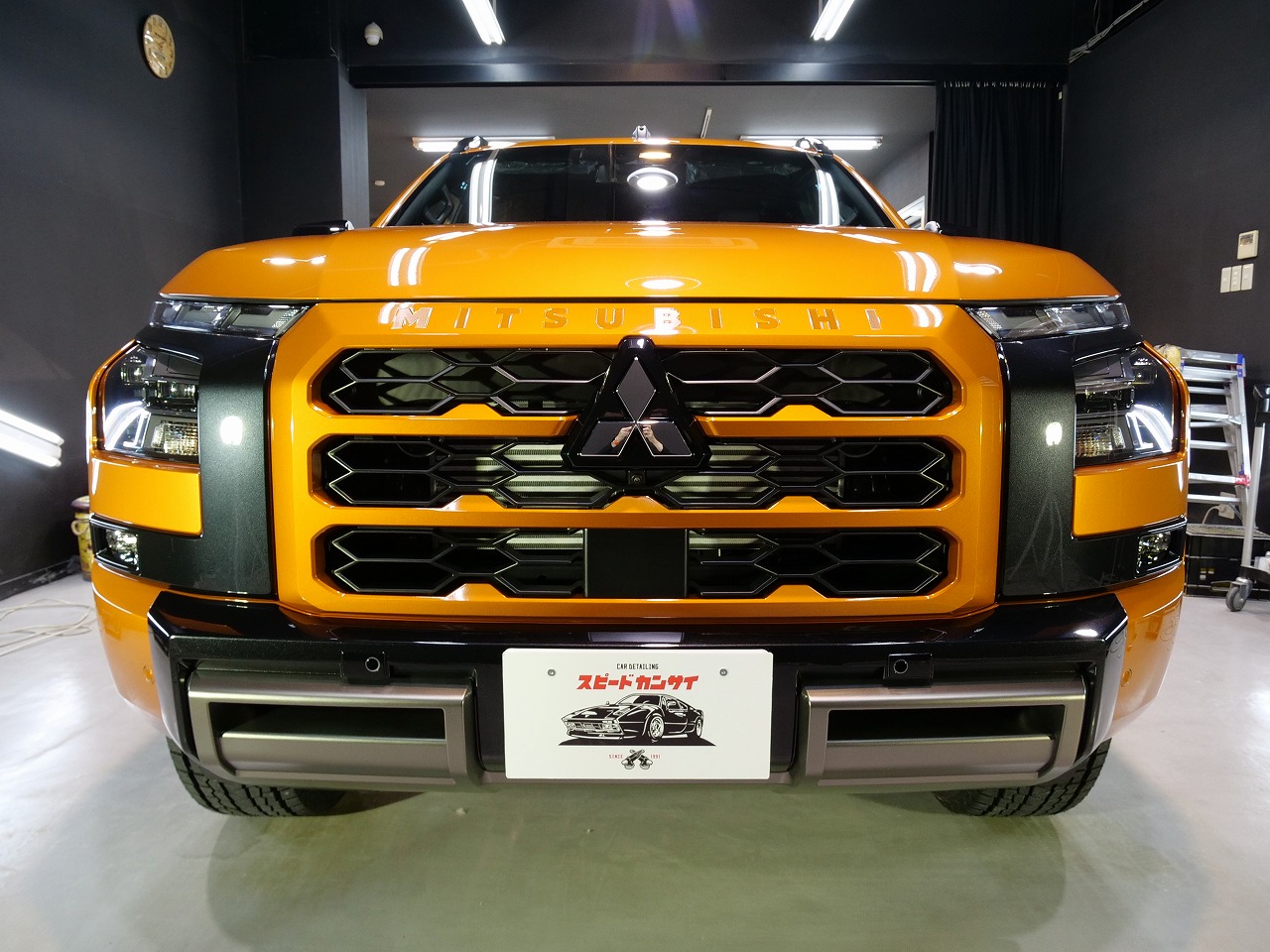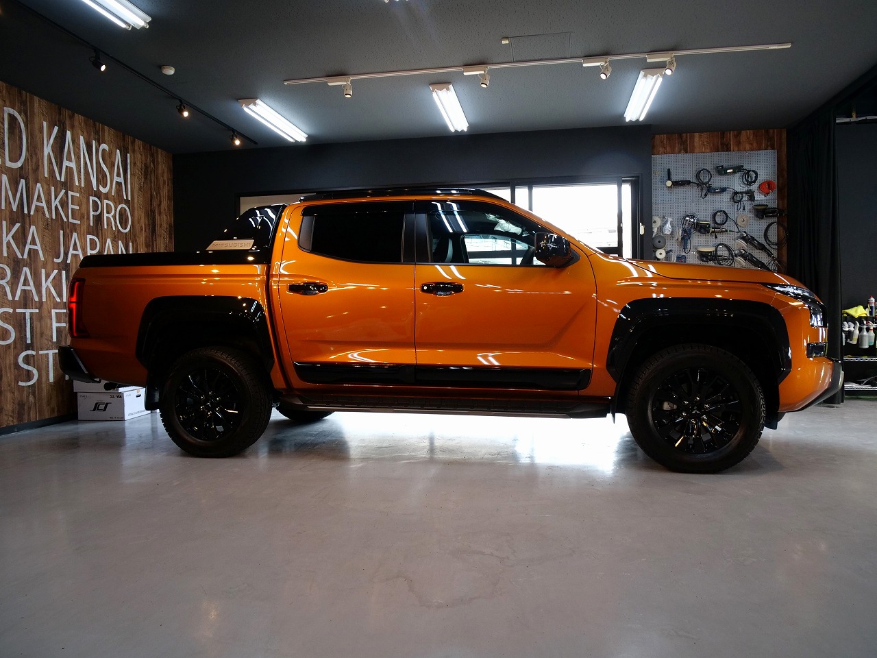 大阪府茨木市より三菱トライトンのご入庫です!ボディカラーはヤマブキオレンジメタリック!施工は