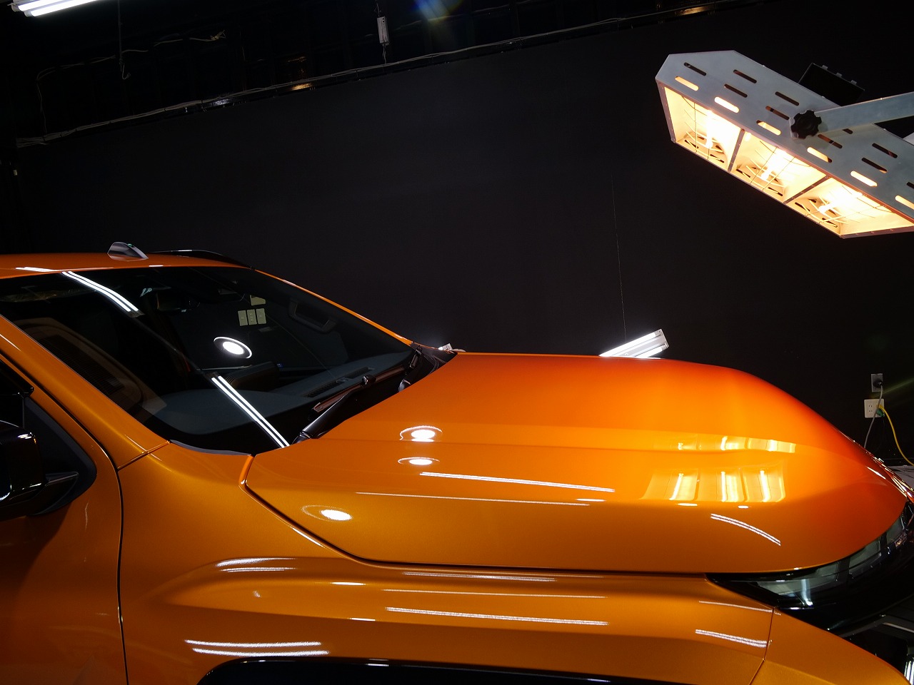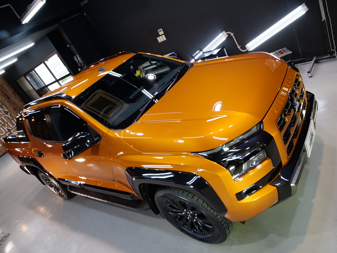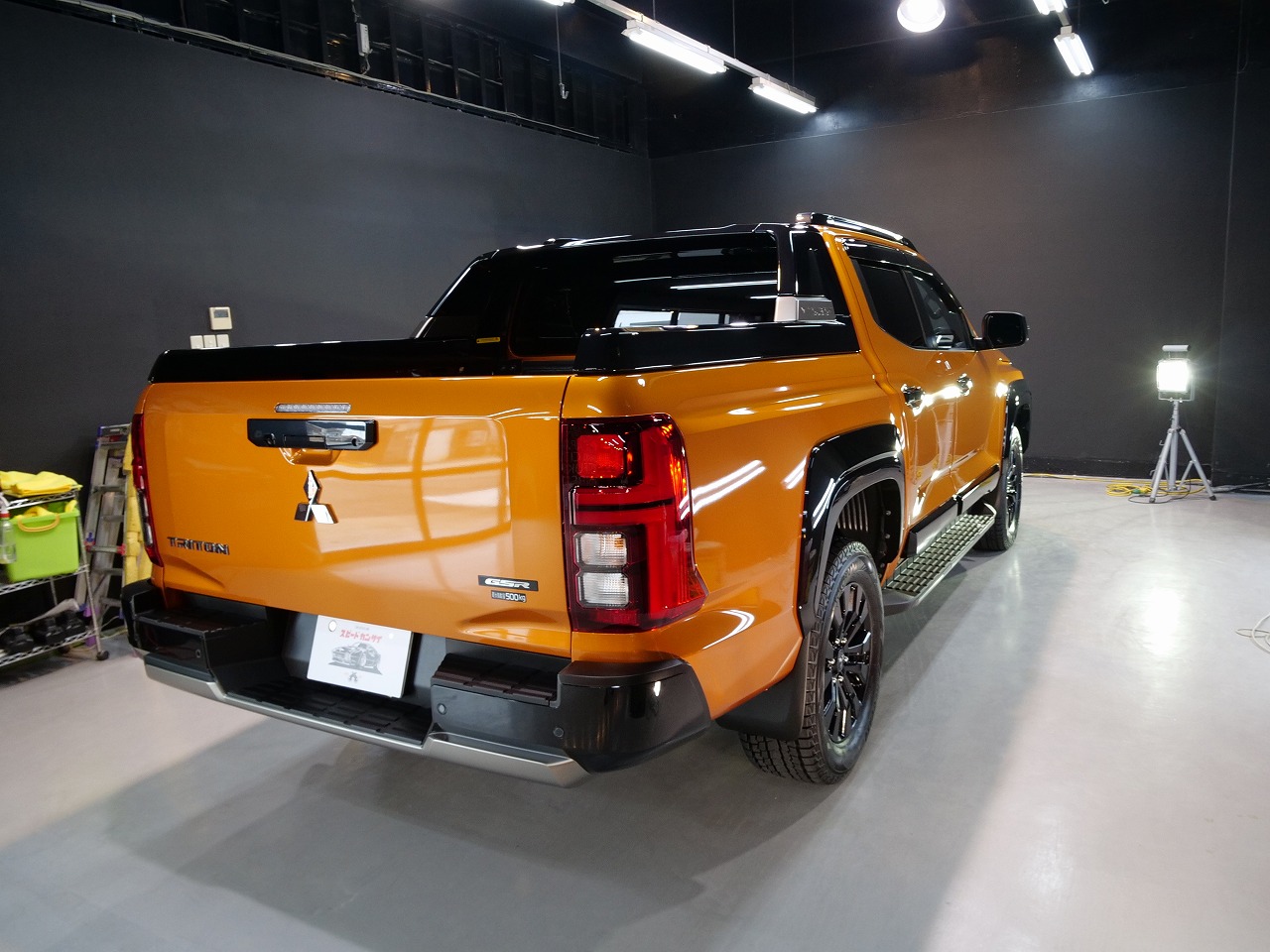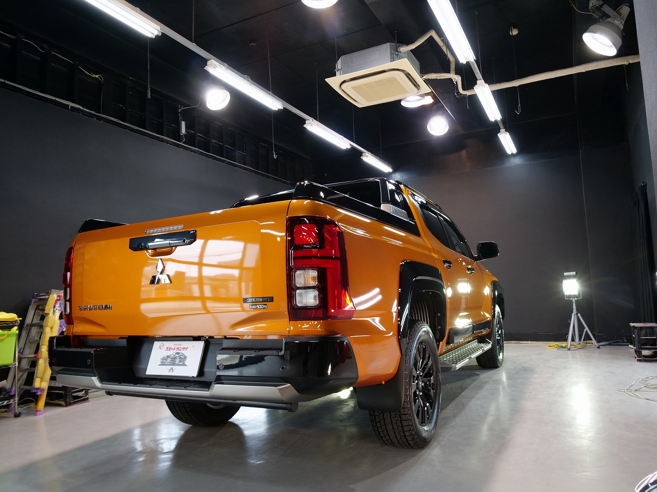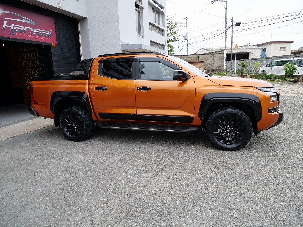 大阪府茨木市より三菱トライトンのご入庫です!ボディカラーはヤマブキオレンジメタリック!施工は