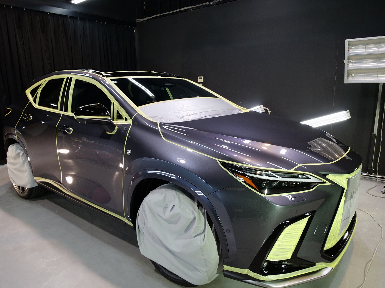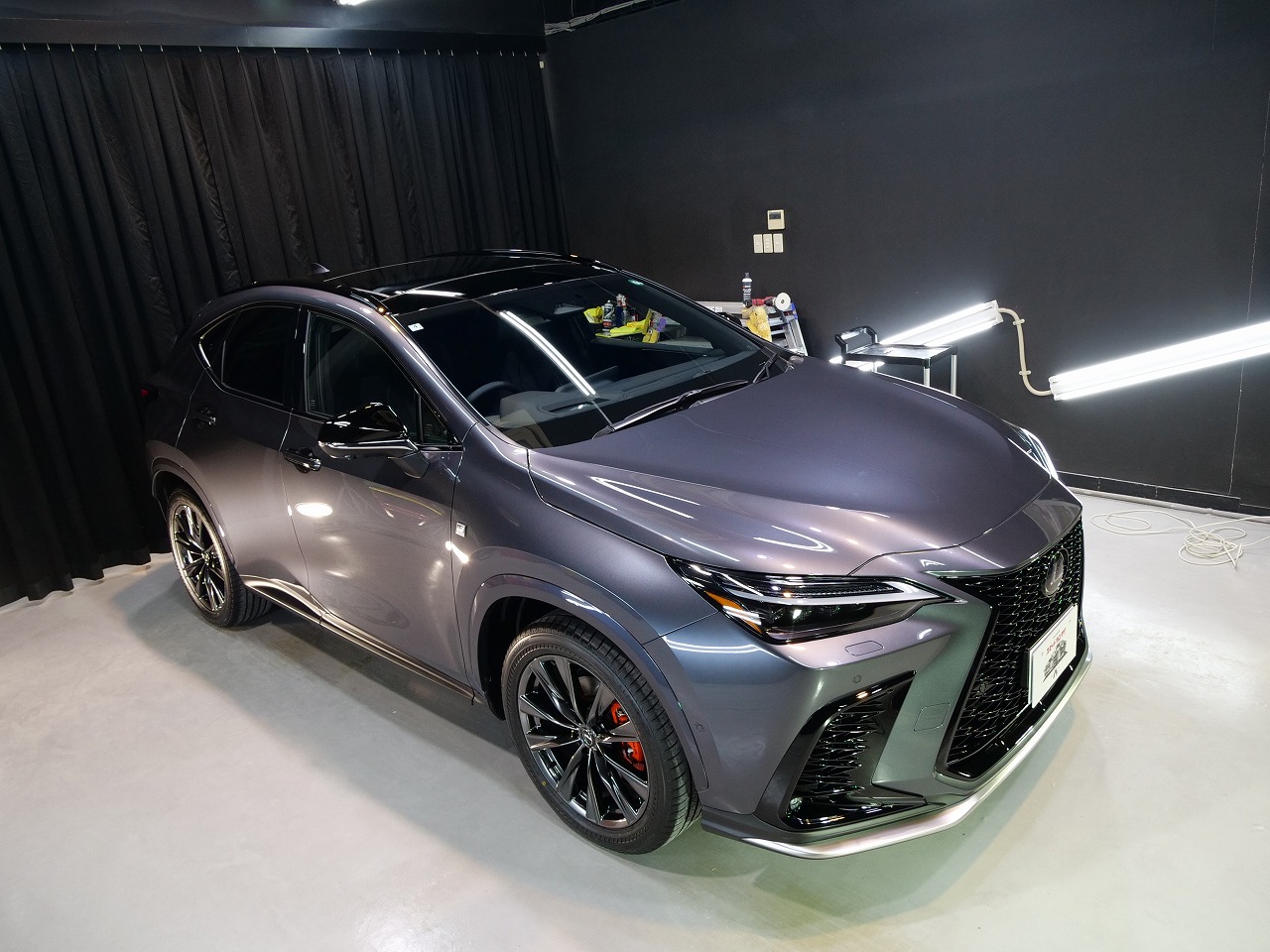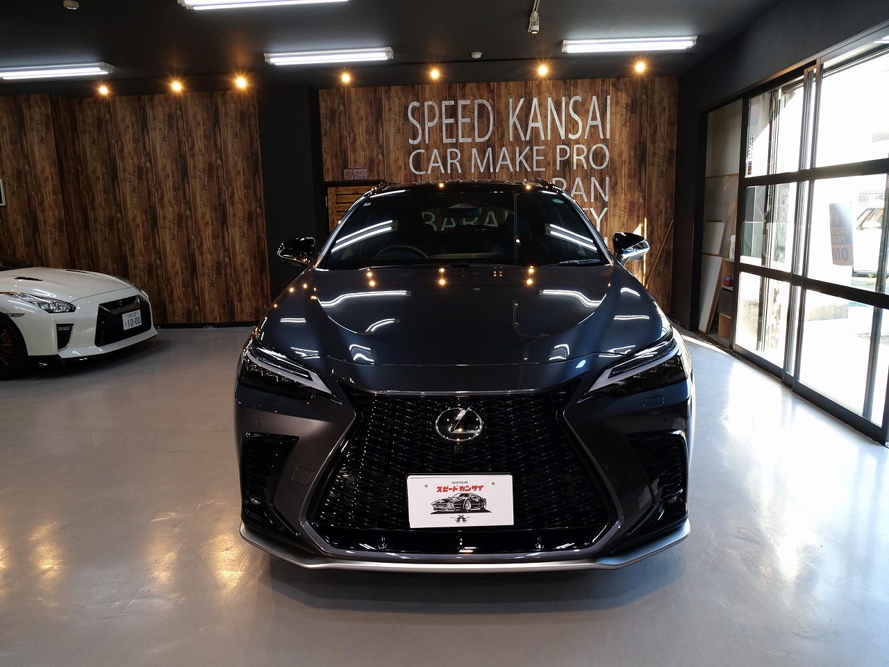 大阪府茨木市よりレクサスNXのご入庫です!ボディカラーはソニッククロム。施工はボディには