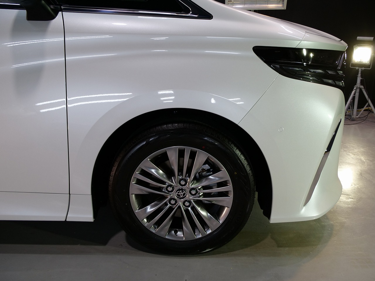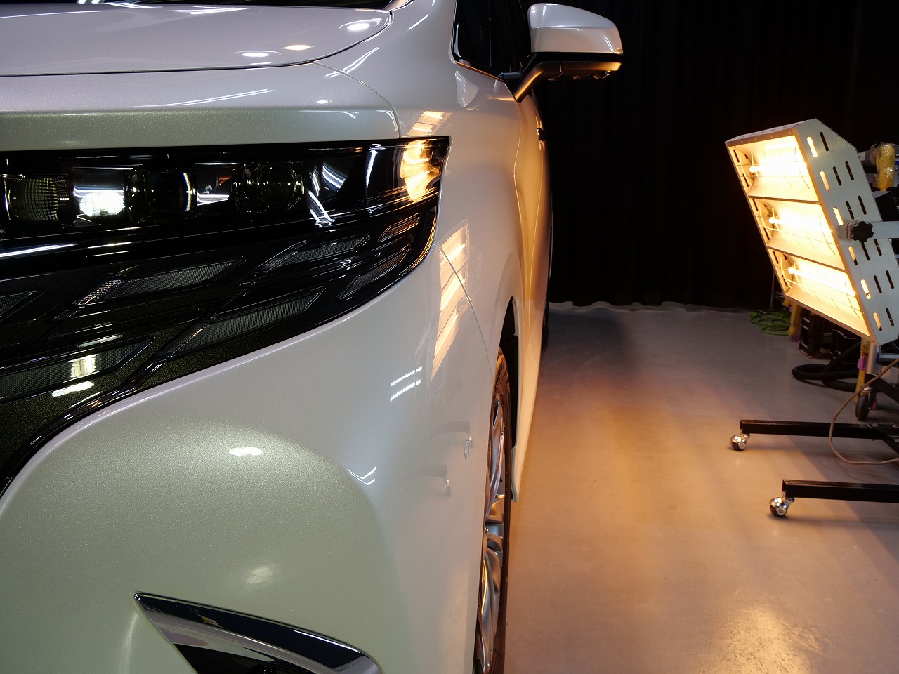 ボディカラーはプラチナホワイトパールマイカ。施工はボディにはファインラボセラミック