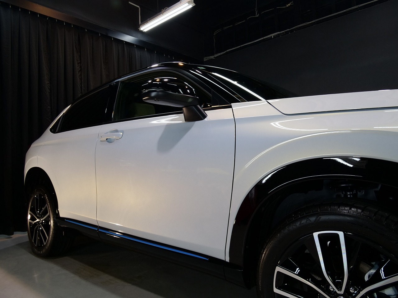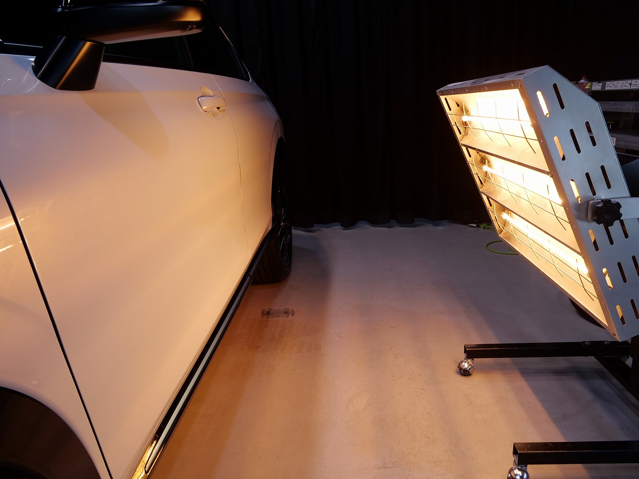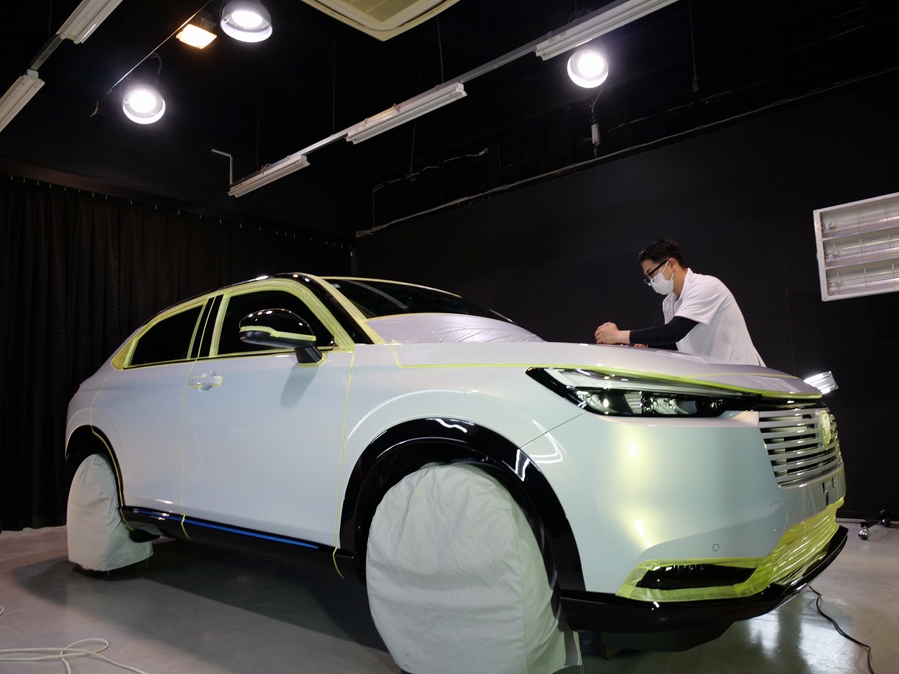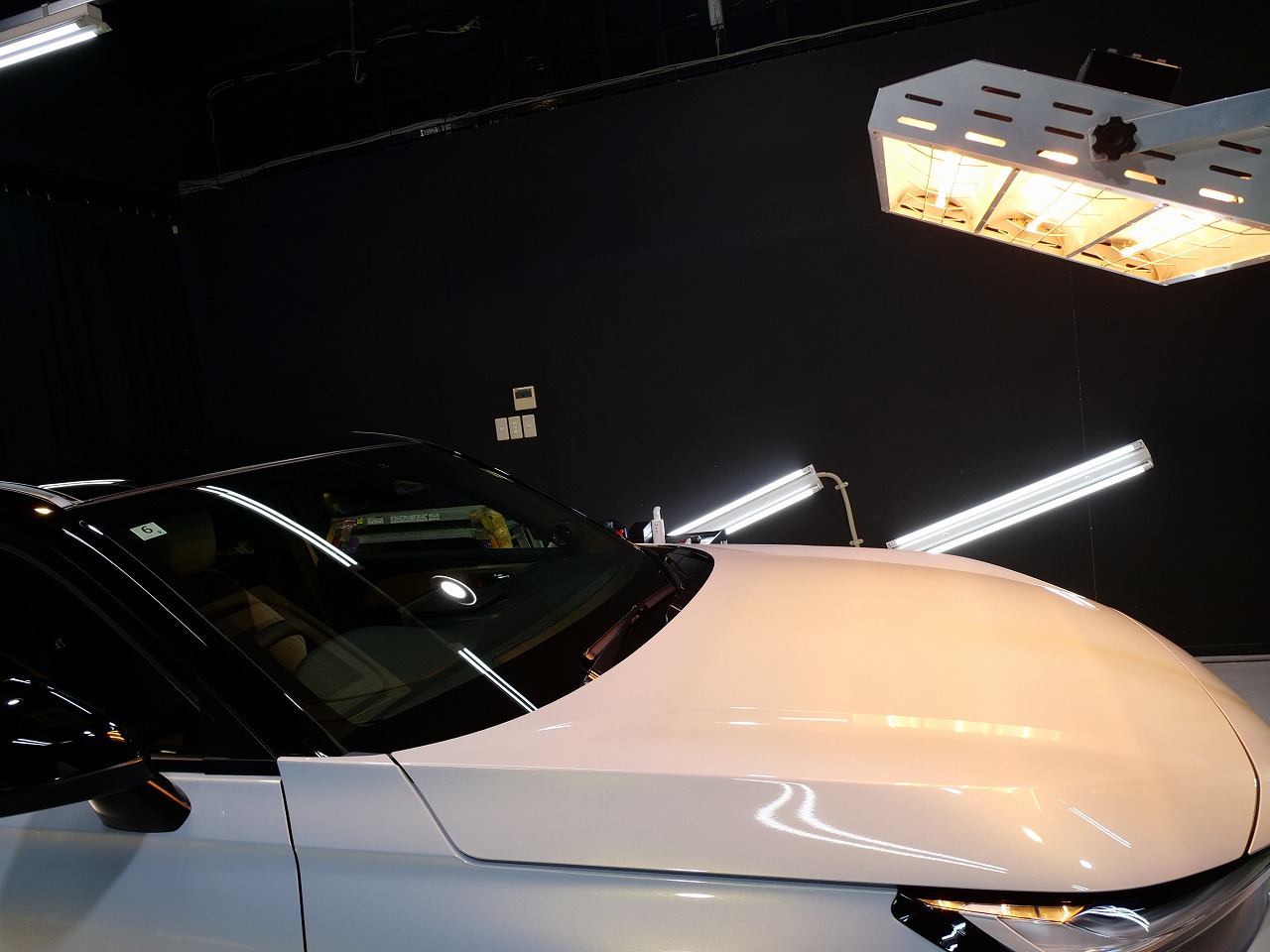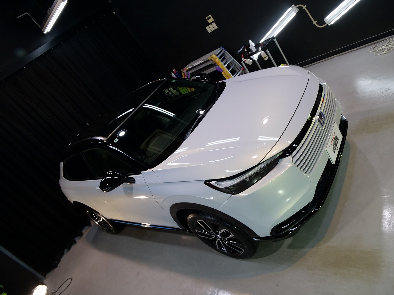 ボディカラーはプレミアムサンライトホワイトパール&ブラック!施工はボディにはファインラ
