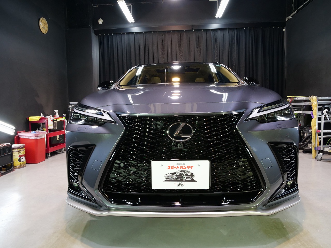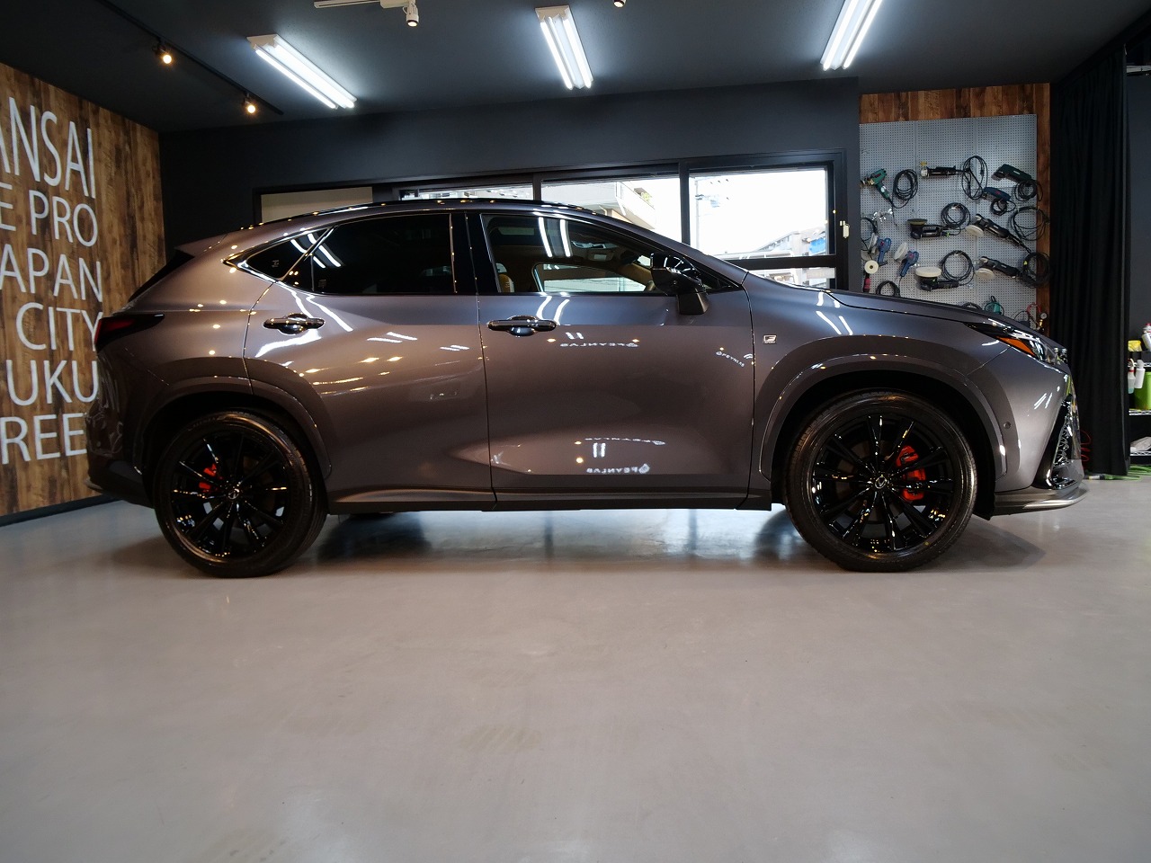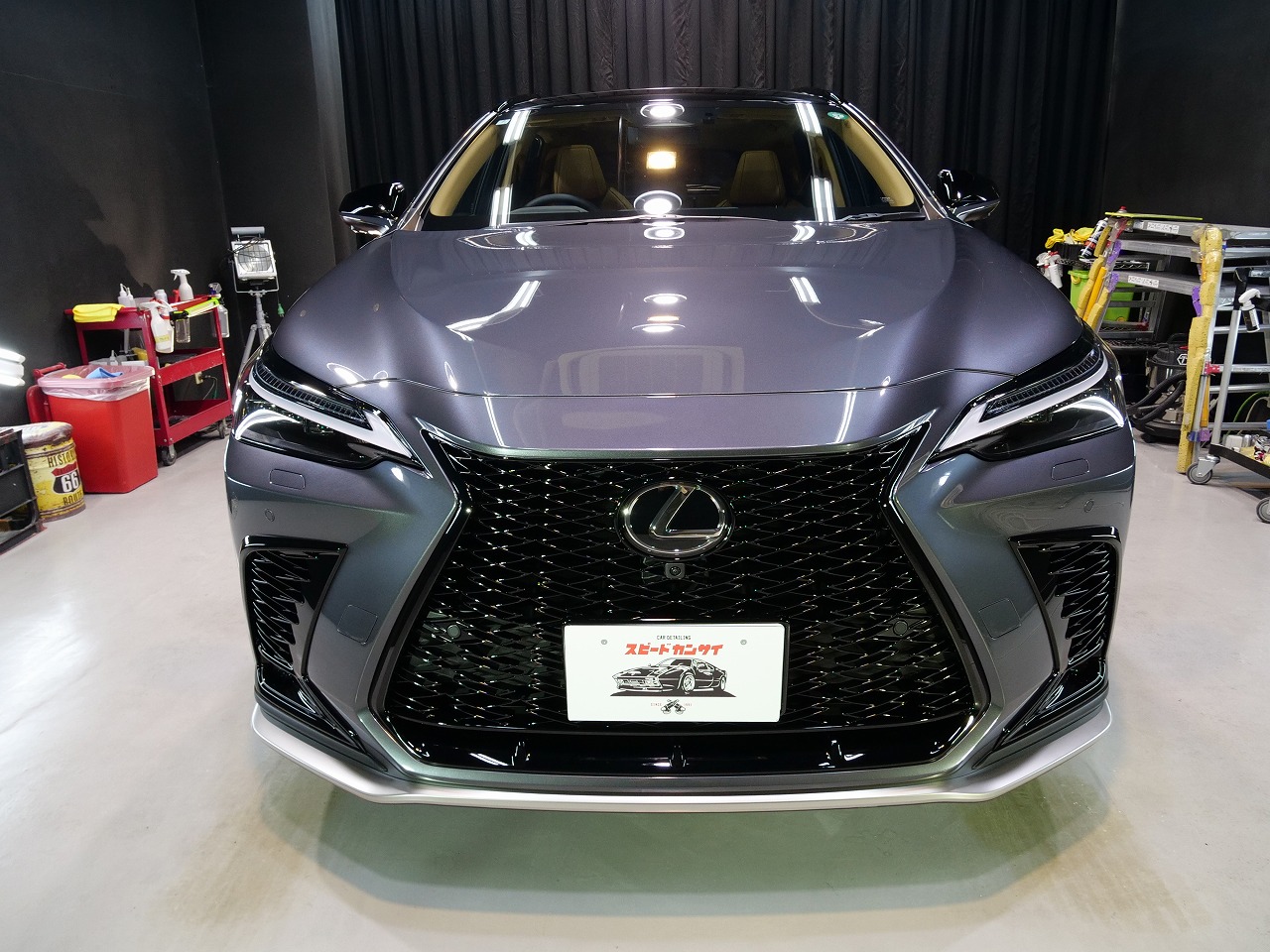 兵庫県西宮市よりレクサスNX350h F-SPORTのご入庫です!ボディカラーはソニッククロム。施工