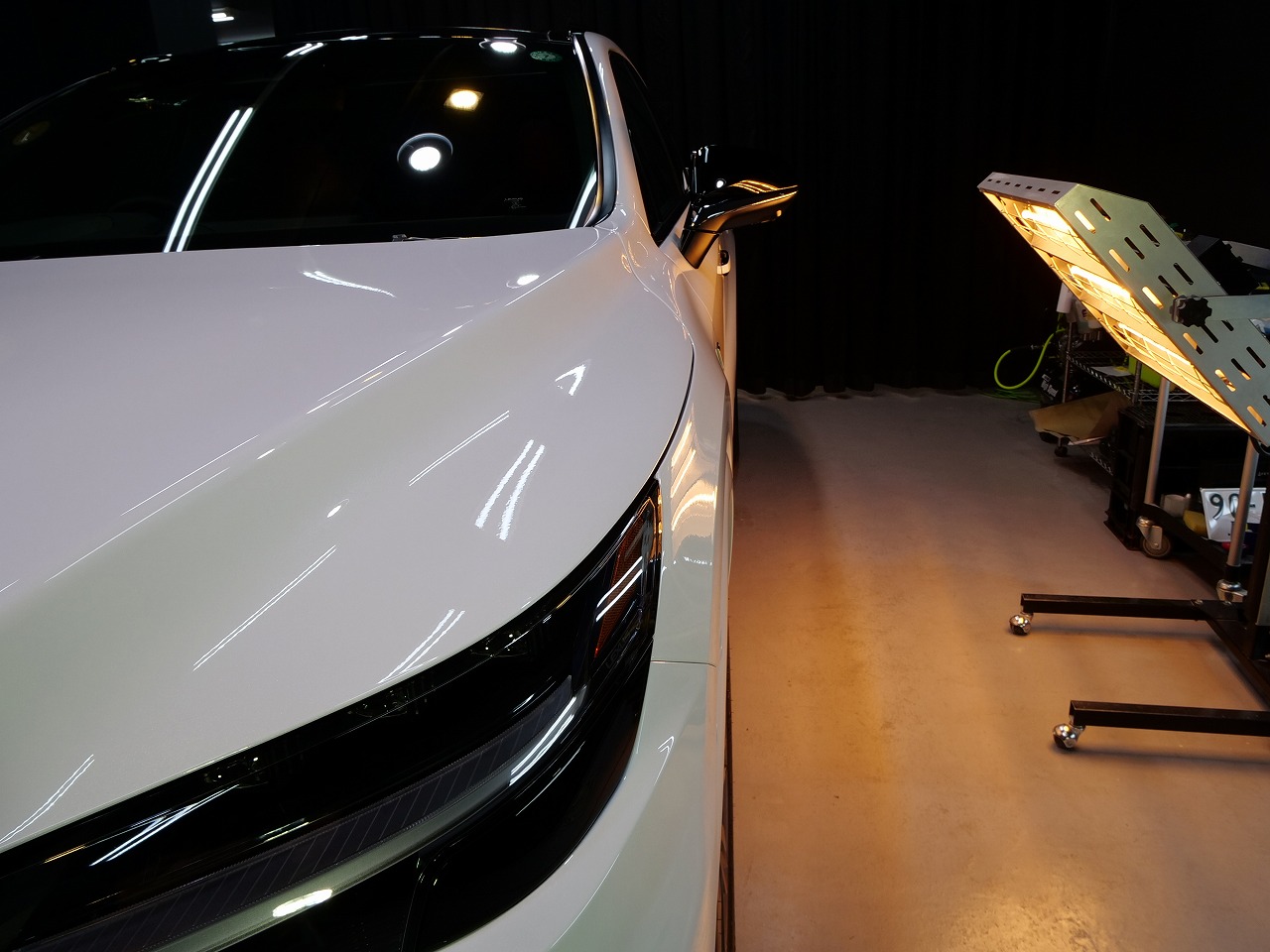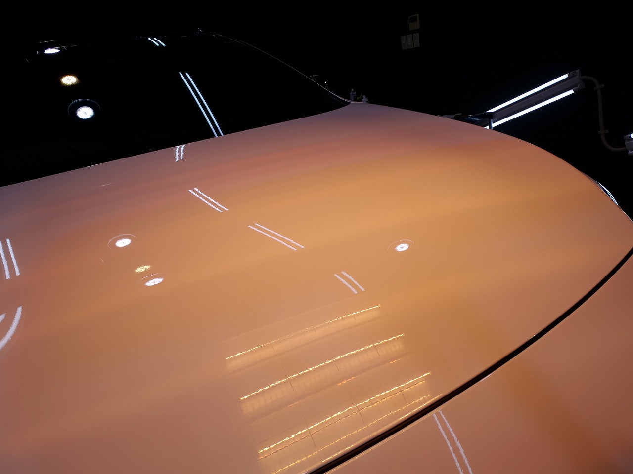 ガラスフレーク。施工はボディにはファインラボセラミックコーティング2層/ホイールコーティ