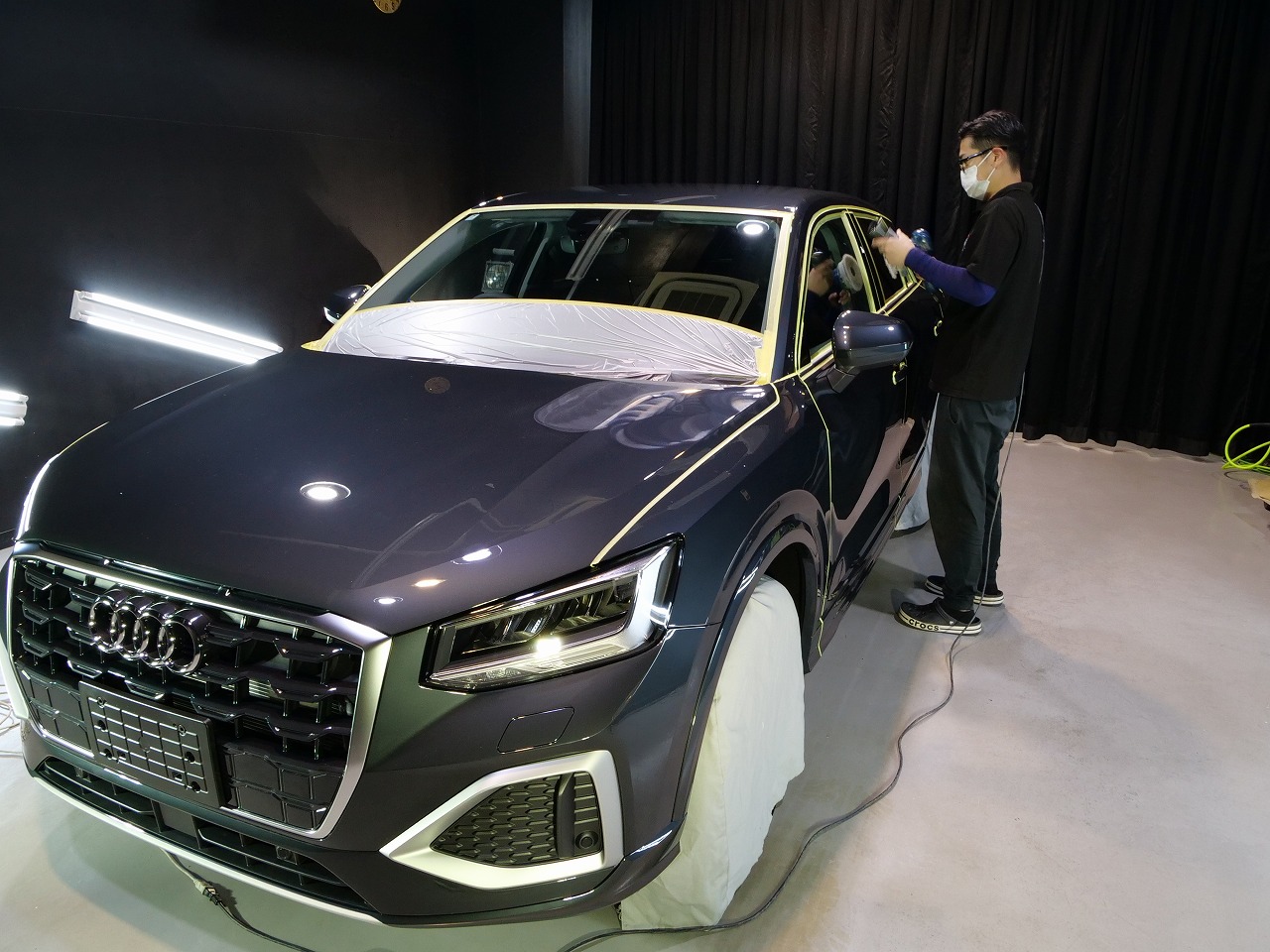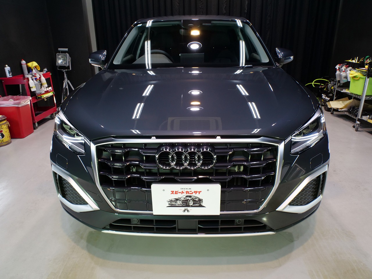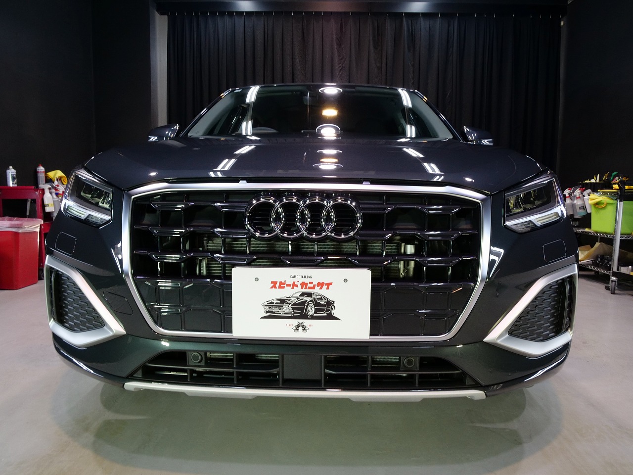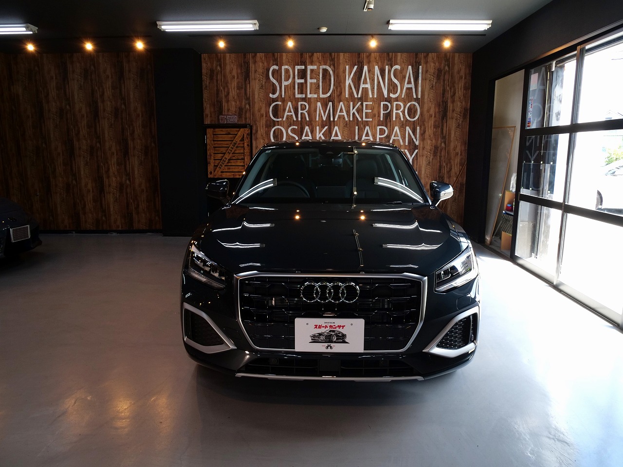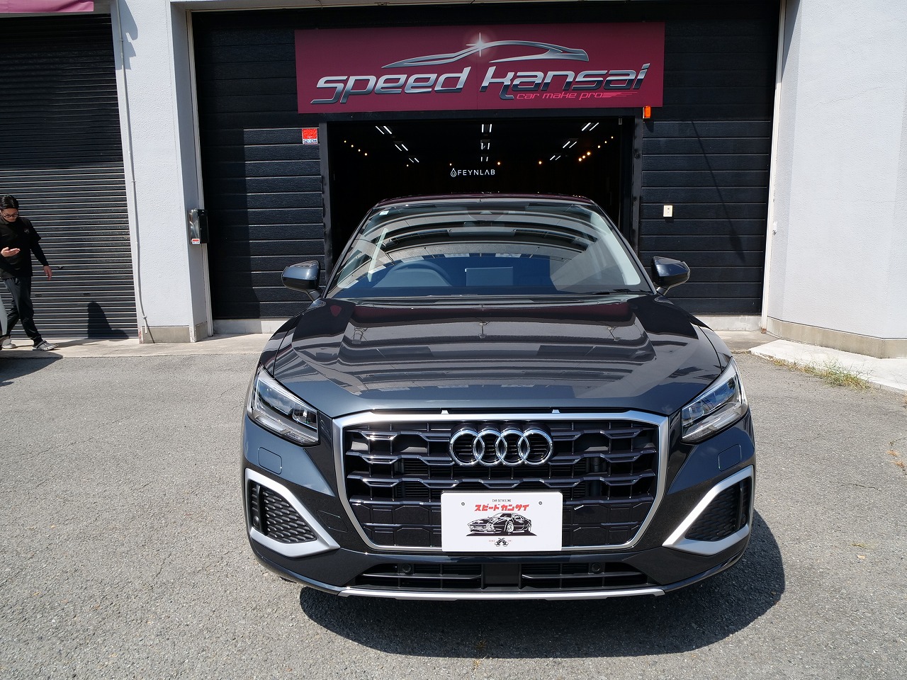 大阪府吹田市よりアウディQ2のご入庫です!ボディカラーはマンハッタングレーメタリック。施工は