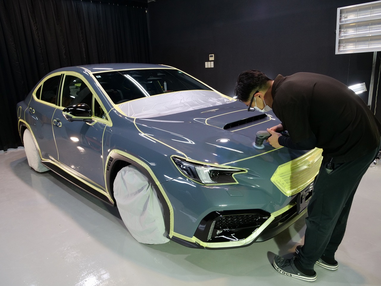大阪府茨木市よりスバルWRX S4 STI スポーツ#のご入庫です!ボディカラーはオフショアブルー