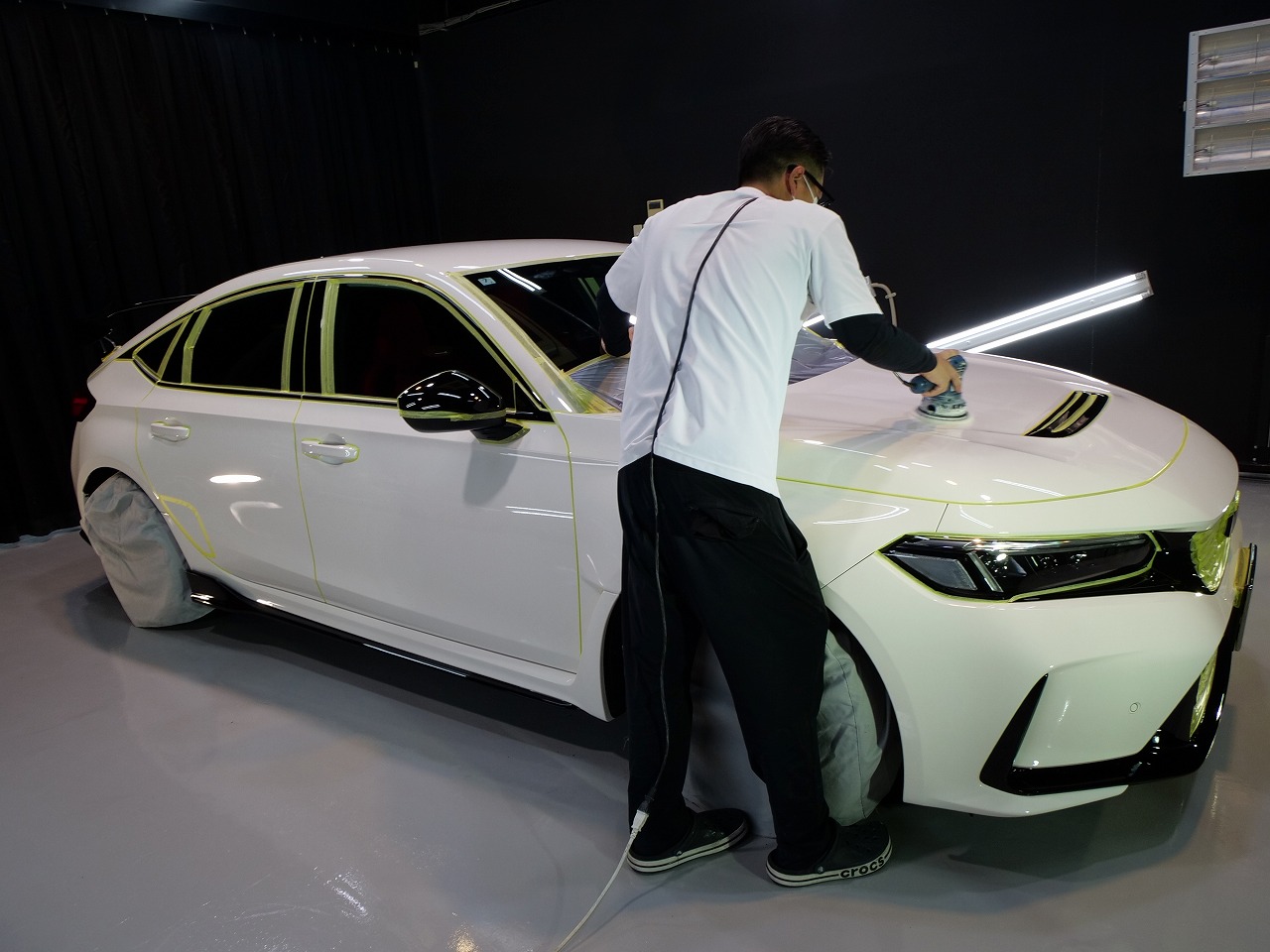 ボディカラーはチャンピオンシップホワイト。施工はボディにはファインラボセラミックコー