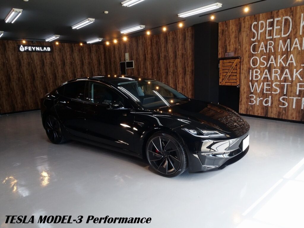 岐阜県よりテスラ モデル3 パフォーマンスのご入庫です!ボディカラーはソリッドブラック。施工は