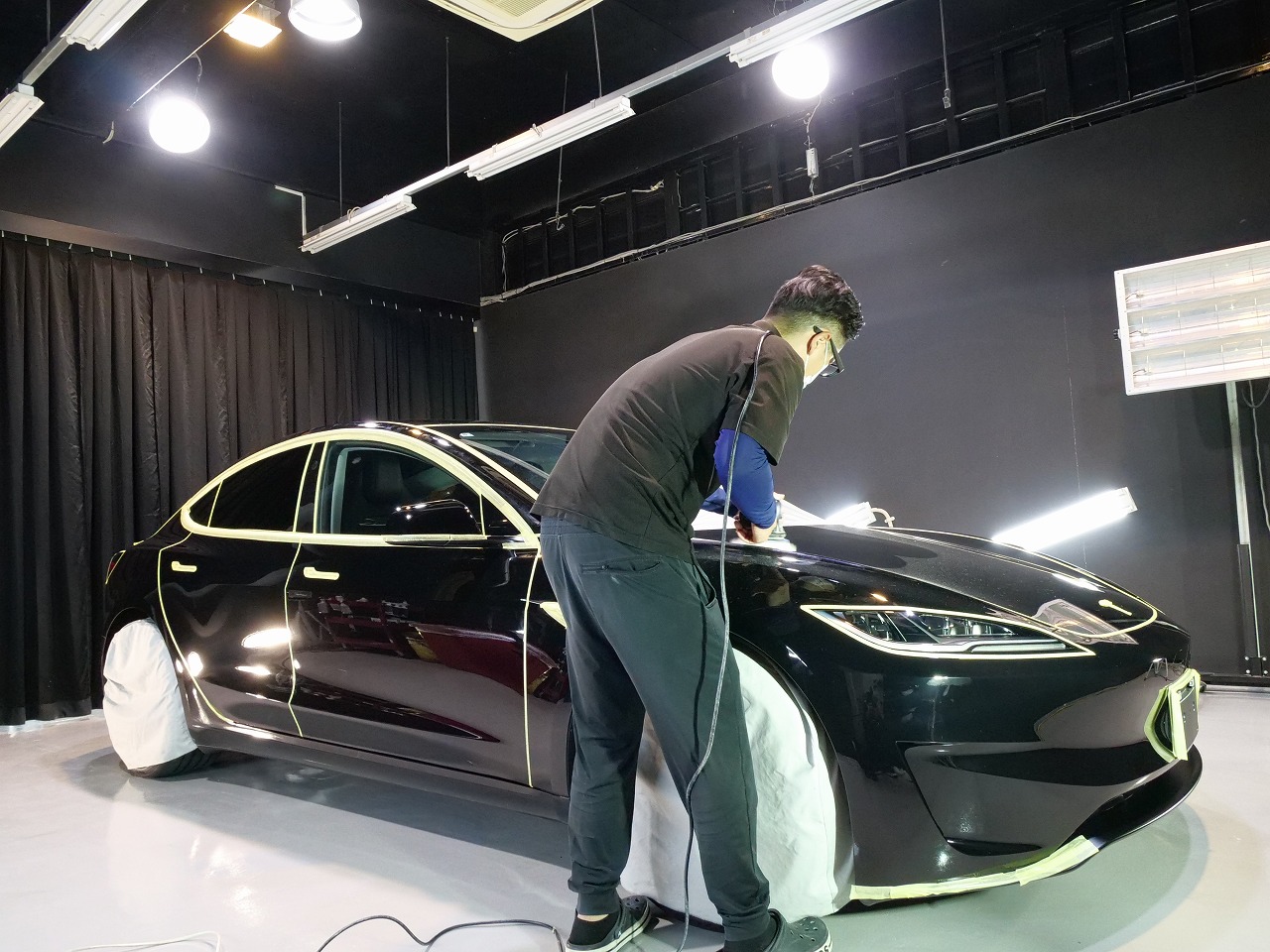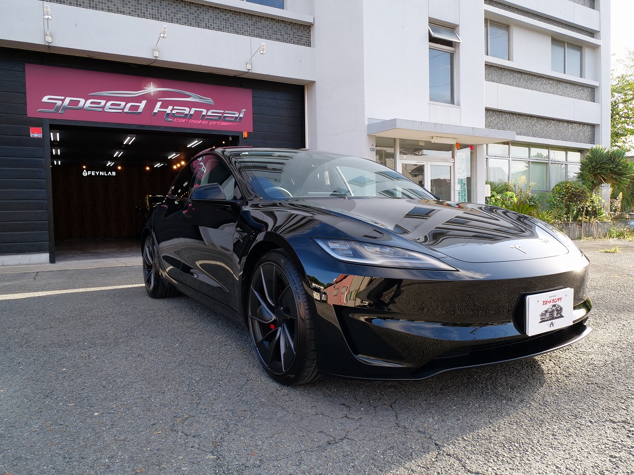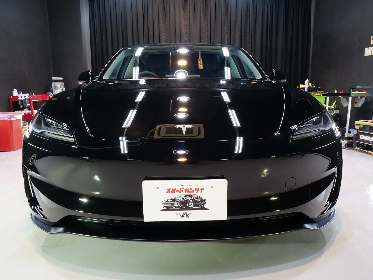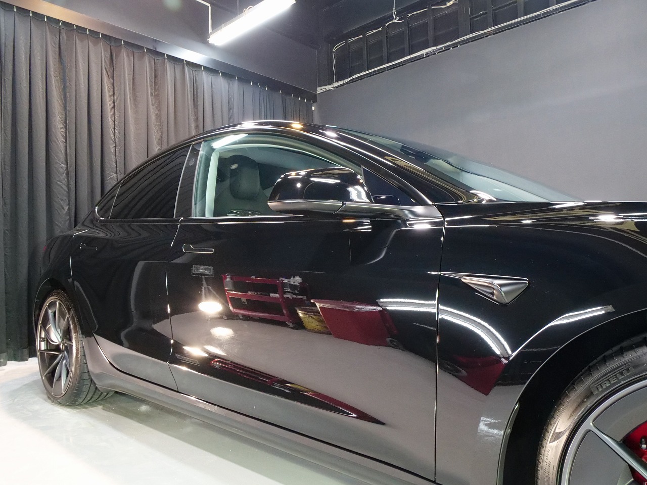 岐阜県よりテスラ モデル3 パフォーマンスのご入庫です!ボディカラーはソリッドブラック。施工は